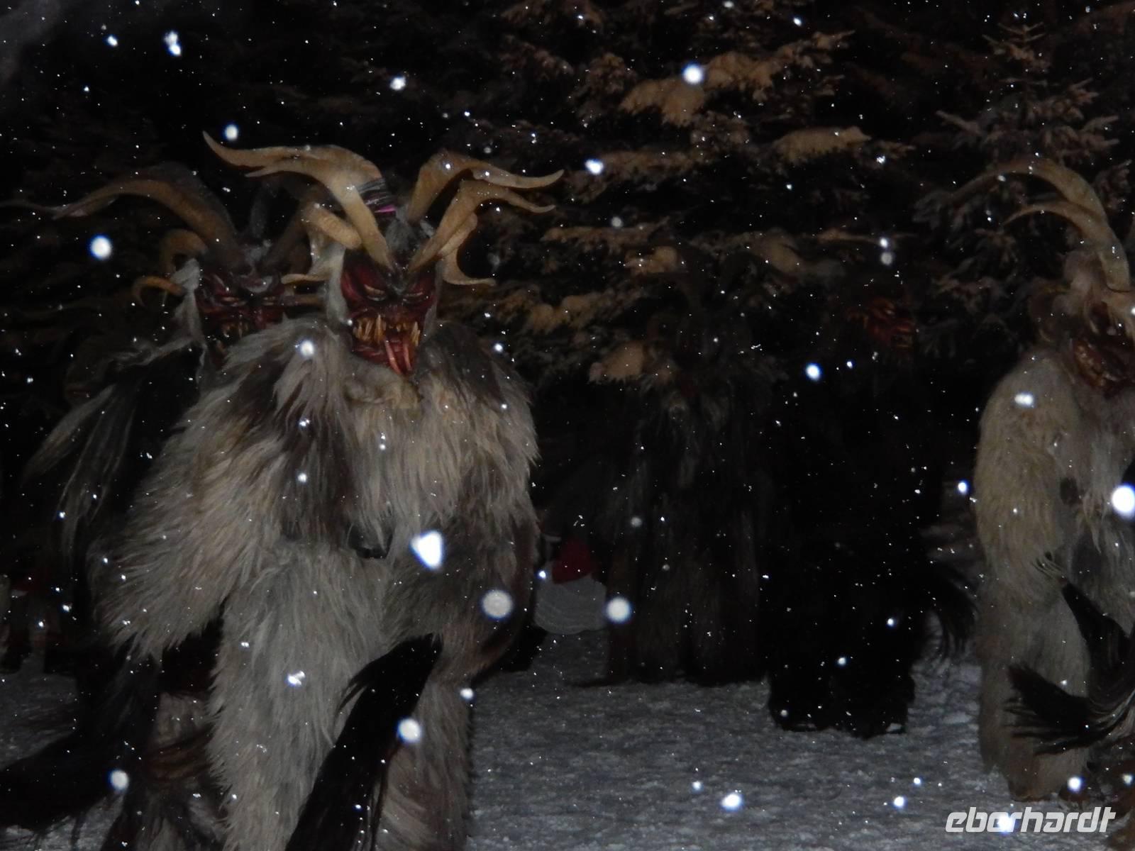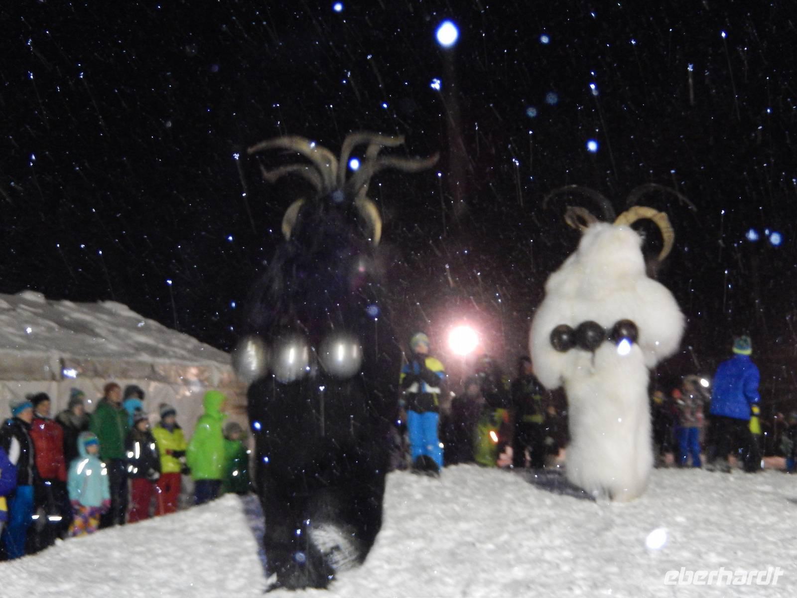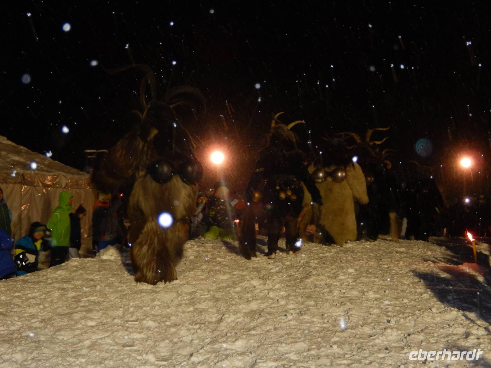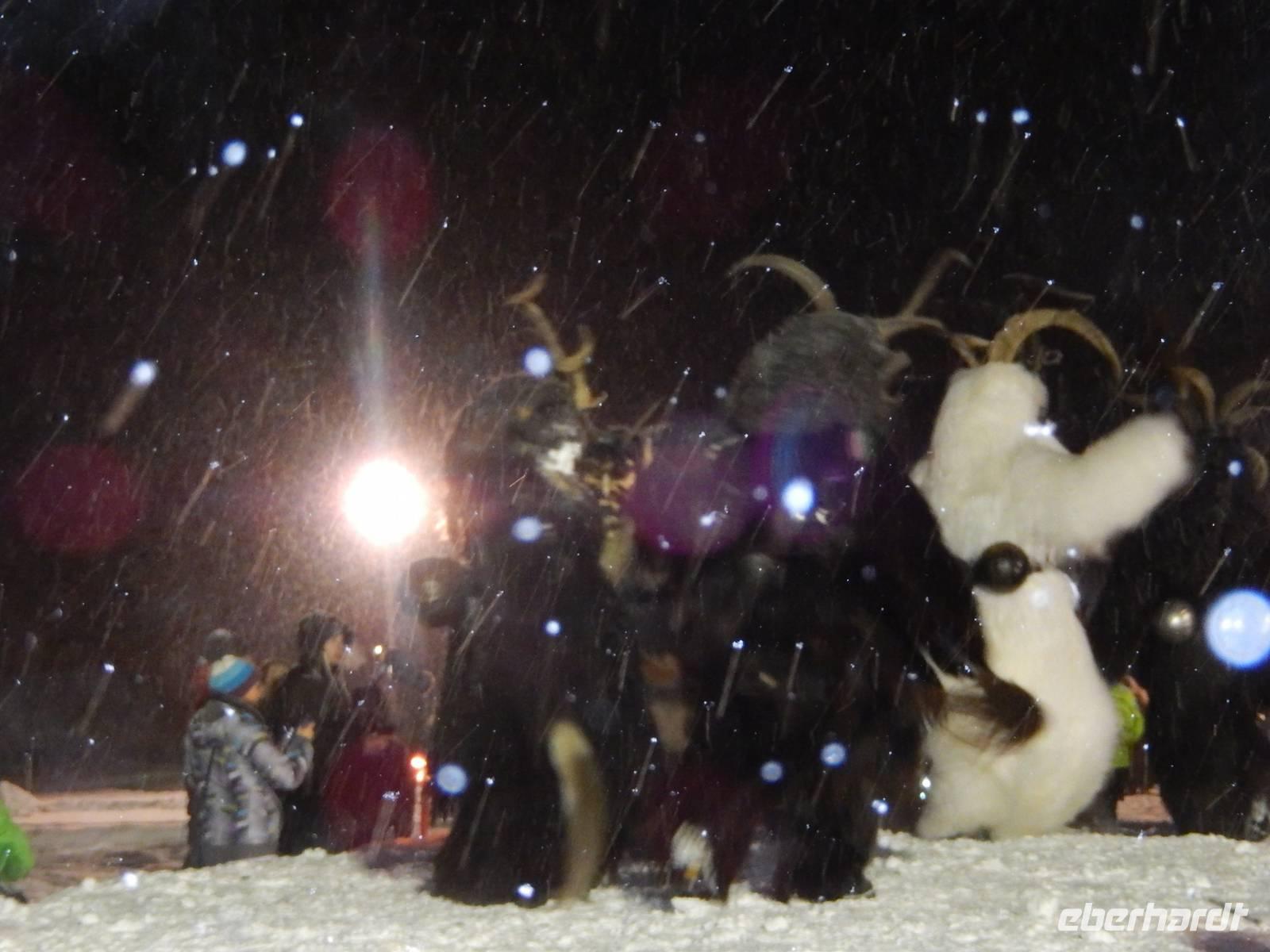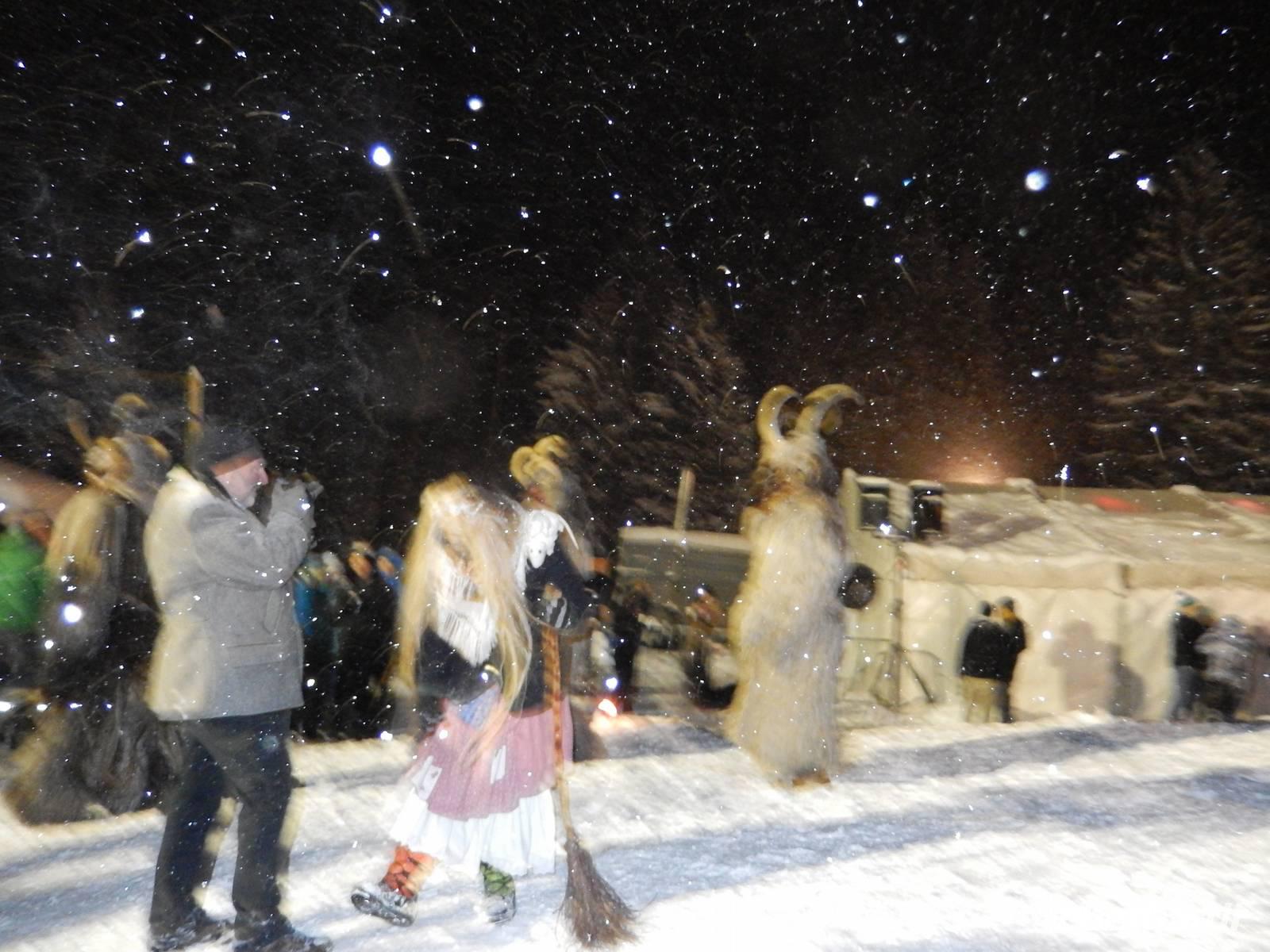 Der heutige Ausflug führt Sie nach Schladming. Leider spielte das Wetter nicht mit. Durch starken Schneefall und Nebel sowie vereiste Straßen entschlossen wir uns nicht auf den Berg zufahren. Also fuhren wir in die Ramsau unterhalb des Dachsteins. Bekannt ist dieser Ort durch das WM Stadion für Langlauf- und Biathlon Wettkämpfe und die Sprungschanzen. Wir unternahmen einen Spaziergang durch die verschneite Winterlandschaft. Zur Stärkung kehrten wir im Gasthof bzw. in der urigen Tenne ein. Nach dem Abendessen besuchten wir den traditionellen Perchtenlauf. "An Fried, an Reim und an G´sund" wünschen die Perchten, wenn sie zwischen Weihnachten und Neujahr auftreten. Ein Besuch von ihnen bringt, dem Volksmund nach, Glück. Ein Brauch der gerade im Salzburger Land gelebt wird. Wir hatten viel Spaß bei diesem Spektakel. Ein schönes Feuerwerk beschloss den heutigen Tag.