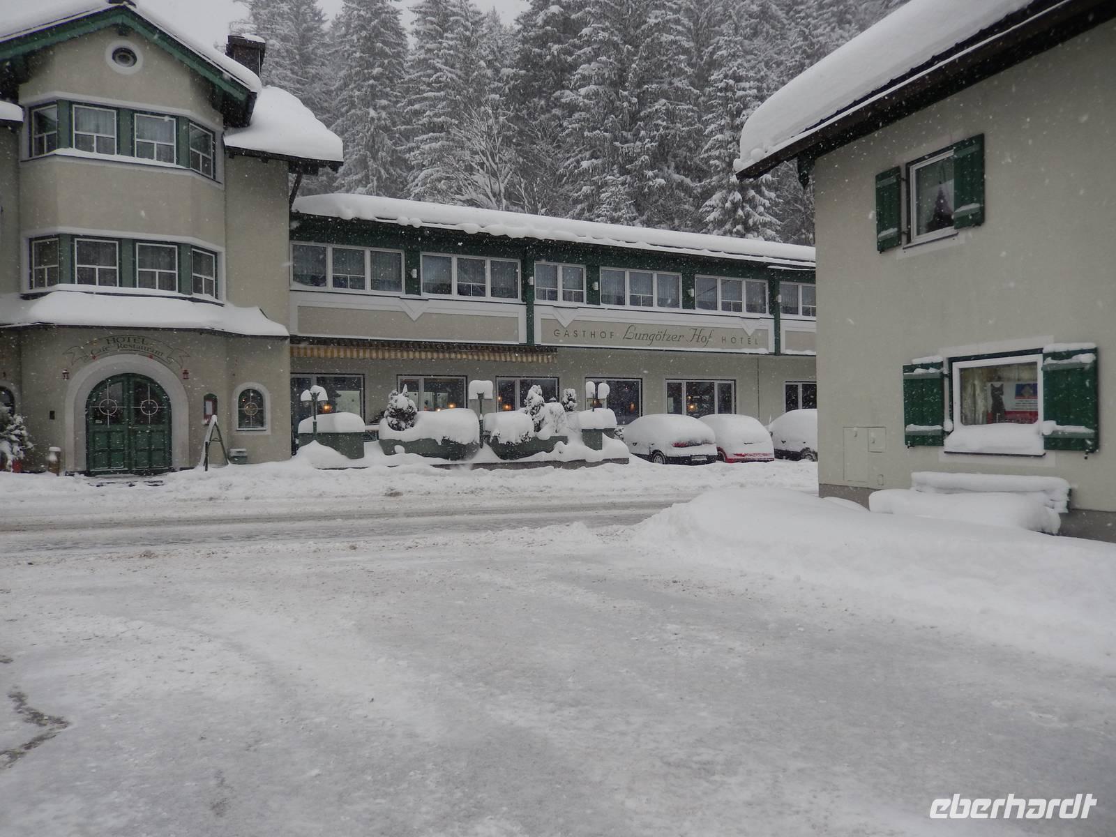 Wir freuen uns auf unsere Reise in das Salzburger Land. Da wir in Richtung München viel Verkehr erwarteten entschieden wir uns über Regensburg und Passau zu fahren. Wir sollten recht behalten die Verkehrsmeldungen sagten rund um München Stau an. Auf unserer Fahrt entlang des Bayerischen Waldes waren wir noch skeptisch den von Schnee war noch nichts zu sehen. Wir erreichten Salzburg und fuhren durch die schön beleuchteten und weihnachtlich geschmückten Ort Golling. Zurück auf die Tauernautobahn verliesen wir diese in Hüttau und fuhren in das Lammertal. Bereits in St. Martin war alles verschneit. Auch in Lungötz in 880m Höhe lag Schnee. Im Hotel Lungötzer Hof werden Sie schon erwartet.