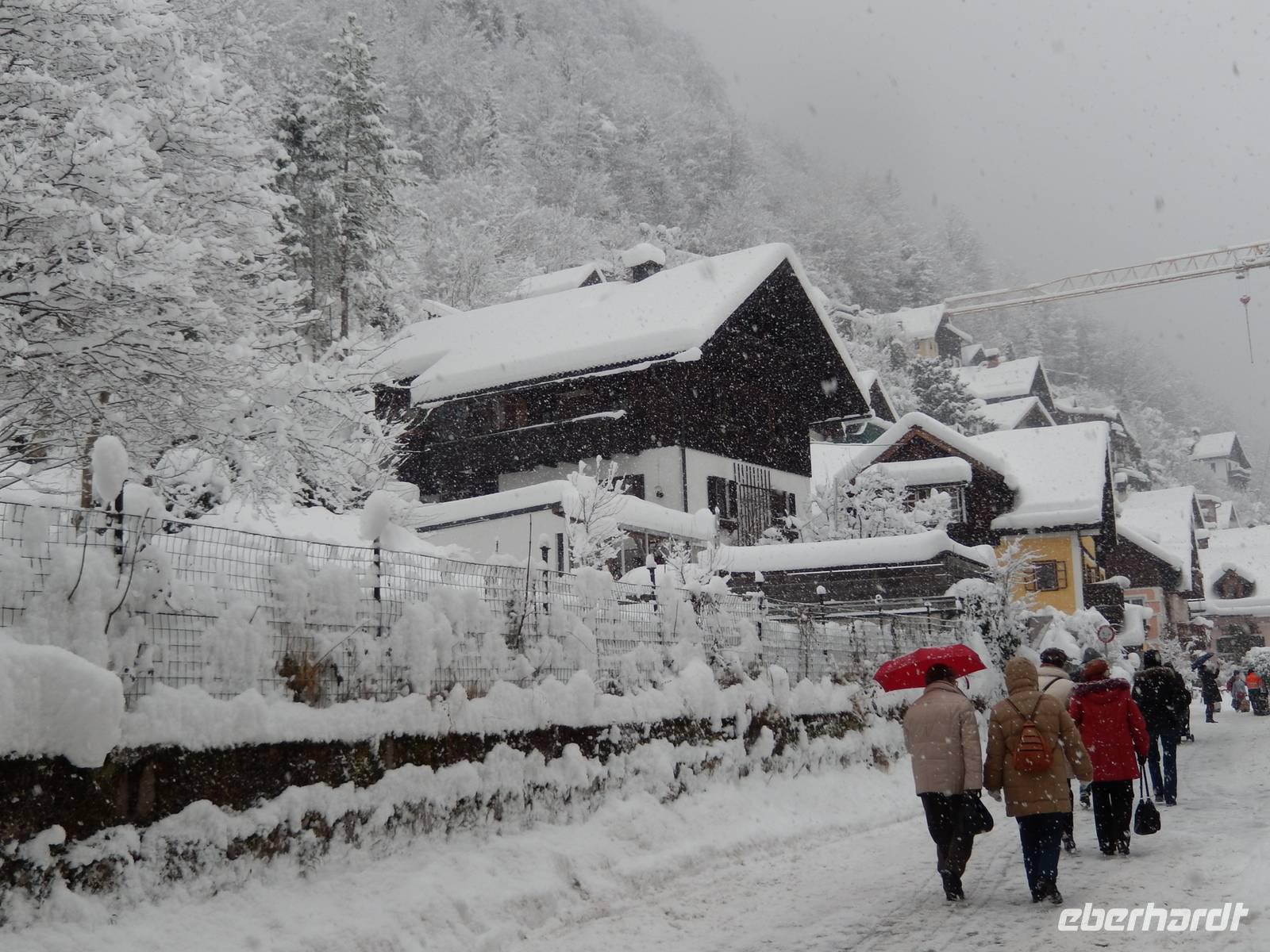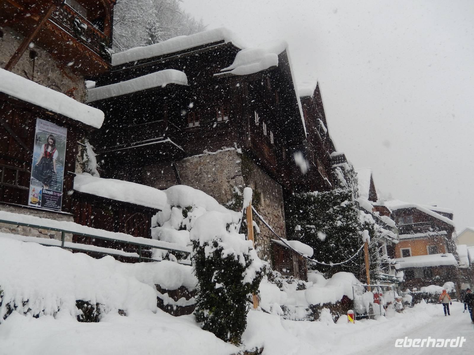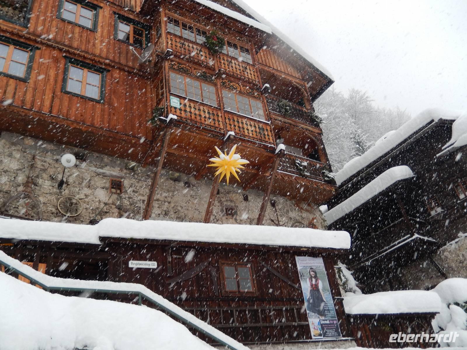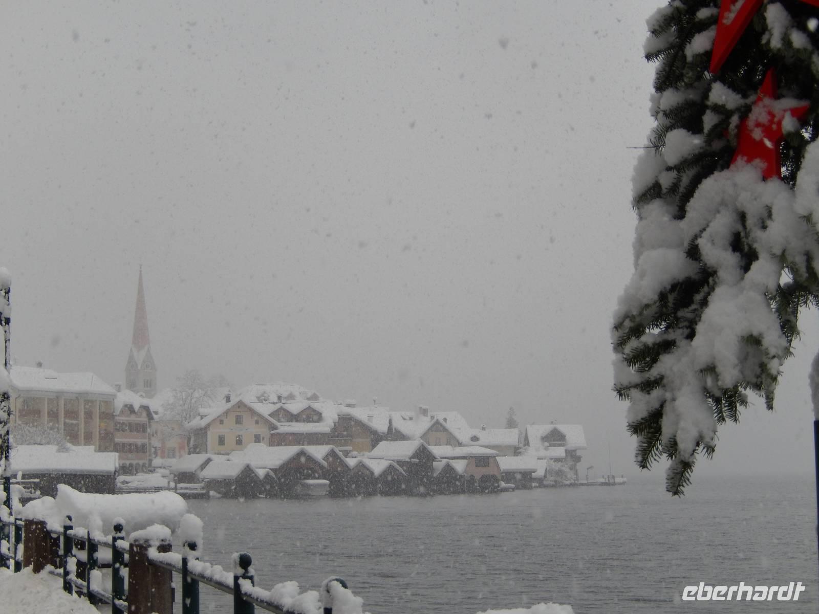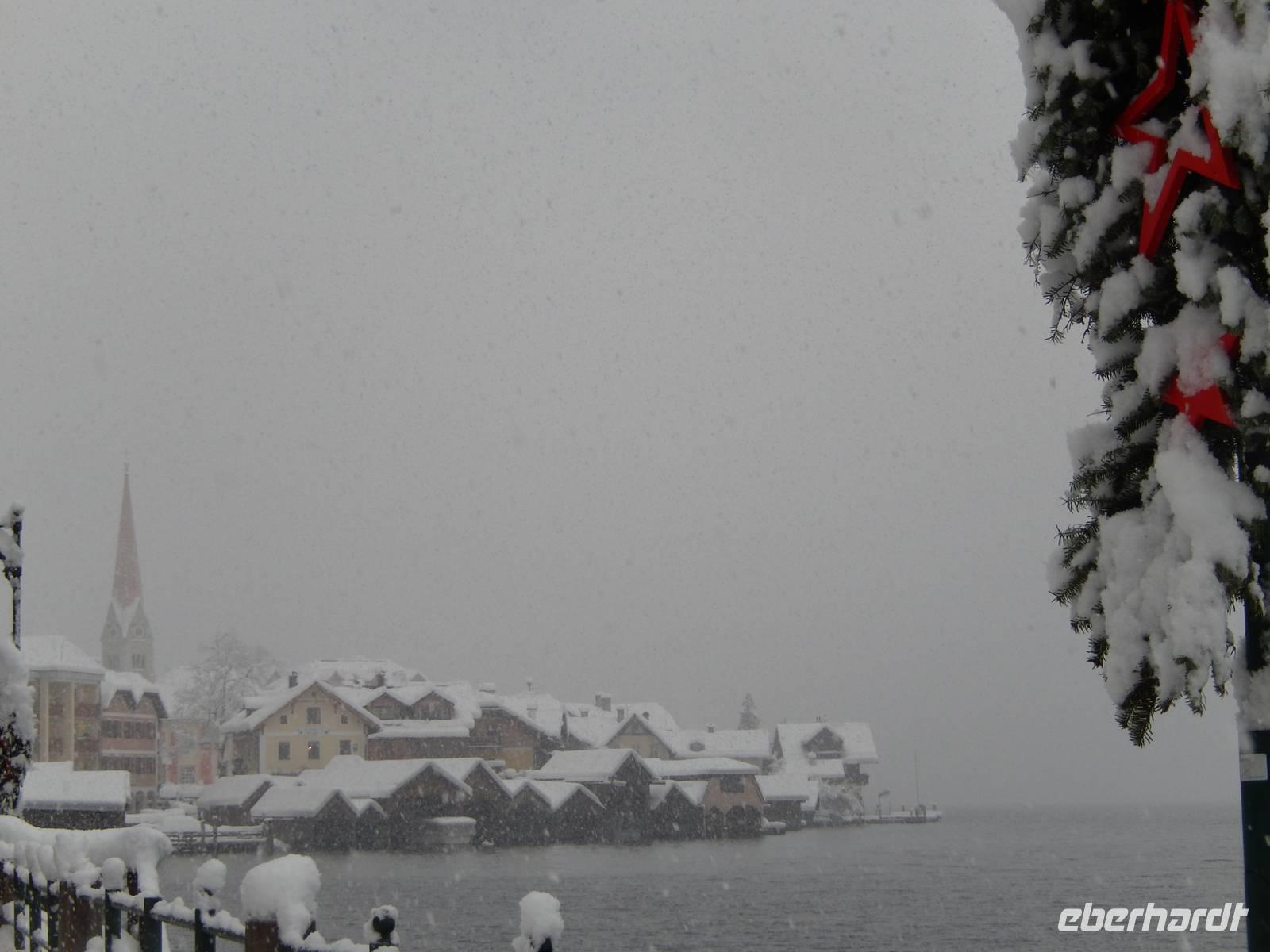In der Nacht hatte es sehr geschneit und die Straßen waren glatt und nur mit Schneeketten zu befahren. Über den Pass Gschütt reisten wir ins Salzkammergut. Wir erreichten die Region Hallstatt-Dachstein mit dem Hallstätter See. Aufgrund reichhaltiger prähistorischer Fundstätten und einzigartiger Natur gehört es zum UNESCO-Weltnaturerbe. Wir spazierten durch den tief verschneiten Ort. Auf Grund des weiterhin starken Schneefalls und Glätte auf der Straße, entschlossen wir uns in das Hotel zurück zufahren. Dort unternahmen wir einen Spaziergang in das verschneite Lammertal und kehrten in den Lämmerhof ein. Am Silvesterabend gab es ein Büffet und ein Alleinunterhalter spielte mit seiner Harmonika und Kybord. Um Mitternacht stoßen wir mit einem Glas Sekt an und genießen das Feuerwerk.