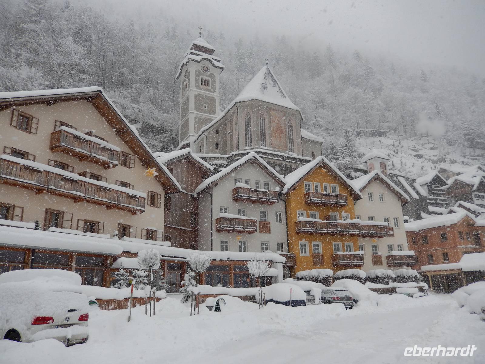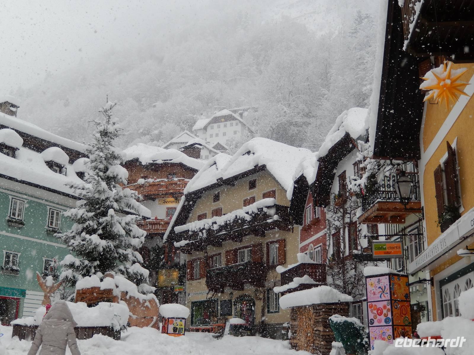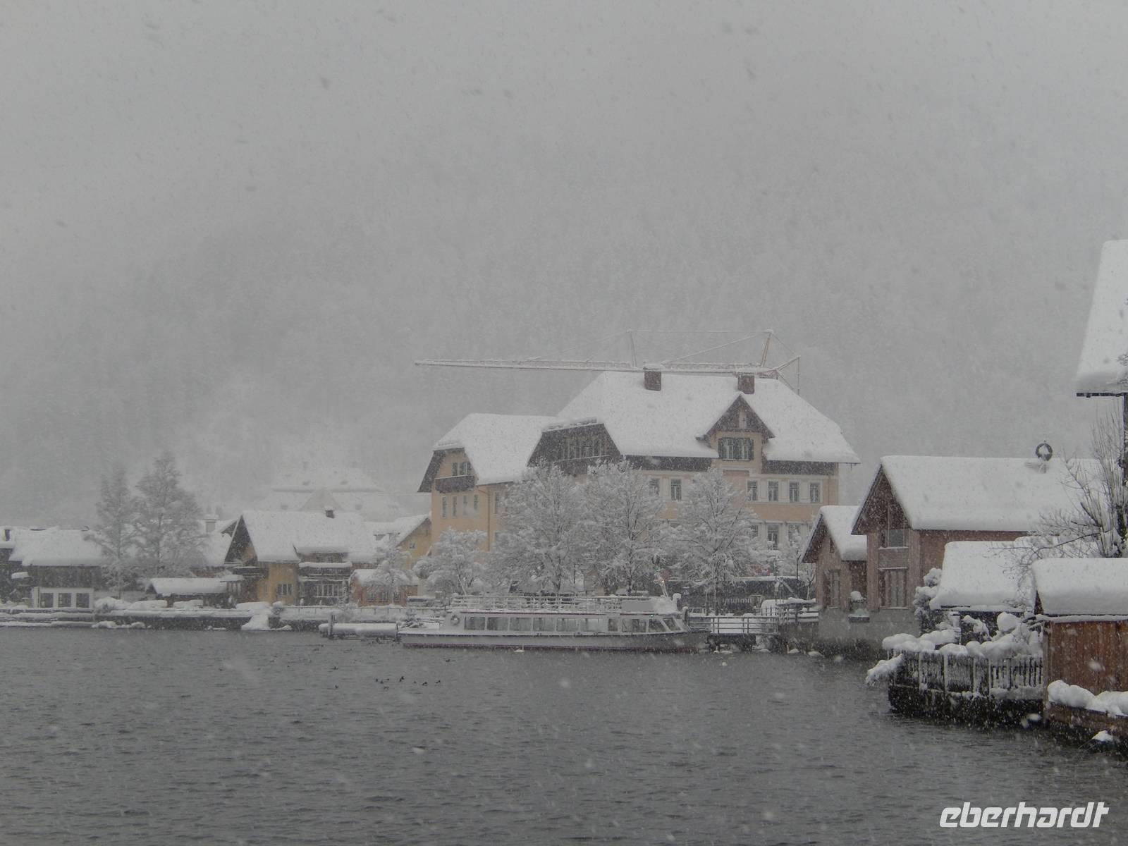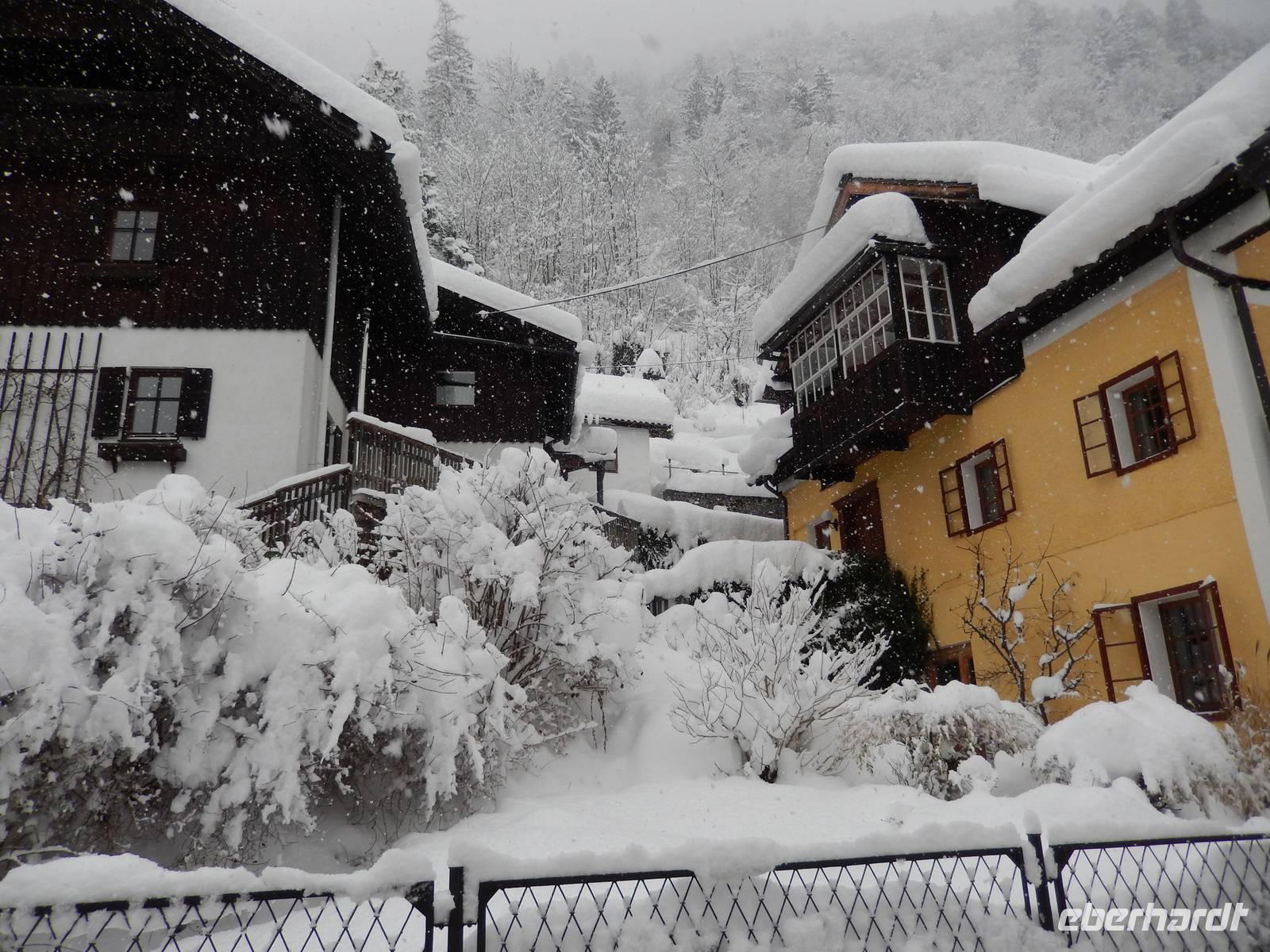 In der Nacht hatte es sehr geschneit und die Straßen waren glatt und nur mit Schneeketten zu befahren. Über den Pass Gschütt reisten wir ins Salzkammergut. Wir erreichten die Region Hallstatt-Dachstein mit dem Hallstätter See. Aufgrund reichhaltiger prähistorischer Fundstätten und einzigartiger Natur gehört es zum UNESCO-Weltnaturerbe. Wir spazierten durch den tief verschneiten Ort. Auf Grund des weiterhin starken Schneefalls und Glätte auf der Straße, entschlossen wir uns in das Hotel zurück zufahren. Dort unternahmen wir einen Spaziergang in das verschneite Lammertal und kehrten in den Lämmerhof ein. Am Silvesterabend gab es ein Büffet und ein Alleinunterhalter spielte mit seiner Harmonika und Kybord. Um Mitternacht stoßen wir mit einem Glas Sekt an und genießen das Feuerwerk.