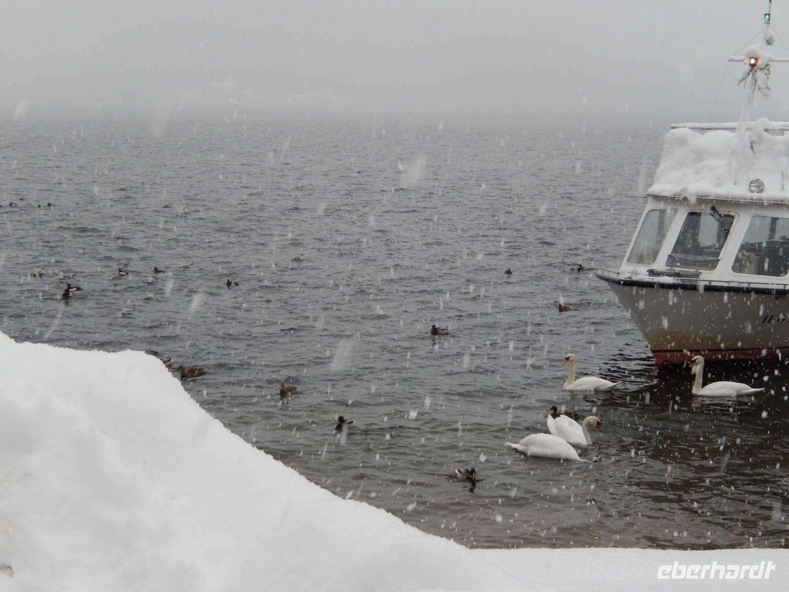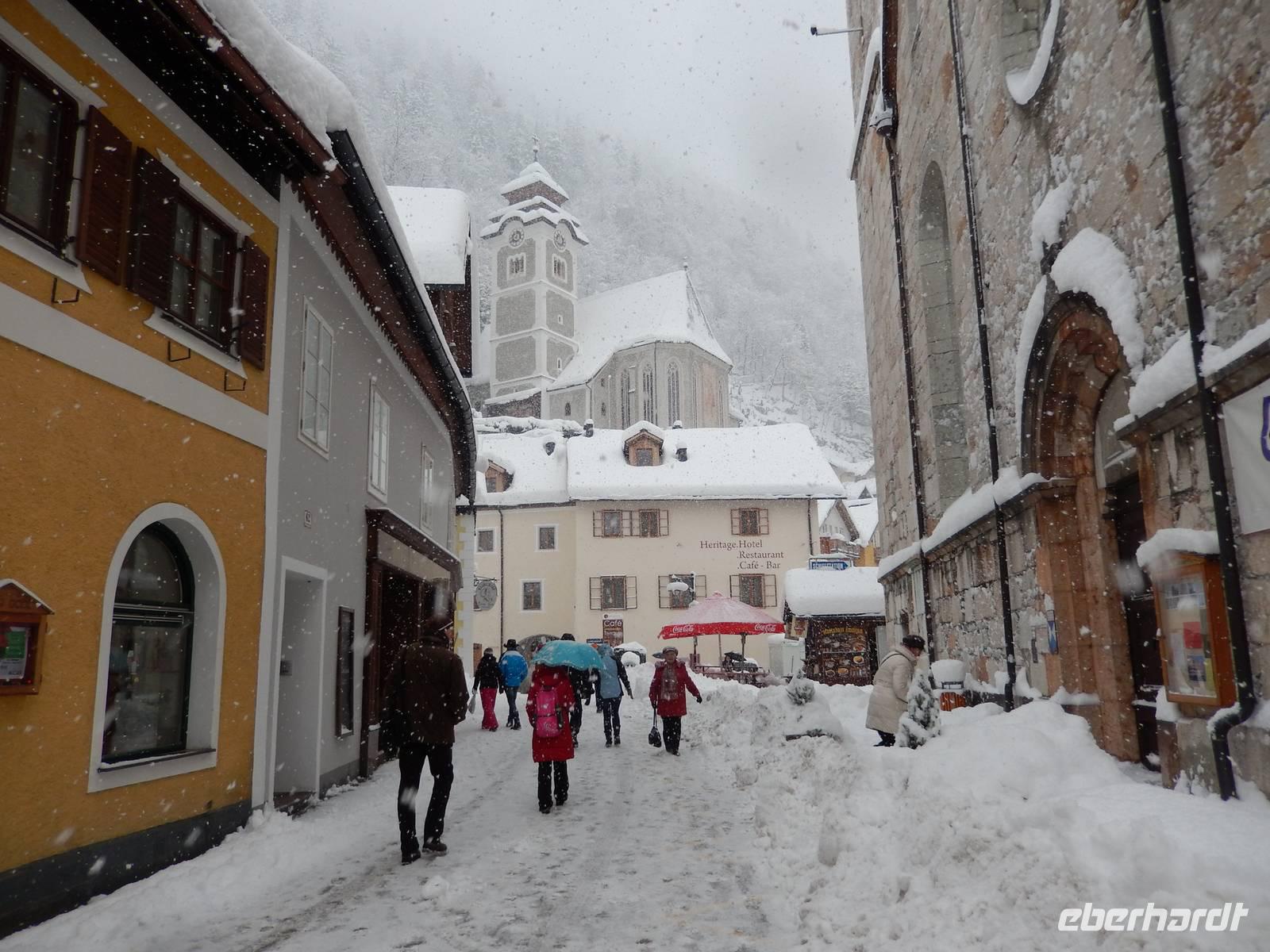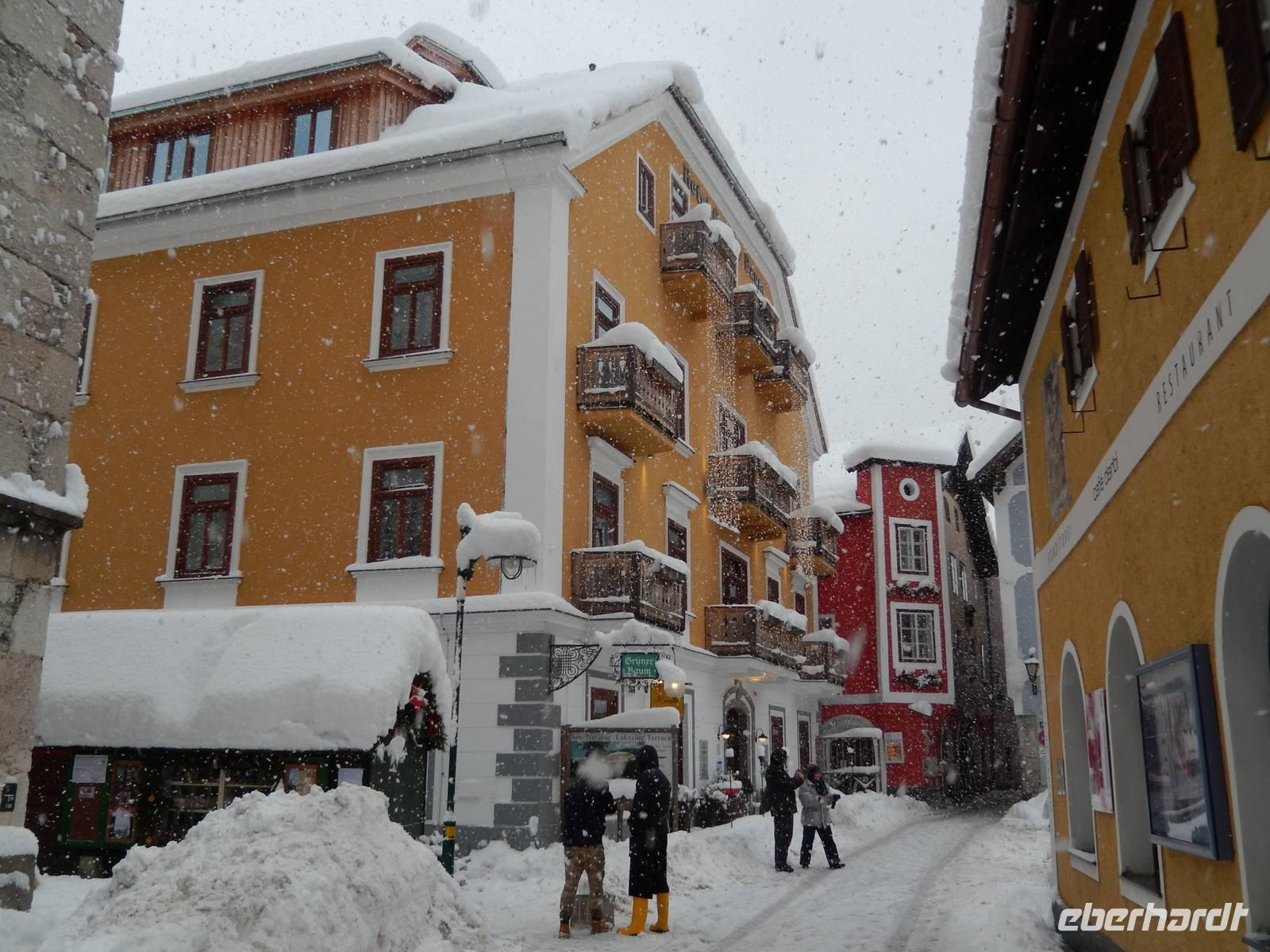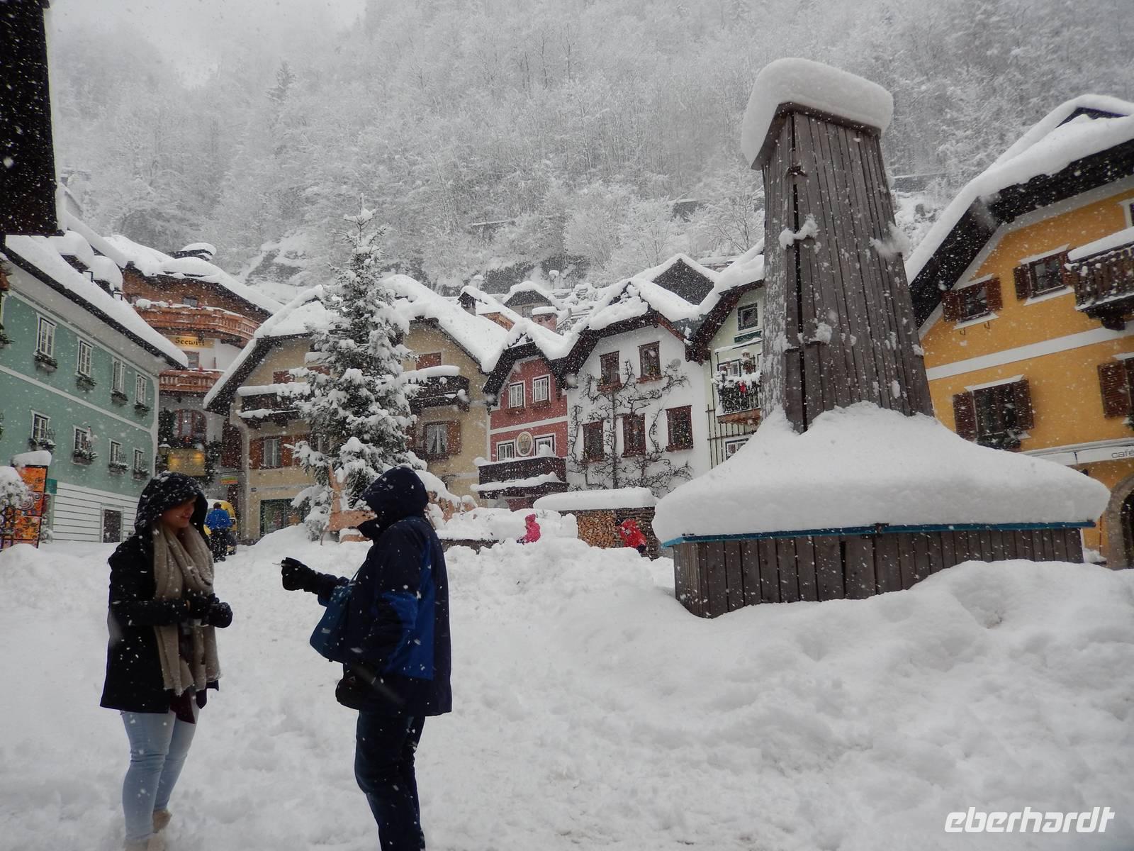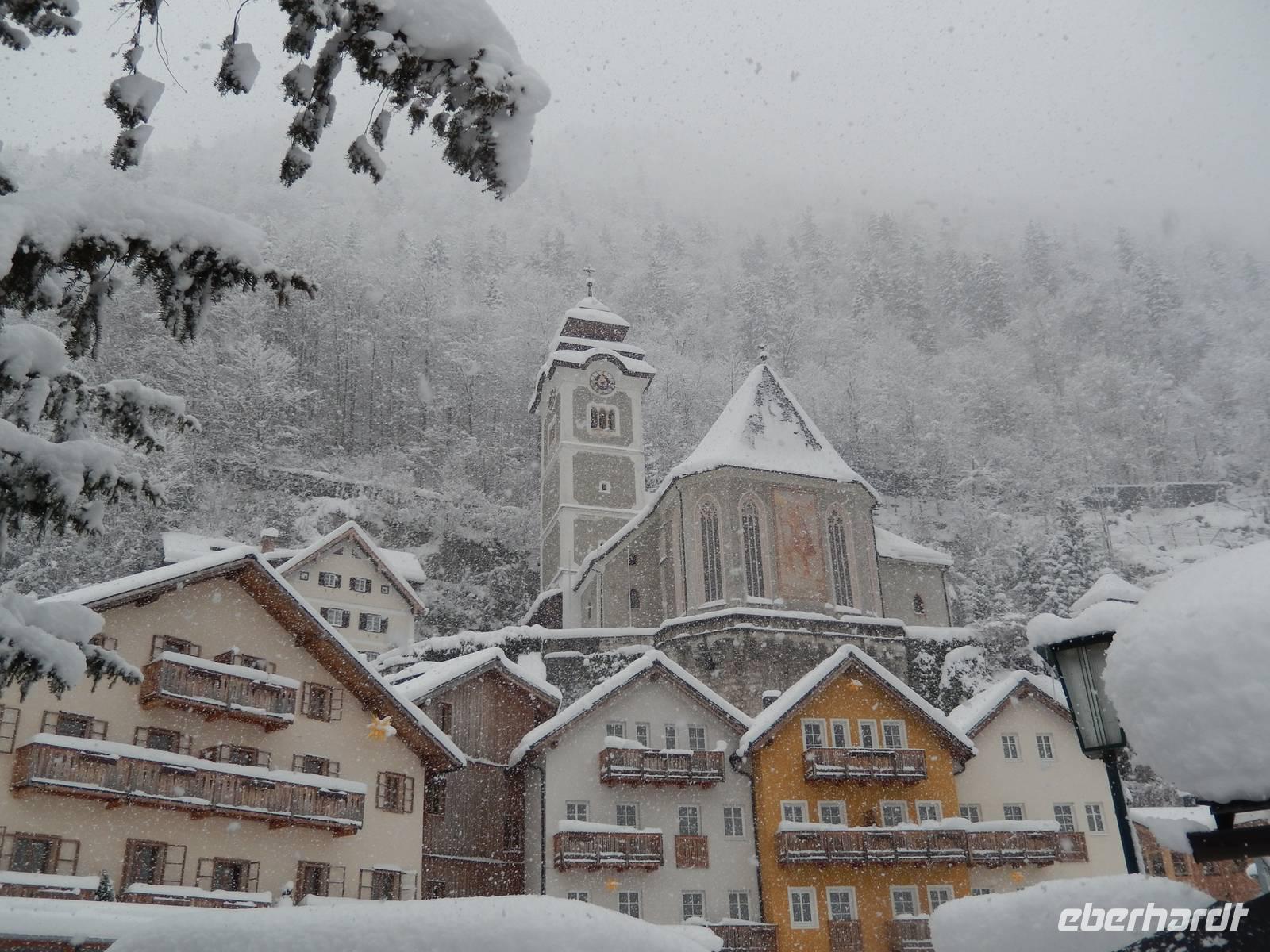 In der Nacht hatte es sehr geschneit und die Straßen waren glatt und nur mit Schneeketten zu befahren. Über den Pass Gschütt reisten wir ins Salzkammergut. Wir erreichten die Region Hallstatt-Dachstein mit dem Hallstätter See. Aufgrund reichhaltiger prähistorischer Fundstätten und einzigartiger Natur gehört es zum UNESCO-Weltnaturerbe. Wir spazierten durch den tief verschneiten Ort. Auf Grund des weiterhin starken Schneefalls und Glätte auf der Straße, entschlossen wir uns in das Hotel zurück zufahren. Dort unternahmen wir einen Spaziergang in das verschneite Lammertal und kehrten in den Lämmerhof ein. Am Silvesterabend gab es ein Büffet und ein Alleinunterhalter spielte mit seiner Harmonika und Kybord. Um Mitternacht stoßen wir mit einem Glas Sekt an und genießen das Feuerwerk.
