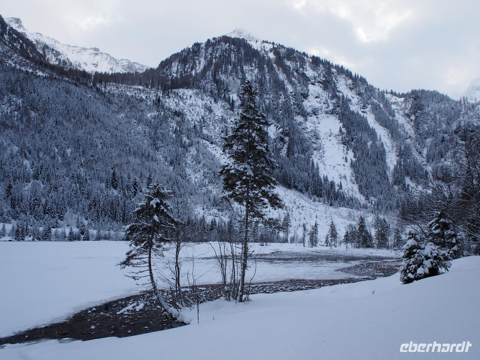 Der Rest der Anreise folgt eher gewöhnlich: entlang der A9 Richtung Süden sammeln wir unsere Gäste aus Sachsen-Anhalt, Sachsen, Thüringen und Baden-Württemberg ein. Bis mittags ist der Verkehr noch recht überschaubar, doch dann macht sich so langsam der weihnachtsbedingte Reiseverkehr bemerkbar. Kurz vor München kann unser Fahrer Thomas zum Glück einen mitunter zeitintensiven Stau rechtzeitig umfahren, sodass wir ohne große Zeiteinbußen die A8 Richtung Salzburg erreichen. Auch hier sind die Straßen recht voll, den Chiemsee erreichen wir jedoch bevor die Dämmerung richtig eingesetzt hat und können somit noch einen schönen Blick über den zweitgrößten See Deutschlands genießen. Von hier ist es auch schon nicht mehr weit bis zur österreichischen Grenze und eine knappe Stunde später erreichen wir unser Hotel in Abtenau. Während der gesamten Fahrt hat es immer mal wieder geregnet, somit freuen wir uns über den Schnee auf rund 700 Metern Höhe. Zum Abschluss des Tages gibt es ein gutbürgerliches Vier-Gänge-Essen im hoteleignen Restaurant und eine herzliche Begrüßung durch den Inhaber und seine Familie.