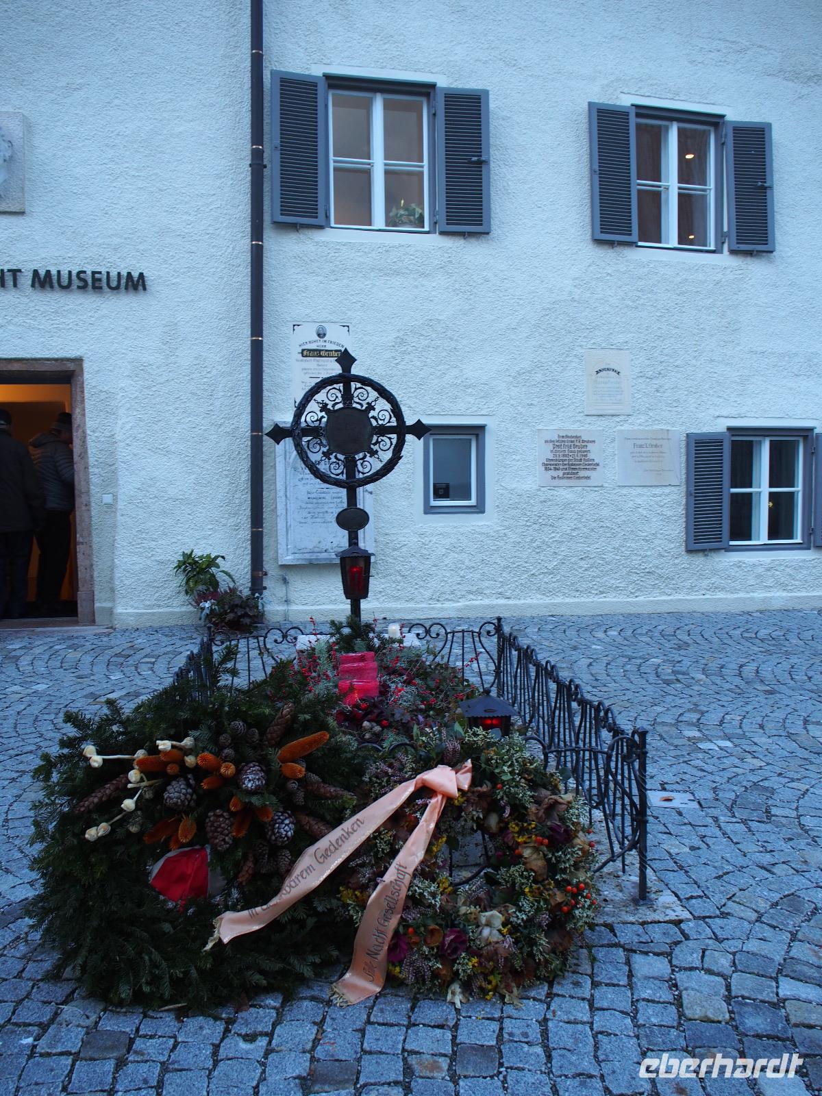 Den Vormittag des 24. Dezembers verbringen wir, ganz standesgemäß, in einer der Hochburgen des Christkindlmarkts - in Salzburg. Auch heute gibt es leider keinen Schnee, aber die Regenschirme brauchen wir glücklicherweise auch nicht oft. Die barocke Altstadt Salzburgs ist festlich geschmückt und viele kleine und große Weihnachtsmärkte laden dazu ein, ein wenig zu Schlendern. Es bietet sich natürlich auch die Gelegenheit die bekanntesten Sehenswürdigkeiten zu besichtigen, wie zum Beispiel das Geburtshaus des Komponisten Wolfgang Amadeus Mozart, den weltbekannten Dom oder aber mit der Festungsbahn hinauf zur Hohensalzburg zu fahren. Später lädt das berühmte Café Tomasselli zu einem köstlichen Stück Apfelstrudel ein und was am Ende natürlich nicht fehlen darf, ist eine originale Mozartkugel aus der Confiserie Fürst. Ein Heiligabend ist jedoch natürlich nicht vollständig ohne Weihnachtsmusik, also führt uns unser nächster Stopp auf den Spuren des Liedes „Stille Nacht“ weiter nach Oberndorf. Im Salzburger Land gibt es einige Orte, die sehr eng in Verbindung stehen mit der Entstehung eines der berühmtesten Weihnachtslieder der Welt. Oberndorf ist der Ort in dem das Lied vor genau 200 Jahren zum ersten Mal von den Autoren Josef Mohr und Franz Xaver Gruber aufgeführt wurde. Die Kirche St. Nikola steht heute nicht mehr, stattdessen seit 1936 jedoch keine kleine Kapelle, die an das Ereignis erinnern soll.