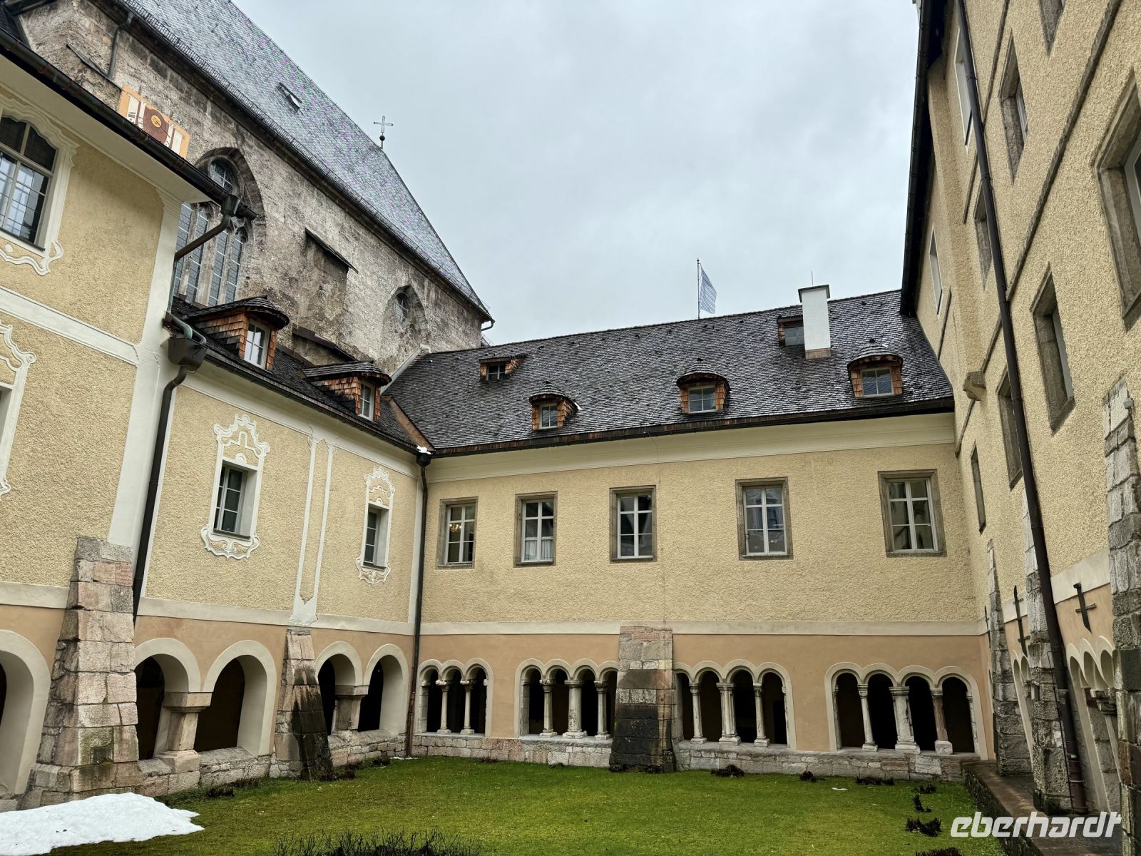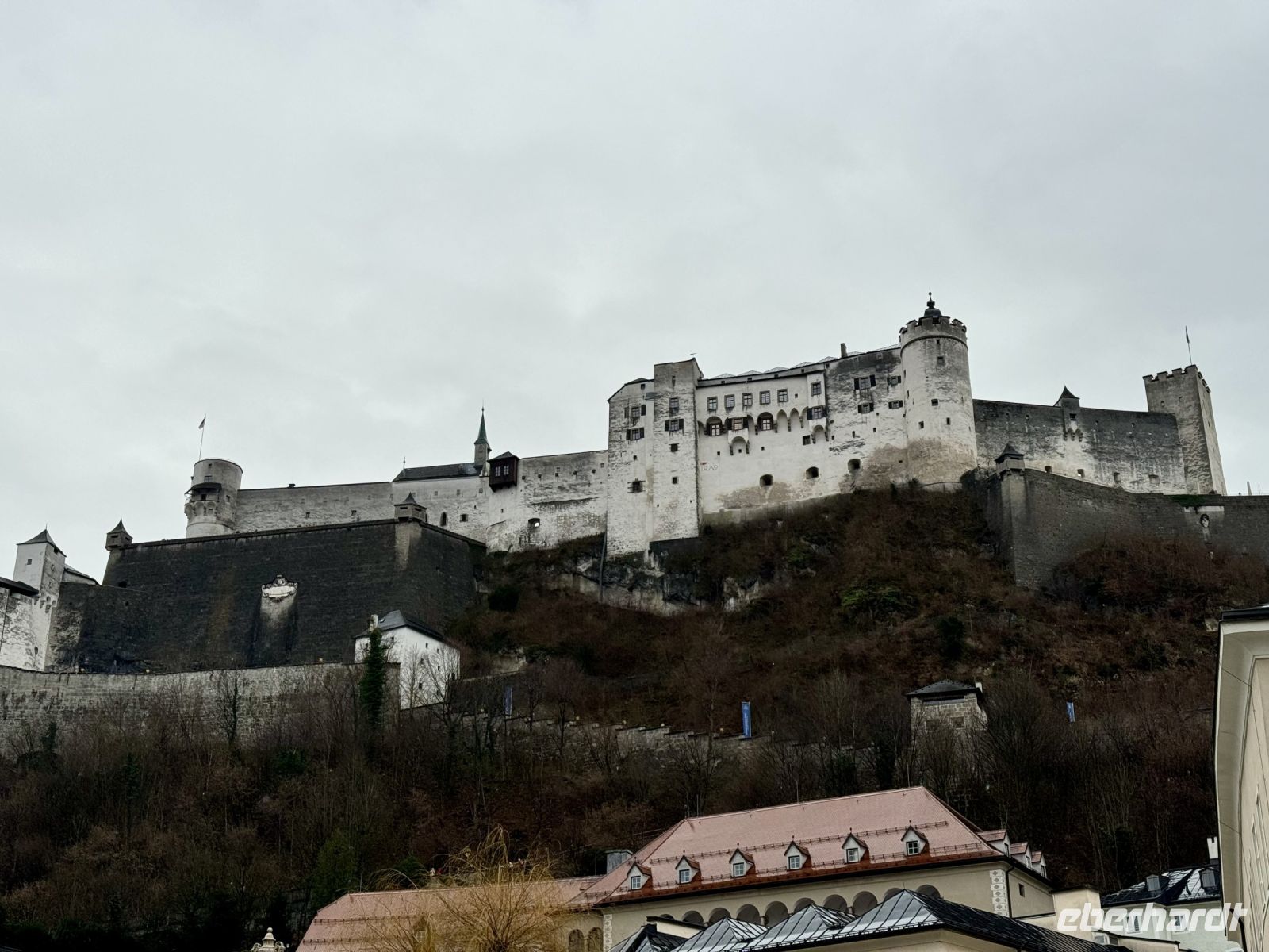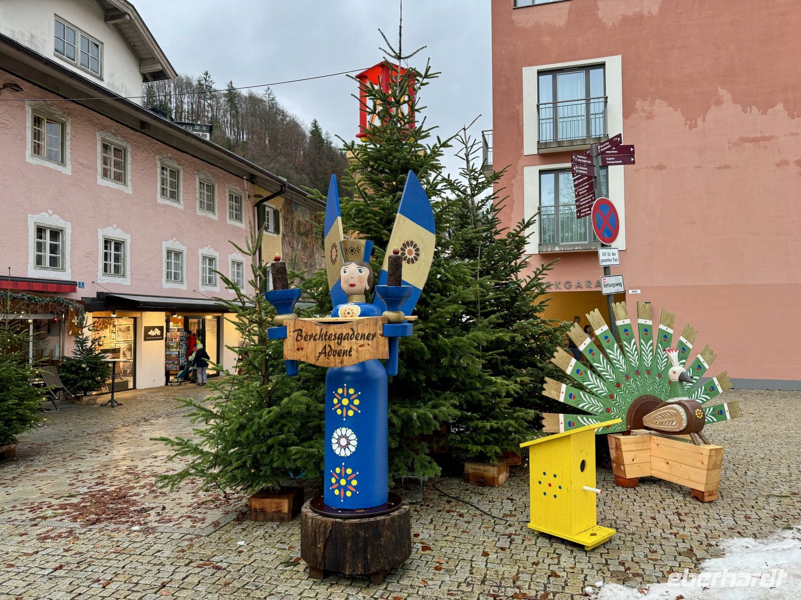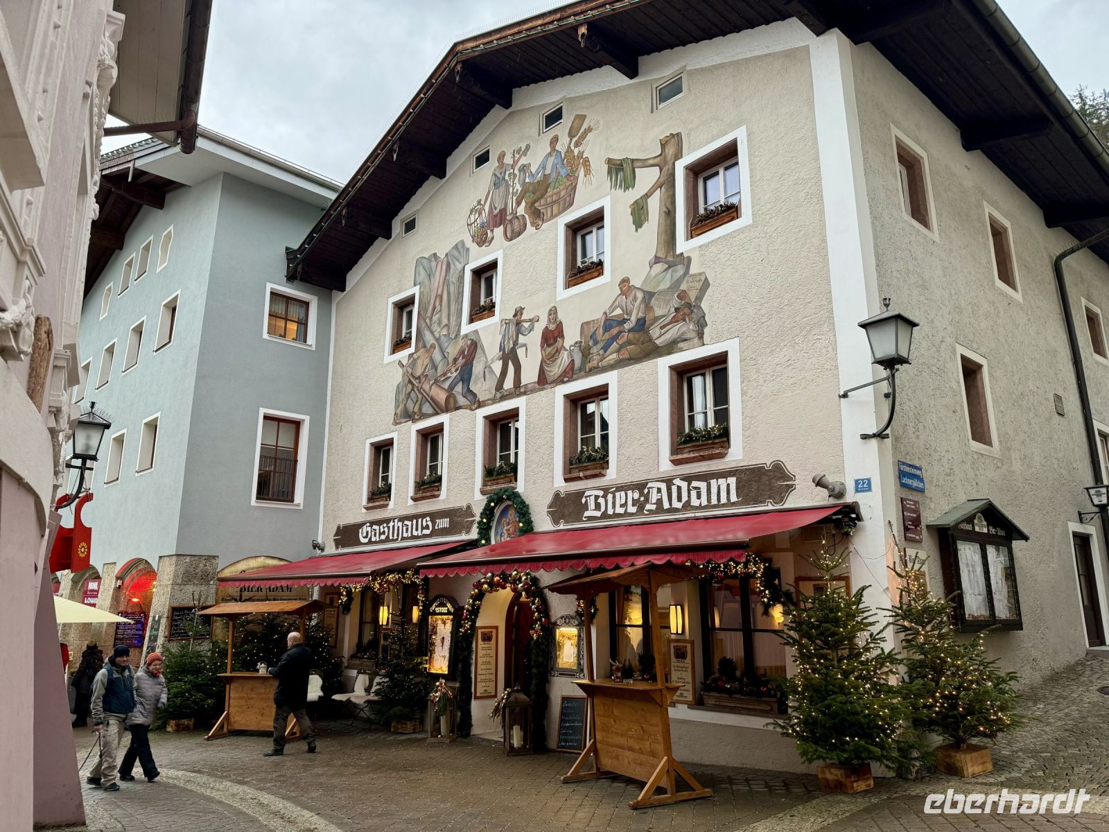 Das Schöne an Weihnachtsreisen ist für mich unter anderem, dass wir i. d. R. entspannt in den Tag starten und somit auch das Frühstücksbuffet ausgiebig genießen können. Beim Blick nach draußen sehen wir noch viel Schnee und außerdem die umliegenden Berge. Bei der Anreise war es ja gestern schon dunkel, sodass wir das Tennengebirge nur erahnen konnten. Unser erster Ausflug führt uns zurück nach Deutschland, ins Berchtesgadener Land. Hier wartet eine weihnachtliche Führung durch das Schloss Berchtesgaden auf uns. Heute hat es sich ein bisschen eingeregnet, doch vom Busparkplatz bis zum Schloss ist es zum Glück nicht weit. Während der Führung erhalten wir nicht nur einen Einblick in die lange Geschichte des Gebäudekomplexes und der Wittelsbacher, sondern werden auch mit einer gesanglichen Darbietung unterhalten. Zudem sind die Ausstellungsräume festlich geschmückt. Besonders im großen Speisesaal wird dank Weihnachtsbaum und Tischschmuck sowie den vorgetragenen Erinnerungen der Tochter des Kronprinzen Rupprecht der Geist der vergangenen Weihnacht lebendig. Konzeptionell ist die Führung gut durchdacht und löst Begeisterung aus, zumal sich die beiden Damen Zeit nehmen und auch auf unsere Fragen eingegangen wird. Als die Sopranistin zum Abschluss in der großen Eingangshalle „O Holy Night“ anstimmt, bekommen wir eine änsehaut. Nach der Führung schauen wir uns noch die benachbarte sehr schöne Stiftskirche St. Peter und Johannes der Täufer an. Bereits vor unserer Abfahrt nach Berchtesgaden habe ich erfahren, dass der Adventszauber am Schloss Hellbrunn in Salzburg aufgrund starker Sturmschäden nicht mehr öffnet, weshalb dieser Programmpunkt heute leider entfallen muss. Stattdessen bleiben wir etwas länger in Berchtesgaden und beobachten um 15 Uhr noch das traditionelle Christkindl-Anschießen der Böllerschützen, womit das Christkind in den Ort gelockt werden soll. Viel Lärm und Rauch steigt oben auf dem Lockstein auf. Vom Schlossplatz aus können wir das Spektakel besonders gut beobachten. Danach schlendern wir langsam zum Bus, wo der von Roy angesetzte Glühwein auf uns wartet. Genau richtig zum Aufwärmen bei diesem nasskalten Wetter! Auch heute herrscht wieder Stau auf der Tauernautobahn, weshalb wir für die Rückfahrt zum Hotel doppelt so lange brauchen wie für die Hinfahrt. Vor dem Abendessen erwartet uns ein kleines musikalisches Programm, gestaltet von drei örtlichen Musikanten (zwei Männer, eine Frau), die uns heimatliche Weihnachtslieder vorstellen und u. a. den Andachtsjodler beibringen. Das klappt ganz gut, aber beim Mitsingen der Weihnachtslieder können wir sie so richtig beeindrucken. Da hat sich das gemeinsame Singen im Bus bereits das erste Mal bezahlt gemacht! Alles in allem war es ein schöner erster gemeinsamer Ausflugstag!