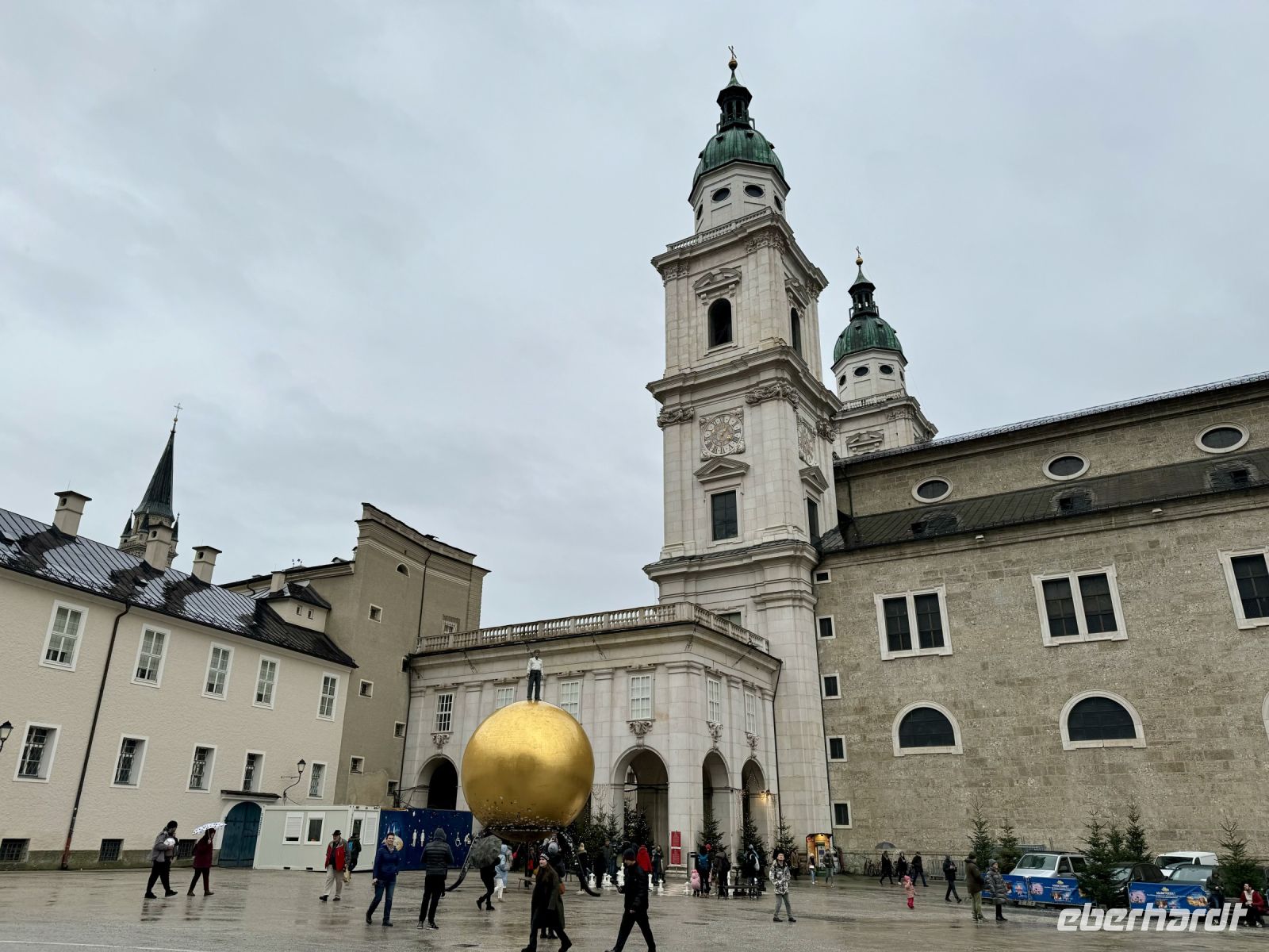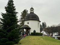 Am Vormittag begeben wir uns in die Mozartstadt Salzburg, um den dortigen Christkindlmarkt zu besuchen. Der Besuch soll uns auf den Heiligen Abend einstimmen. Gemeinsam laufen wir zum späteren Treffpunkt am Mozart-Denkmal auf dem Mozartplatz. Mit der Eislaufbahn beginnt hier bereits der Christkindlmarkt, der sich ferner über den angrenzenden Residenzplatz und den Domplatz erstreckt. Das barocke Ensemble bildet eine schöne Kulisse für den Markt, der vor allem mit traditioneller Handwerkskunst wirbt. Der Anteil an Essens- und Glühweinständen ist deutlich geringer als bei so manchen Weihnachtsmärkten in Deutschland. Außerdem ist es am Vormittag noch relativ leer, sodass wir tatsächlich gemütlich über den Christkindlmarkt bummeln können. Später lässt sich auch der Dom besichtigen. Nur der Dauerregen von oben trübt ein bisschen die Stimmung. Derweil meine Gäste also die Stände inspizieren, gehe ich in der Konditorei Fürst Mozartkugeln shoppen, die ich auf der Weiterfahrt nach Oberndorf als erstes kleines Geschenk im Bus verteile. Auch in Oberndorf wartet ein kleiner Weihnachtsmarkt auf unseren Besuch, doch hauptsächlich gilt unsere Aufmerksamkeit der hübschen kleinen Stille-Nacht-Kapelle an der Stelle der ehemaligen Schifferkirche, in der „Stille Nacht“ 1818 erstmals aufgeführt wurde. Nach der Besichtigung warten auch heute auf meine Gäste wieder Glühwein und Kekse im Bus. Der große Stau hat sich endlich aufgelöst, weshalb Roy uns zügig zurück nach Abtenau bringen kann. Auf der Hotelterrasse werden wir mit Feuerschalen und (noch mehr) Glühwein empfangen. Oha, das verspricht ein lustiger Abend zu werden. Zum Abendessen am heutigen Heiligabend erwartet uns sogar ein festliches 6-Gänge-Menü – hätte ich bloß vorher keine Kekse gegessen! Also verhungern tut wahrlich niemand auf dieser Reise, zumal immer eine Auswahl gegeben ist. Zwischendurch singen wir mit der Inhaberfamilie gemeinsam ein Lied – „Stille Nacht“ natürlich – und werden mit einer kleinen Aufmerksamkeit bedacht. Nach dem Dessert findet auch der Weihnachtsmann noch den Weg nach Abtenau, den ich aber mal wieder verpasse. Einige Gäste sollen wohl kleine Verse und Gedichte vorgetragen haben, und Geschenke gab es auch. Als ich zurückkomme, ist er jedenfalls schon wieder weg ... Aber auch Roy und ich werden von unseren Gästen mit kleinen Geschenken bedacht, wovon wir beide sehr gerührt sind. Ein schöner Weihnachtsabend!