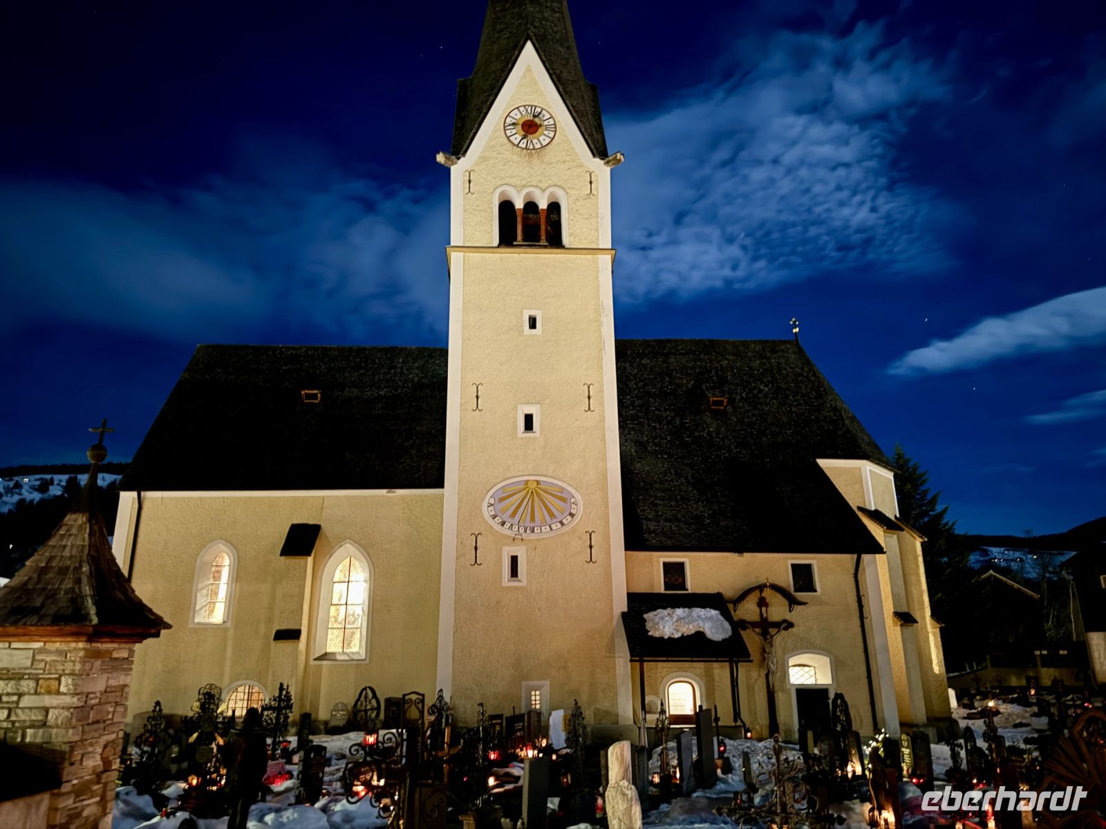 Der zweite Weihnachtsfeiertag und nun schon letzte offizielle Programmtag dieser schönen Weihnachtsreise ist ganz den beiden Schöpfern des Weihnachtsliedes „Stille Nacht“ gewidmet. So viel „Stille Nacht“ auf dieser Reise – wird das nicht langweilig? Aber nein, lautet die Antwort, denn natürlich geht es nicht nur um Franz Xaver Gruber und Joseph Mohr, die beide aufgrund ihrer wohltätigen Arbeit im Salzburger Land geradezu als Helden verehrt werden. Unsere Stadtführerin in Hallein entführt uns vielmehr – verkleidet und vollkommen in ihrer Rolle als Tochter von Franz Xaver Gruber aufgehend – in die Vergangenheit und Geschichte sowie das Leben in der Stadt Hallein zu Beginn des 19. Jahrhunderts. Natürlich geht es viel um das begehrte Salz, aber auch die große Armut nach den Napoleonischen Kriegen und die gesellschaftlichen Sitten und Zwänge. Einmal mehr zahlt sich aus, dass wir unterwegs im Bus so fleißig Weihnachtslieder geträllert haben, denn auch im Stille-Nacht-Museum wird die ein oder andere Weise angestimmt, derweil unsere Stadtführerin uns auf einem Nachbau der originalen Gitarre von Gruber begleitet. Im Anschluss an den Museumsbesuch geht sie mit uns zudem in die benachbarte Stadtpfarrkirche und begleitet uns zurück zum Bus. Roy hat in der Zwischenzeit den Würstchenkocher zum Glühen gebracht und Kaffee aufgesetzt. Vorbei an der Festung Hohenwerfen, der Eisriesenwelt im Tennengebirge und an Bischofshofen geht es weiter nach Wagrain. Im dortigen Café Anderl werden wir bereits zu Kaffee und Kuchen erwartet. Aber auch herzhafte Kleinigkeiten stehen auf der Speisekarte. Das Joseph-Mohr-Gedächtnissingen in der Pfarrkirche von Wagrain bildet den krönenden Höhepunkt des Tages und programmatischen Abschluss unserer Reise. Hervorzuheben sind vor allem die außerordentlich talentierte Sopranistin, die zudem ganz bezaubernd auf der Harfe spielt, sowie der Chor. Da kommt noch einmal richtig Weihnachtsstimmung auf. Es obliegt wieder dem lieben Roy, uns über die Salzburger Dolomitenstraße sicher zurück nach Abtenau zu fahren. Beim letzten gemeinsamen Abendessen als Gruppe verabschieden wir beide uns von allen Gästen, die noch über Silvester im Salzburger Land bleiben dürfen.