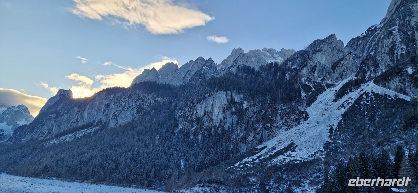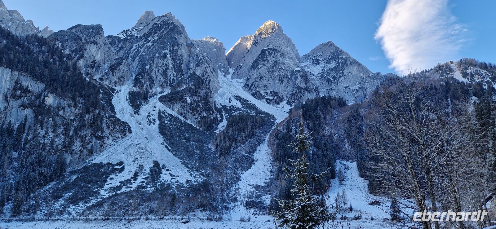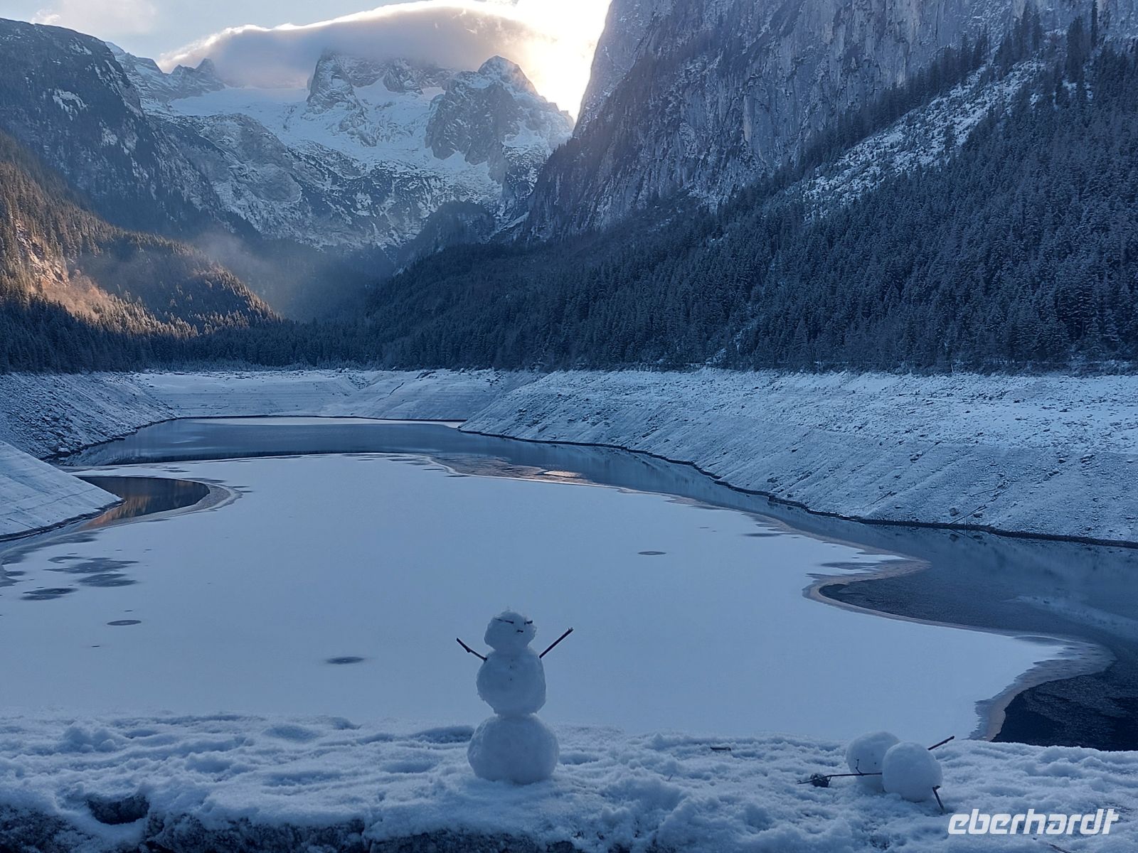 Nach der „Heiligen Nacht“ starteten wir, bei schönstem Wetter, zu unserer Dachsteintour. Die Landschaft war leicht „bezuckert“.