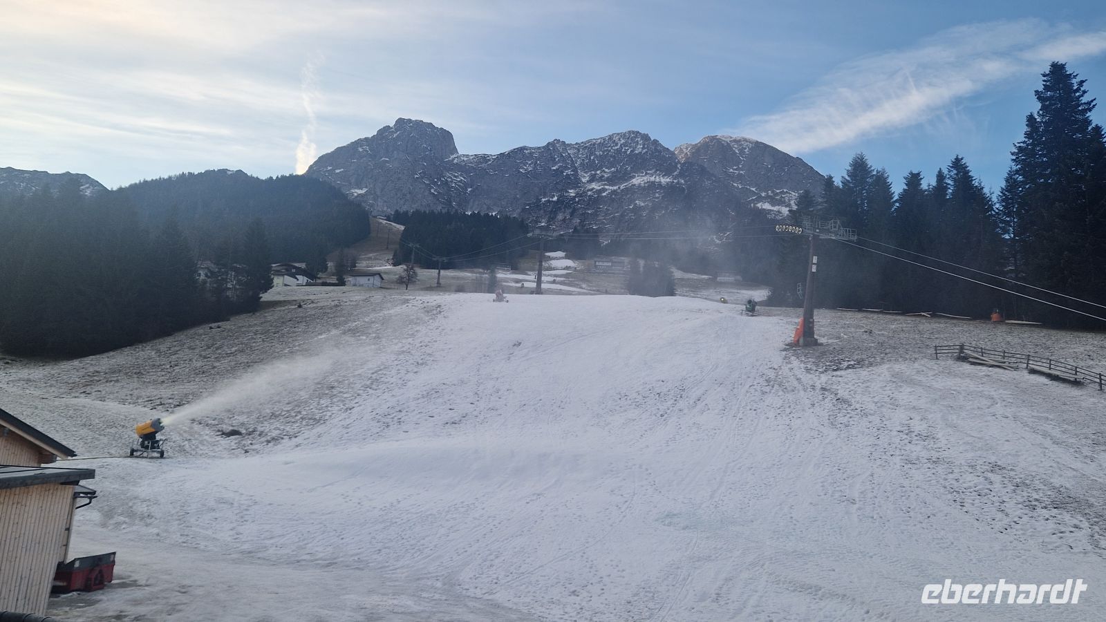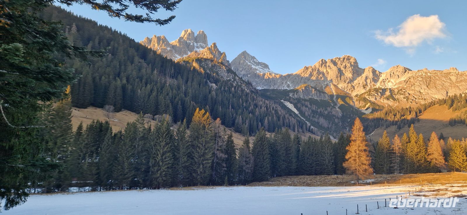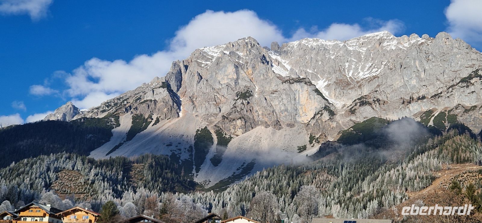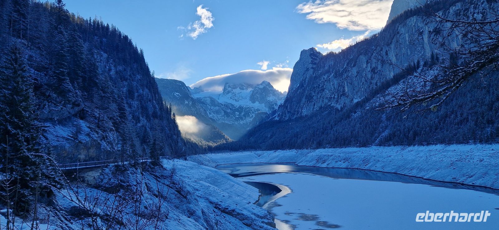 Nach der „Heiligen Nacht“ starteten wir, bei schönstem Wetter, zu unserer Dachsteintour. Die Landschaft war leicht „bezuckert“.