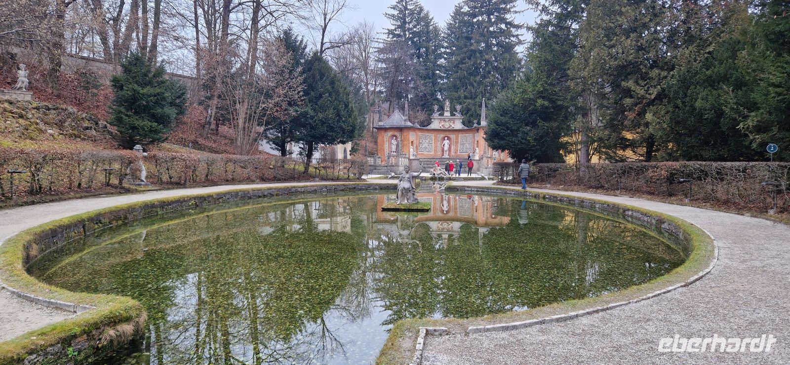 Um 14:00 Uhr ging es mit dem Bus wieder runter ins Salzachtal, zum 1617 erbauten Salzburger Schloss Hellbrunn. Das Schloss, das der damalige Fürsterzbischof im italienischen Stil als Lustschloss errichtet ließ, ist von einen der größten Parkanlagen Österreichs umgeben. Im Garten sind die weltweit ältesten, noch in Betrieb befindlichen Wasserspiele installiert, die natürlich im Winter stillgelegt sind.