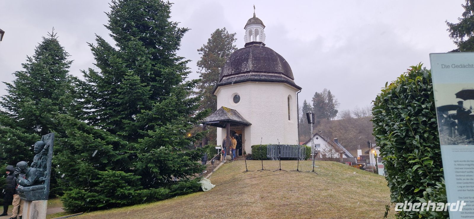 Als wir zur kleinen Kapelle kamen, fing es an zu schneien! Das war ein Timing! Wer hat das so punktgenau für uns bestellt?