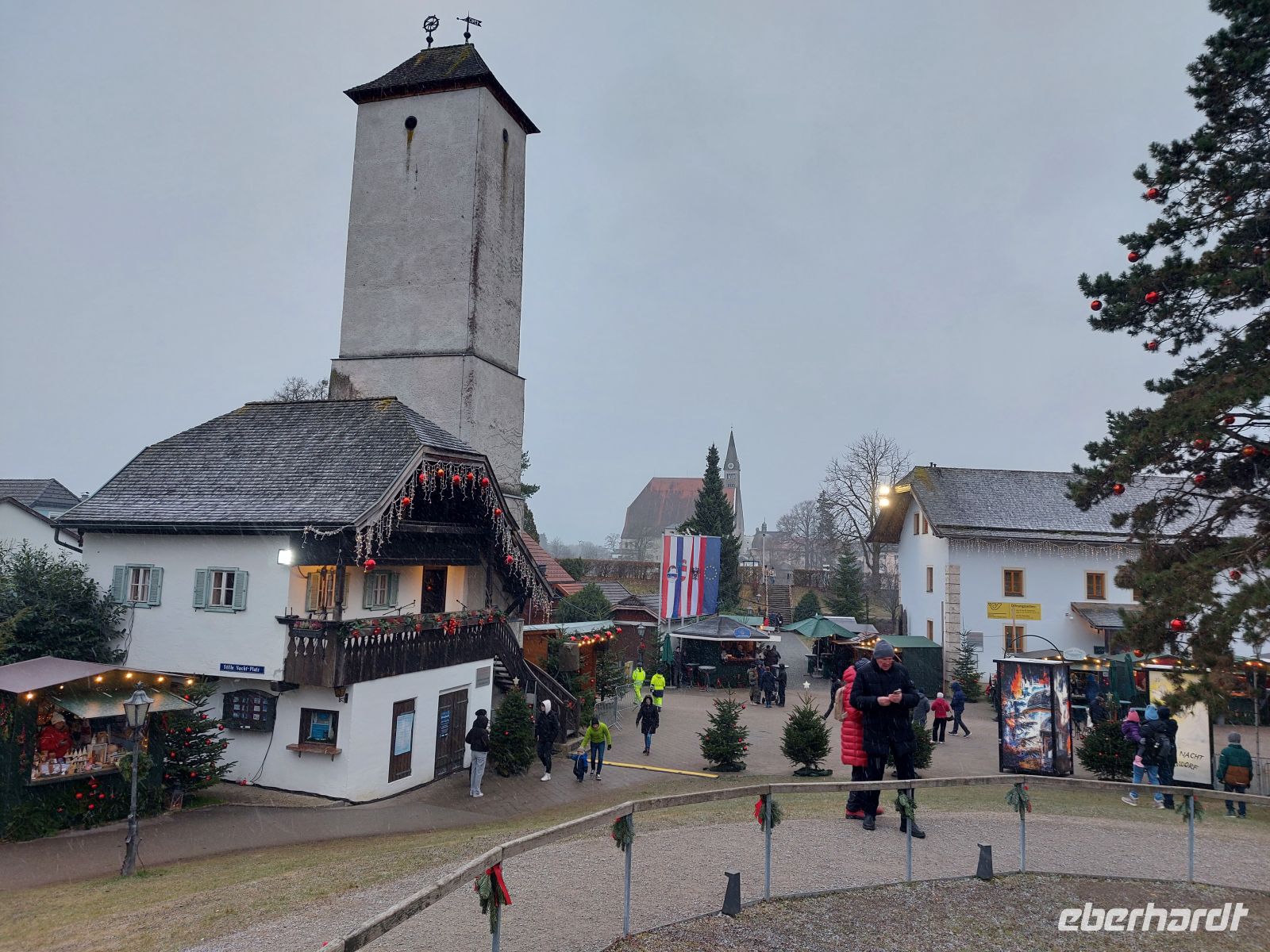 Weiter ging es Richtung Norden. Umso näher wir der Salzach kamen, um so nebliger wurde es. Unser nächster Stopp, die Burg von Gollingen, lag leider auch im Nebel. Bei einem kleinen Ortsspaziergang schauten noch einige von unserer Gruppe in die örtliche Pfarrkirche hinein. Dort wurde gerade in der Messe „O Du Fröhliche“ gesungen.