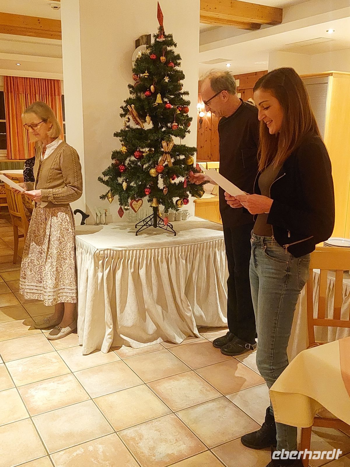 Nach dem Zwischengang hat die älteste Tochter des Hauses eine Weihnachtsgeschichte vorgetragen und wir haben nochmals, mit mäßigem Erfolg, „Stille Nacht“ gesungen.