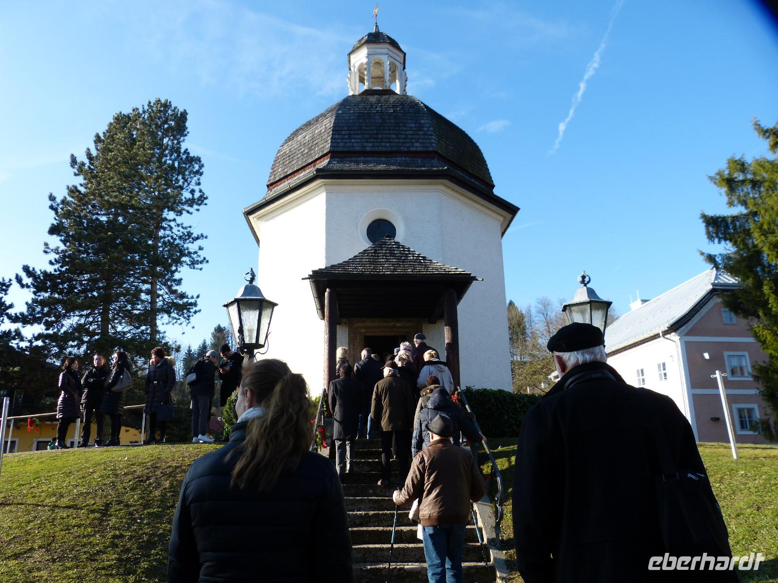 Im Museum wurden wir sach- und fachkundig geführt und der Film über das Weihnachtslied war für alle Teilnehmer eine interessante Angelegenheit. Anschließend fuhren wir ins benachbarte Oberndorf um die Stille-Nacht-Gedächtniskapelle zu bestaunen. Auf der Weiterfahrt nach Salzburg wurden Weihnachtslieder gespielt. Unser anschließender Besuch des Christkindelmarktes war ein Höhepunkt dieser Reise. Beim Rückweg zum Bus ertönten die Glocken des Domes zu Salzburg und läuteten Weihnachten ein. Auf unserer Fahrt zum Hotel machten wir noch einmal einen kurzen Halt, denn jeder Gast bekam zum Heiligen Abend einen Glühwein von Eberhardt-Travel ausgegeben, dazu spendierte der Busfahrer noch einen Schokoladenpfefferkuchen.