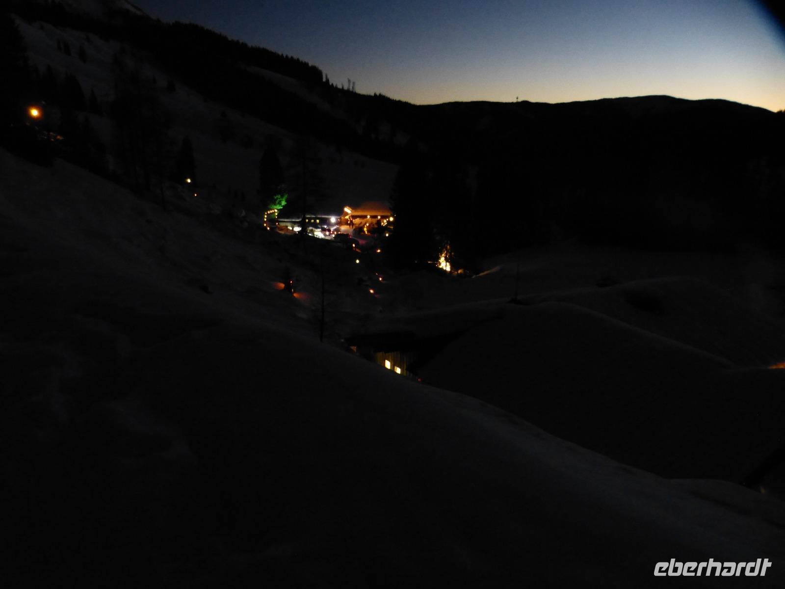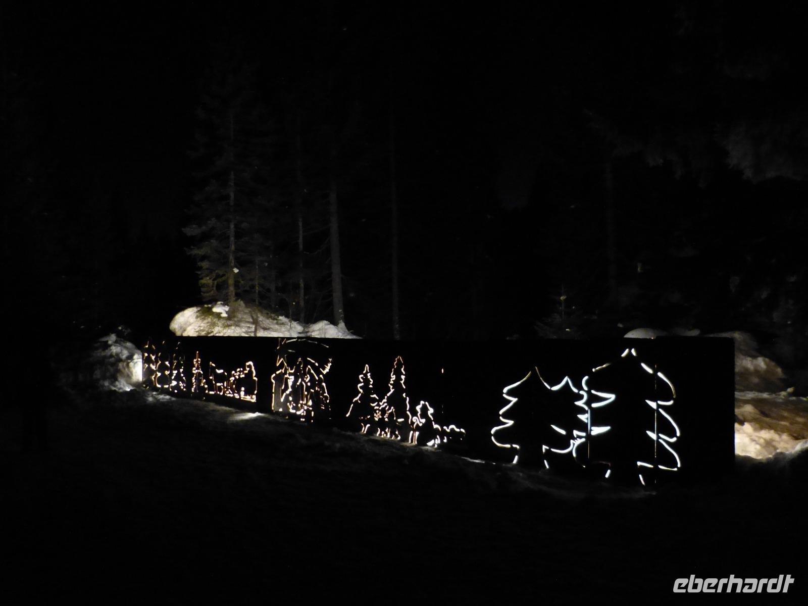 17.00 Uhr als es auf der Hofalm zu dämmern begann, konnten alle an einer Wanderung durch das Weihnachtsidyll der Hofalm teilnehmen. Dieser Rundweg bot sehr viele weihnachtliche Attraktionen, die zum Teil sehenswert angestrahlt wurden. Leider war der Weg sehr vereist, sodass nicht alle Gäste mitgingen.