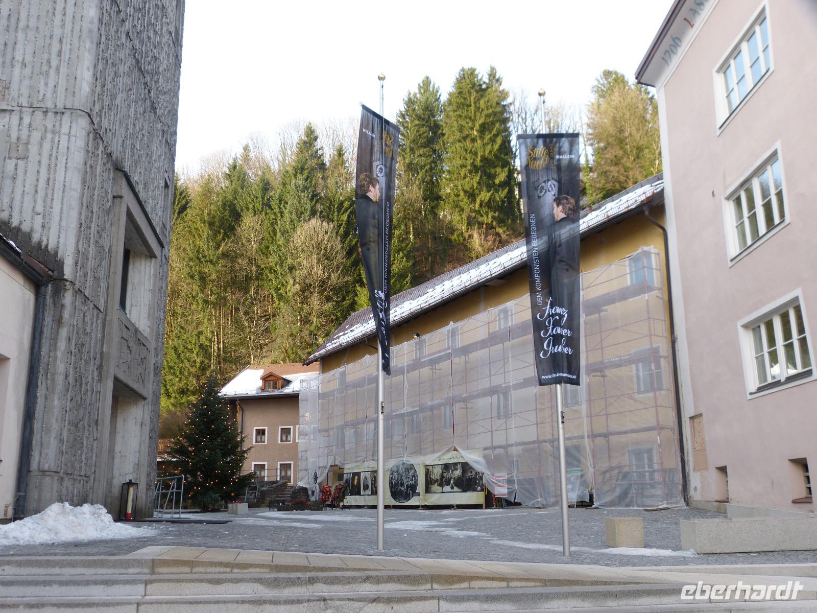 Nach dem reichlichem Frühstück ging es heute wiederum bei bestem Wetter zunächst nach Hallein. Dort wartete bereits ein kompetenter Reisebegleiter - Führer wollte er nicht genannt werden - und erklärte uns auf humorvolle Weise viel von der Geschichte von Hallein und dem Salz, sowie der Beziehung der Stadt zum Weihnachtslied. Leider konnten wir das Stille Nacht-Museum nicht besuchen, da es in Vorbereitung der 200 Jahrfeier von Stille Nacht, Heilige Nacht renoviert wird. Der Rundgang endete direkt am Bus, und der Busfahrer und ich entschlossen sich spontan nochmals einen Glühwein im Namen von Eberhardt-Travel zu spendieren. Das kam bei den Gästen wiederum sehr gut an.
