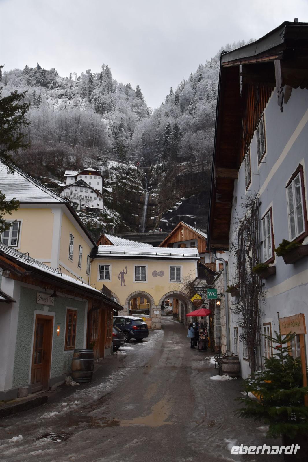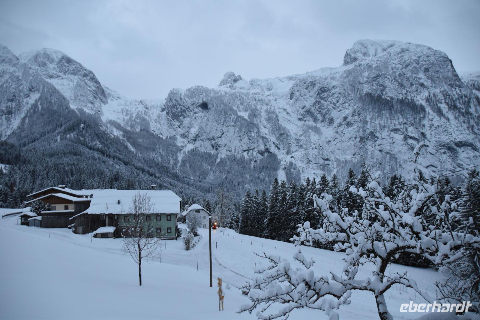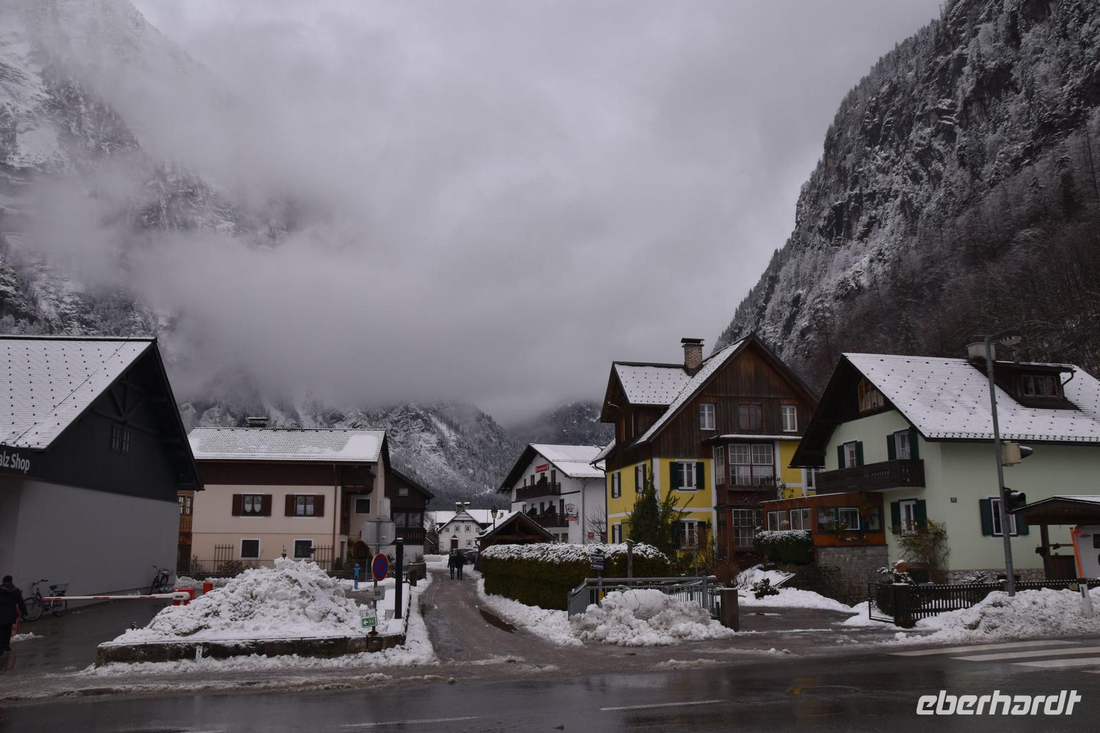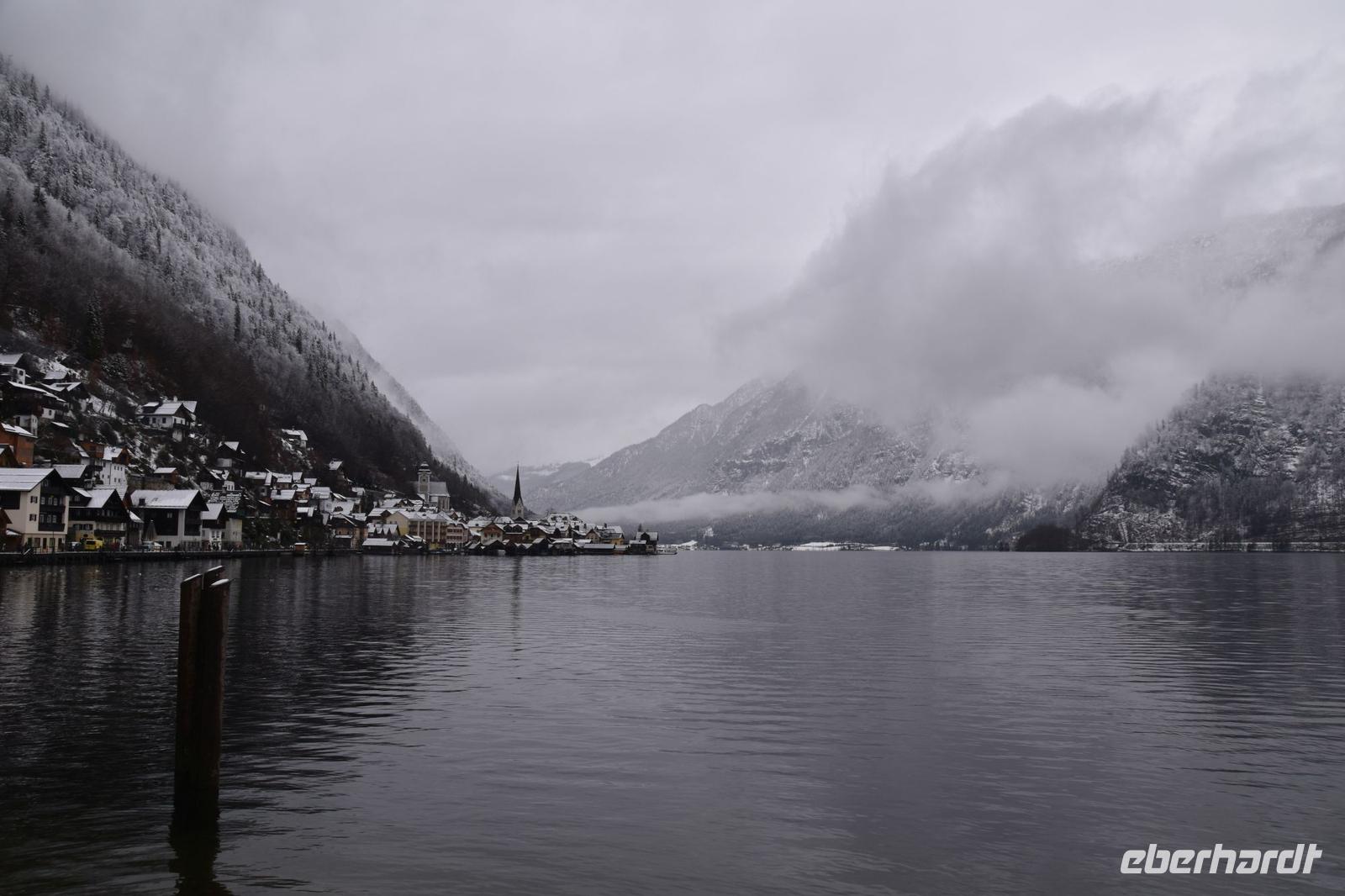 Von Abtenau fahren wir im leichten Flockenwirbel Richtung des westlichen Gosaukammes, dem westlichen Ausläufer des Dachsteinmassivs. Die Straßen sind gut geräumt und so kommen wir gut über den 968 m hohen Pass Gschütt und weiter über den Ort Gosau hinunter ins Trauntal an den Hallstädter See. Hier ist die UNESCO-Welterberegion um Hallstatt unser erstes Ziel. Malerisch liegt der Ort am steil zum See abfallenden Salzberg, wo schon seit mehr als drei Jahrtausenden Menschen siedeln und vom Salzabbau leben.