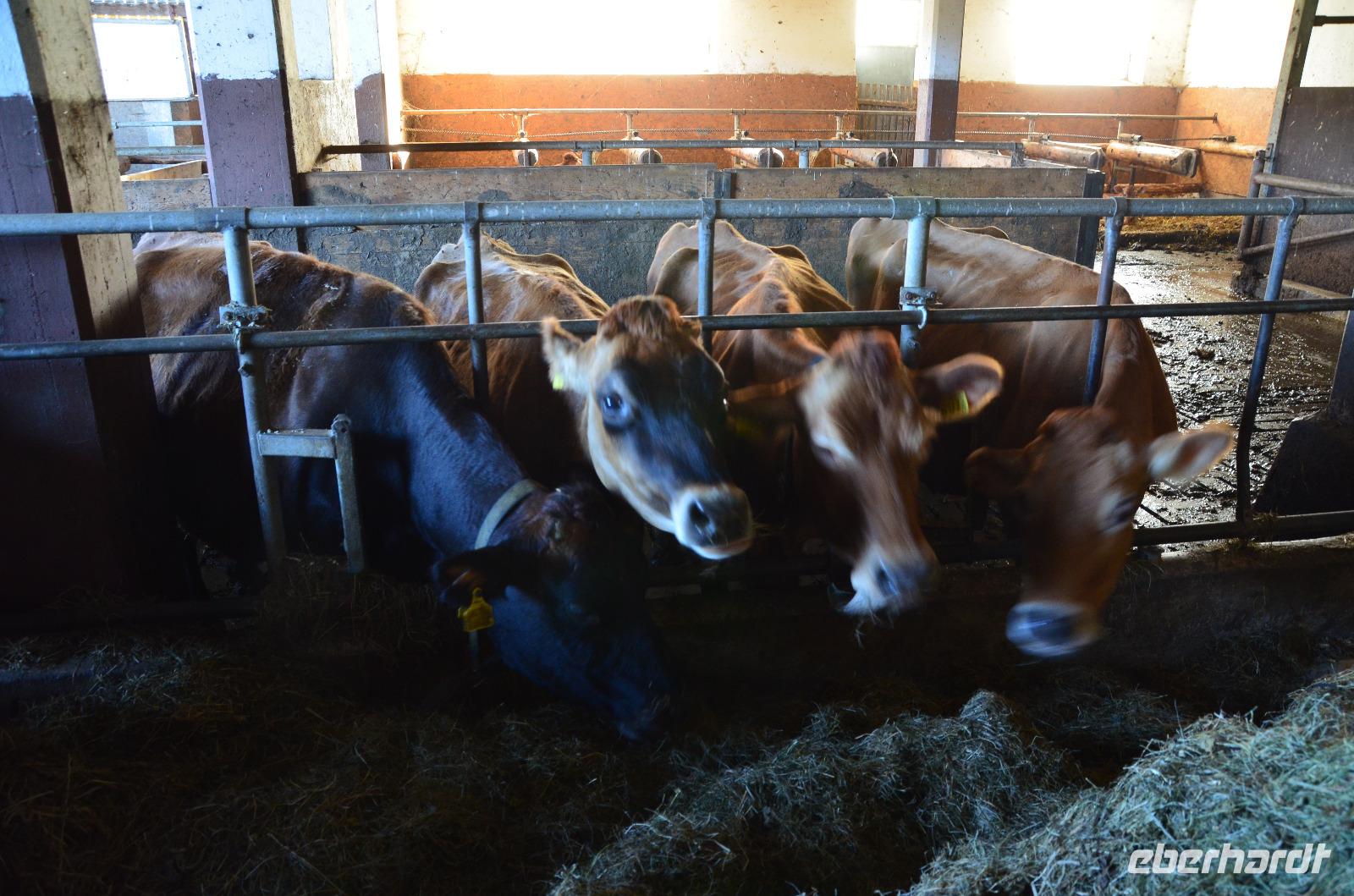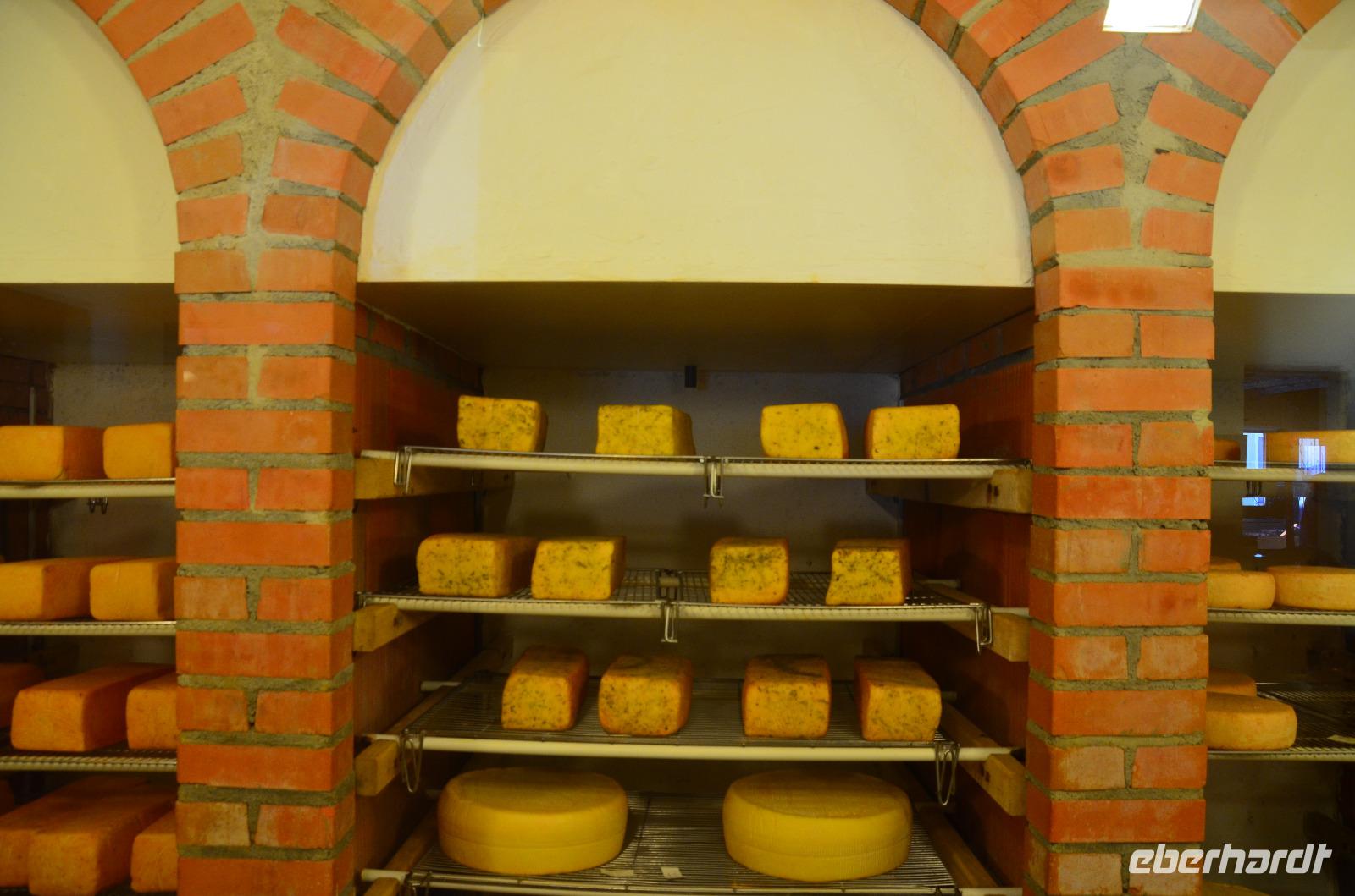 Danach klettern wir in unseren gut geheizten Reisebus und fahren wieder hinunter zur Autobahn im Salzachtal. Ab Hallein geht es Richtung Grenze und über Marktschellenberg nach Berchtesgaden. Die berühmte Enzianbrennerei Grassl ist unser Besuchsziel. Wir lernen die Herstellungsweise vom Ausgraben der Wurzeln bis zur Lagerung in Eichenfässern kennen und können alle Varianten von Kräuterschnäpsen, Obstlern und Likören verkosten. So manches Fläschlein wechselt anschließend den Besitzer und fährt dann in unserem Bus mit. Über Oberau und Bad Dürrenberg fahren wir hinüber nach Hallein und gemeinsam zurück Richtung Golling. In der Ortschaft Kuchl im Salzachtal steht der Fürstenhof, eine erfolgreiche Biokäserei, wo wir eine Menge über die österreichische Landwirtschaft, die Käseherstellung und natürlich die Zucht und Spezifik der Jersey-Rinder erfahren. Natürlich können wir die verschiedenen Käsesorten auch probieren.