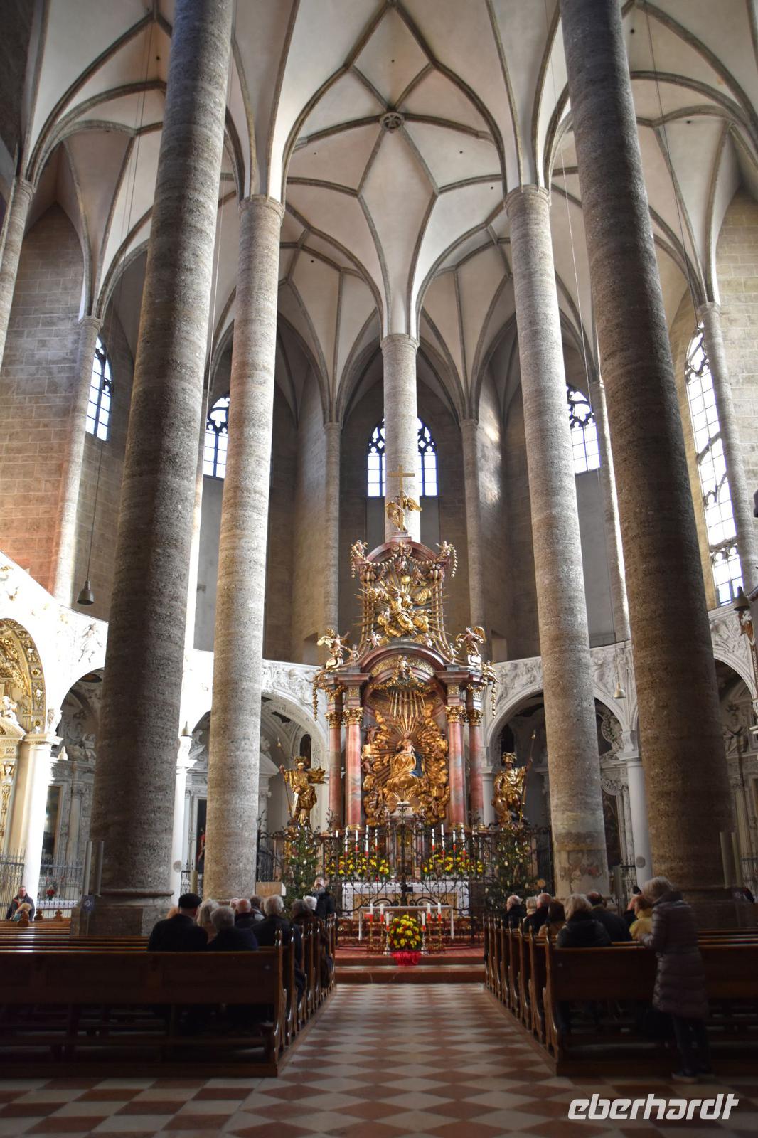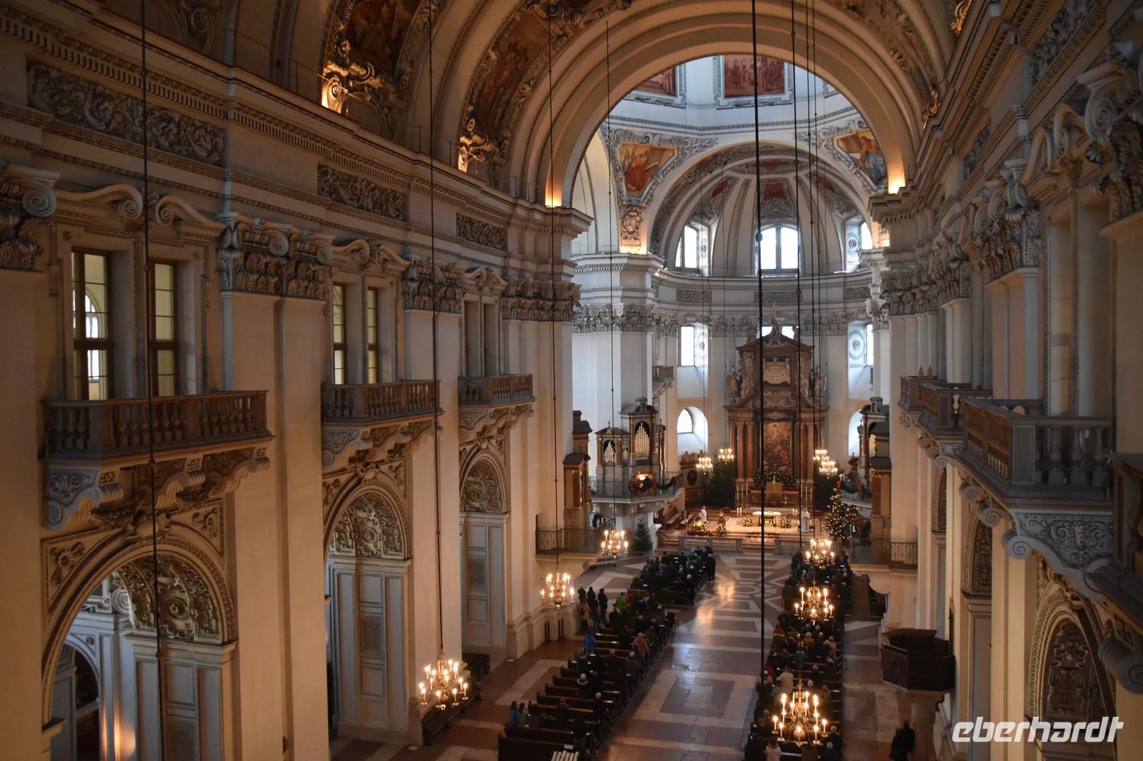 In der Stadt Salzburg angekommen, gehen wir gemeinsam durch die Gassen der Innenstadt zum Domplatz und weiter zum Residenzplatz. Am Eingang der Neuen Residenz treffen wir unsere beiden sehr sachkundigen Führerinnen, die uns hier in zwei Gruppen teilen. So beginnt ein fast zweistündiger, sehr interessanter Rundgang durch die erzbischöfliche Residenz mit Gemäldegalerie und Prunkräumen, den Dom mit seiner Schatzkammer, sowie die Ausstellungsräume des Franziskanerklosters.