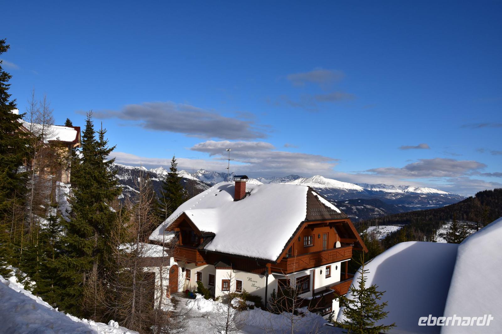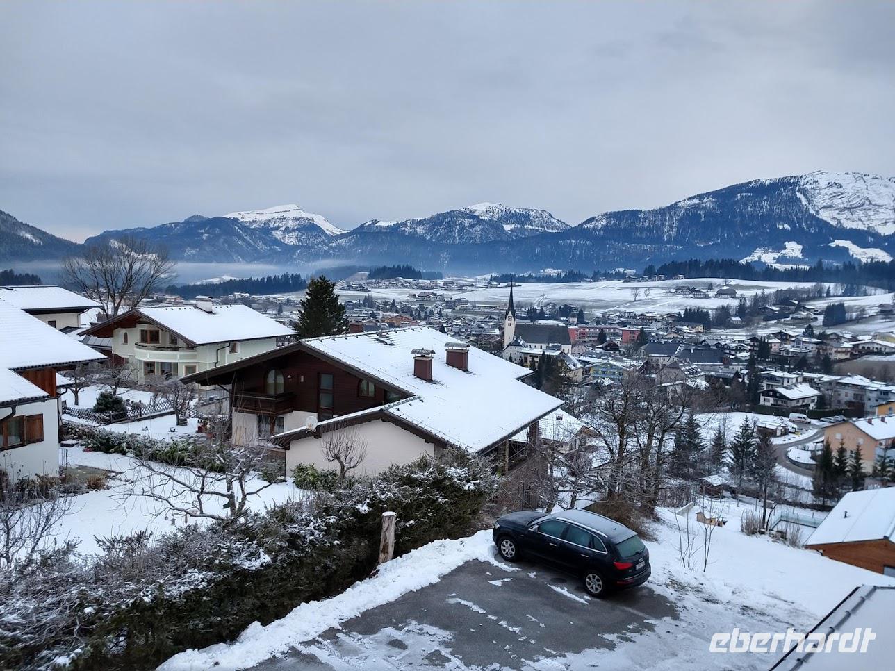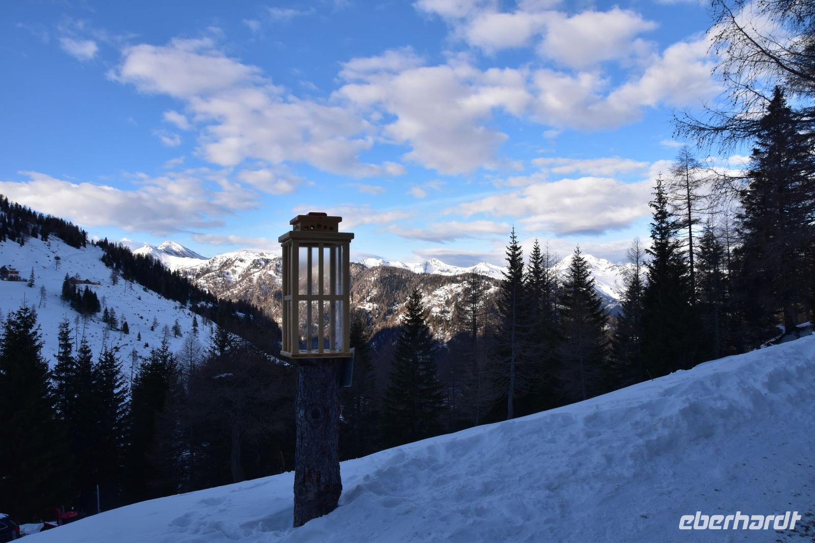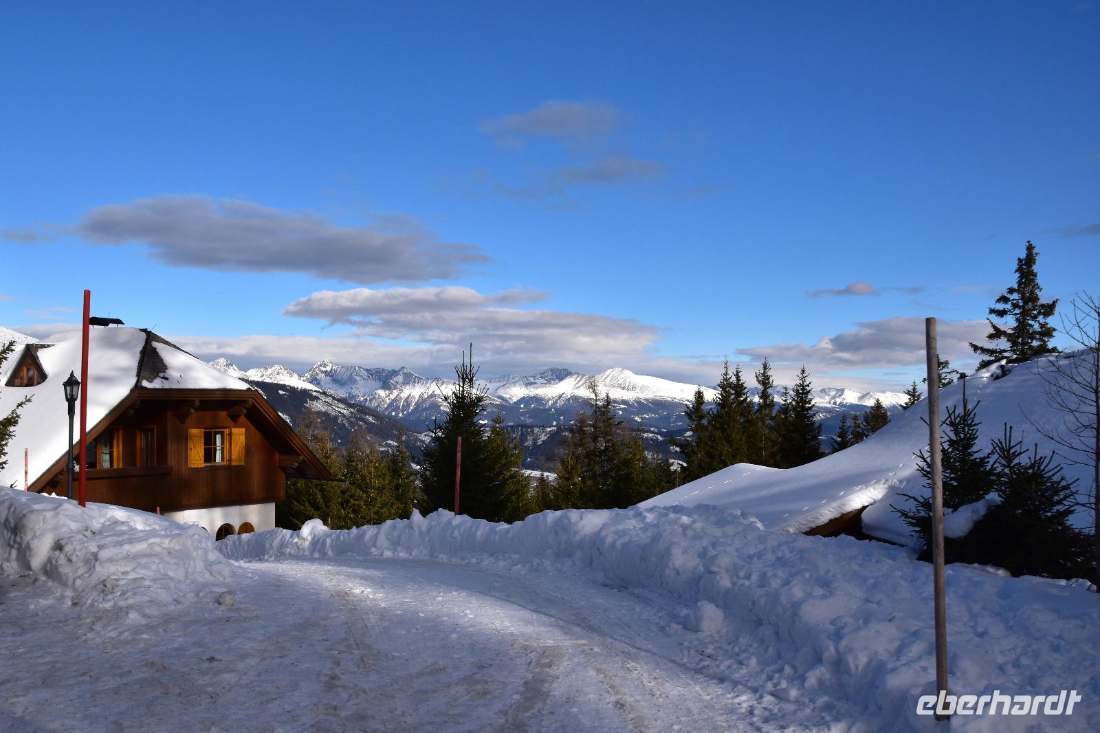 Wieder ein wunderschöner Wintertag. Das Bergpanorama versteckt sich jedoch in den Schneewolken.
