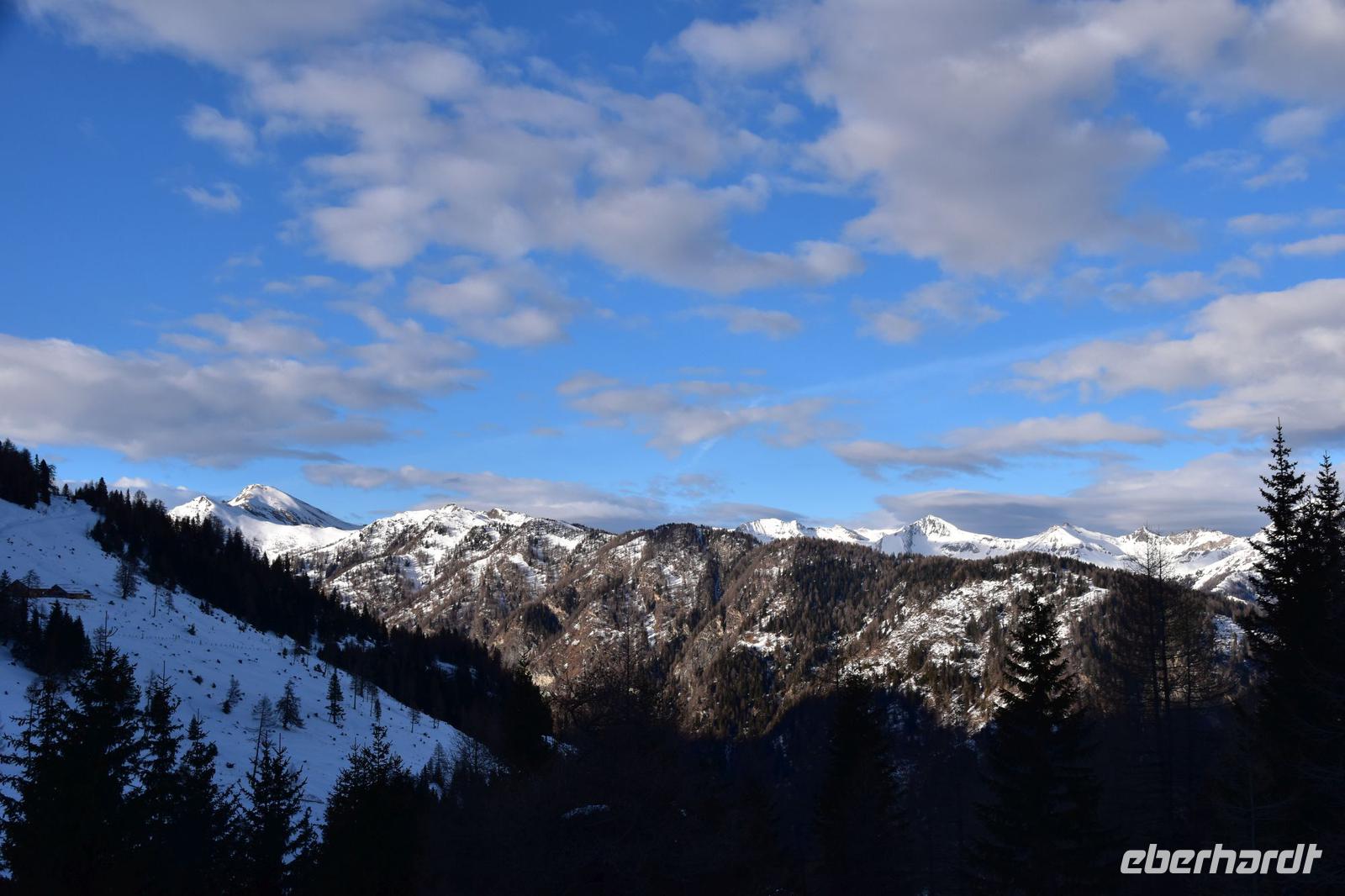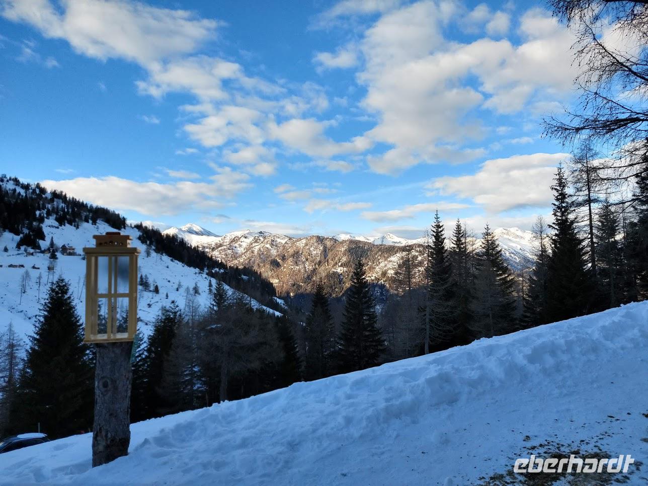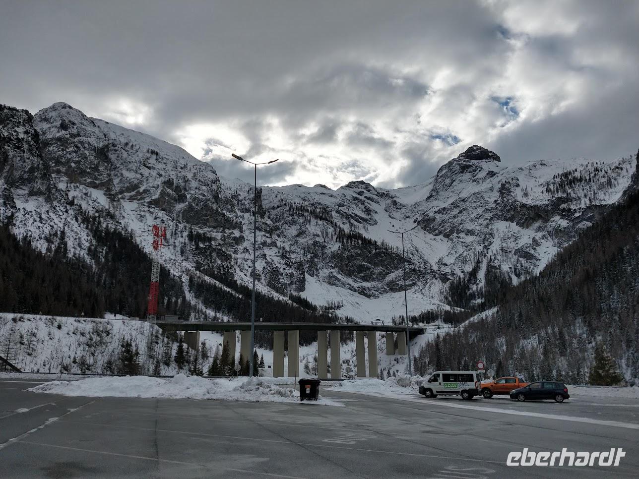 Wir haben Glück mit dem Wetter. Der Morgenhimmel ist klar und die Sonne taucht die schneebedeckten Berge in wunderschönes Licht. So habe ich Gelegenheit den Gästen das Bergpanorama um Abtenau zu erklären. Mit unserem gut vorgeheizten Reisebus fahren wir dann das Lammertal hinab zur Tauernautobahn und diese in Richtung Villach, hin zum Alpenhauptkamm. Nach kurzer Rast an Österreichs schönster Autobahnraststätte, der Tauernalm, geht es im Sonnenschein von St. Michael steil hinauf auf die sonnige Katschberghöhe.