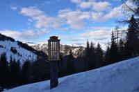 Die Roßfeldhöhenstraße ist unser nächstes Ziel an diesem schönen Neujahrstag. Wir fahren über Bad Dürrenberg hinauf zu diese herrlich angelegten Bergstraße und stoppen an ihrem Scheitelpunkt auf 1600 m Höhe. Den normalerweise wunderschönen Ausblick von hier ins Berchtesgadner und ins Salzburger Land verwehren uns aber leider die Nebelwolken, die leider auch keine Anstalten machen sich aufzulösen. Wir warten, trinken einen Sekt als WOW und genießen die märchenhaft verschneite Landschaft.