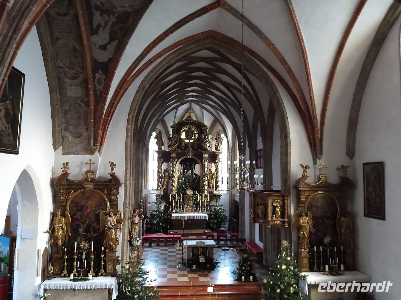 Dann geht es über die Landstraße zurück, wobei wir Kaltenbrunn mit der Kaiserbier-Brauerei , Hallein, Kuchl und Golling passieren. In Abtenau besichtigen wir die schöne Kirche des Ortes, die neben ihren erhaltenen gotischen Spitzbögen und Säulen auch noch schöne alte Fresken aus dem 16. Jahrhundert bereichern.
