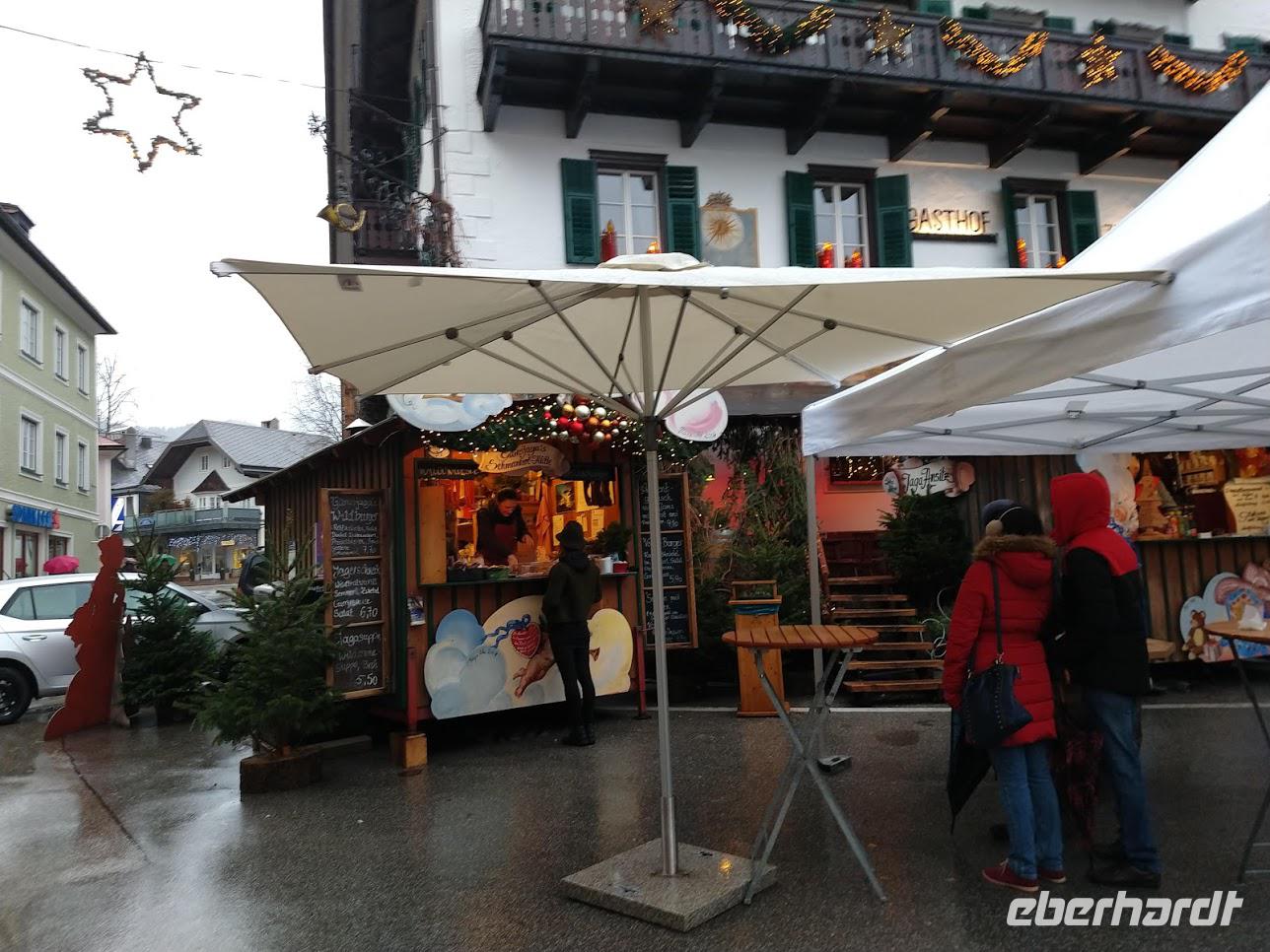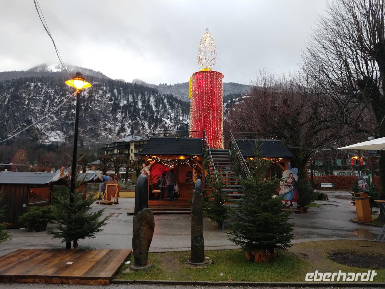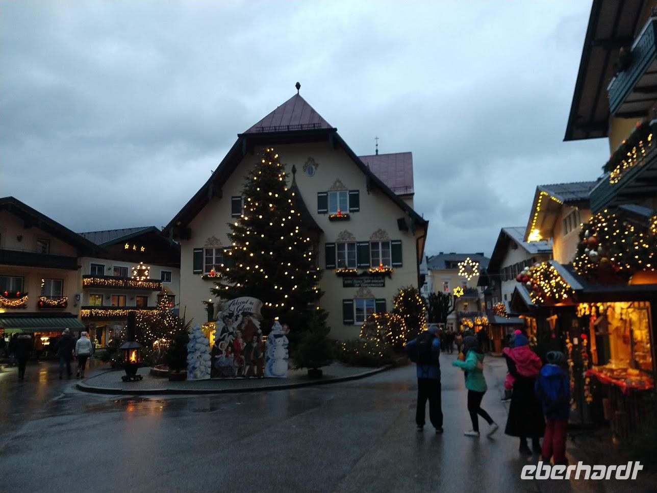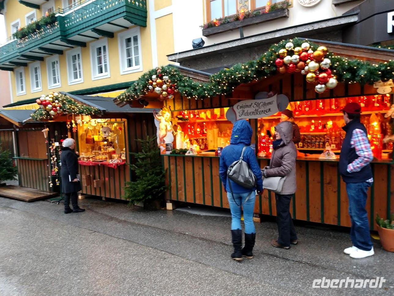 Danach fahren wir weiter, um den See herum nach St. Gilgen. Dieser Ort hat sich, wie jedes Jahr besonders schön geschmückt. Überall, an den Häusern, an den Straßenlaternen findet man die typischen roten Adventskerzen. Und für das leibliche Wohl ist an vielen schön geschmückten Ständen auch gesorgt.