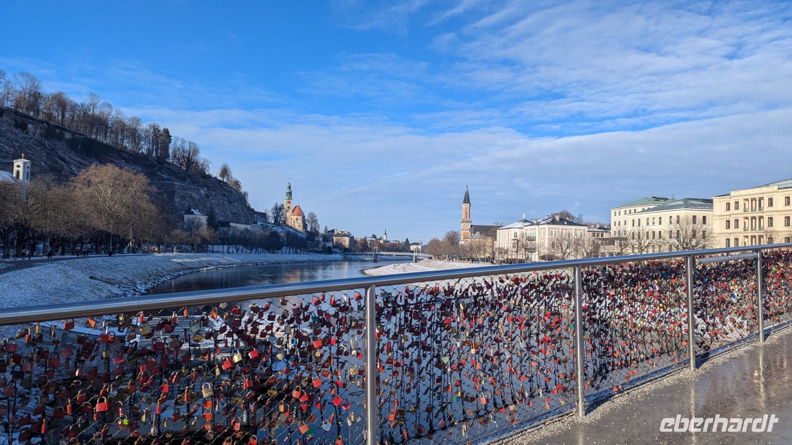 Am Morgen machten wir uns auf den Weg nach Salzburg. Nachdem es am Vortag den ganzen Tag geschneit hatte, wurden wir heute vom Glück verwöhnt: Die Sonne schien, während der Schnee liegen blieb, und die Stadt wie auch Abtenau präsentierten sich im Winterglanz.