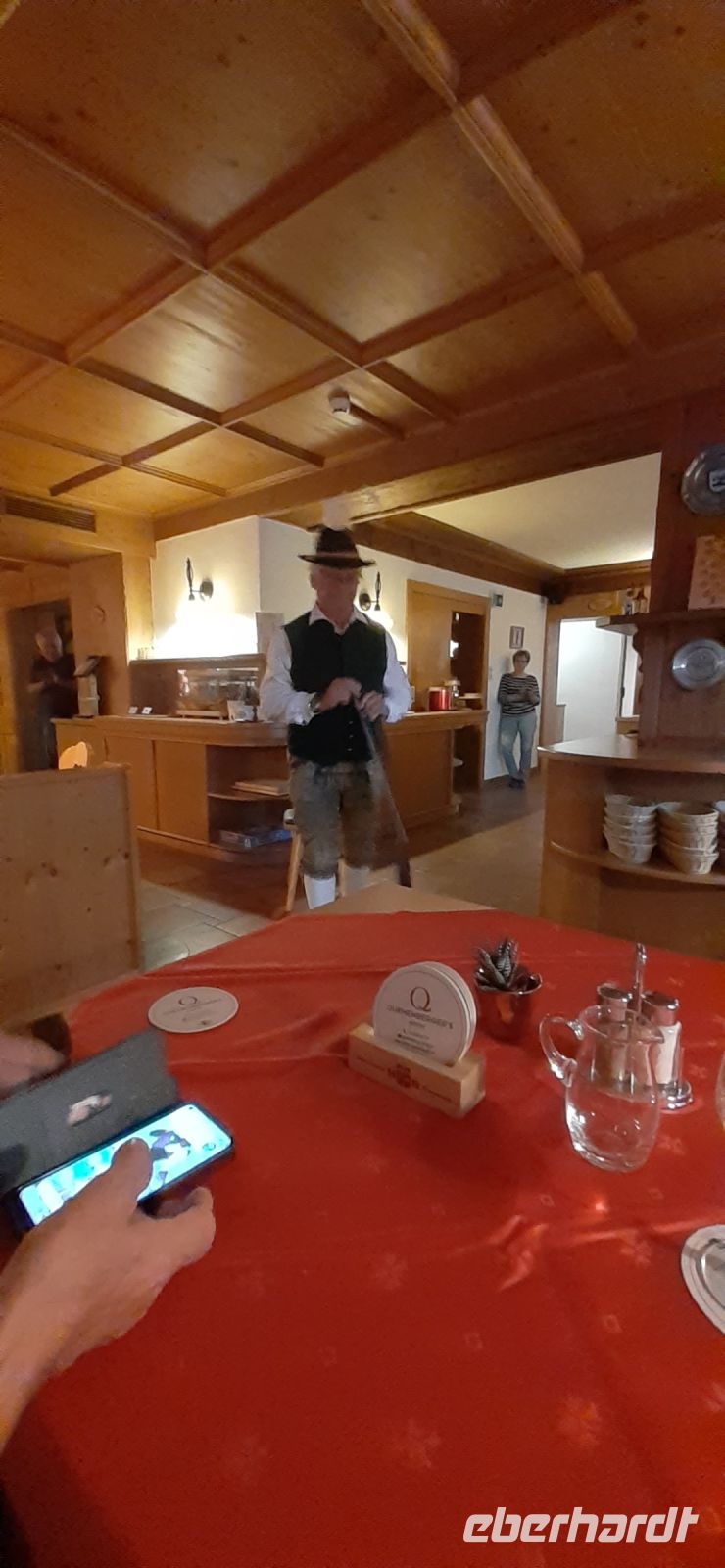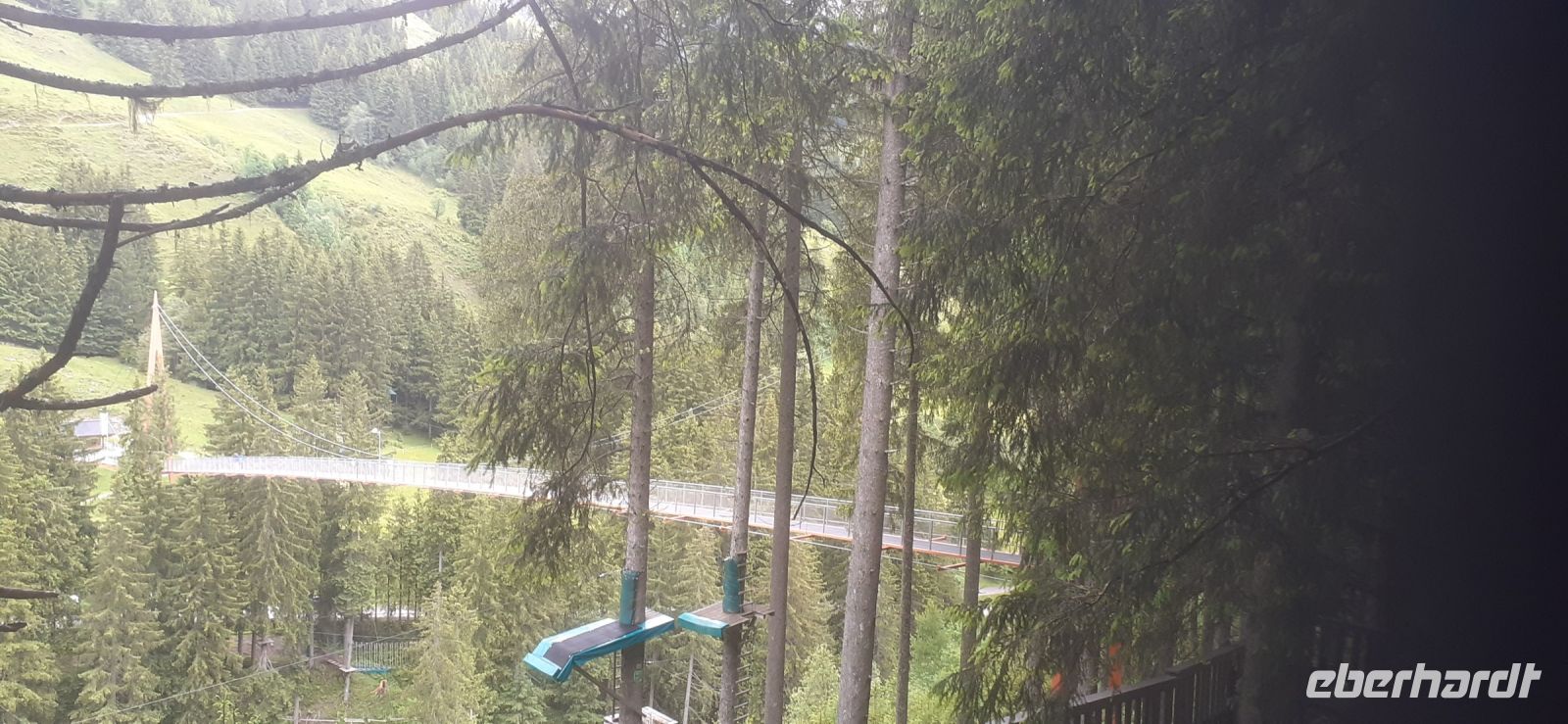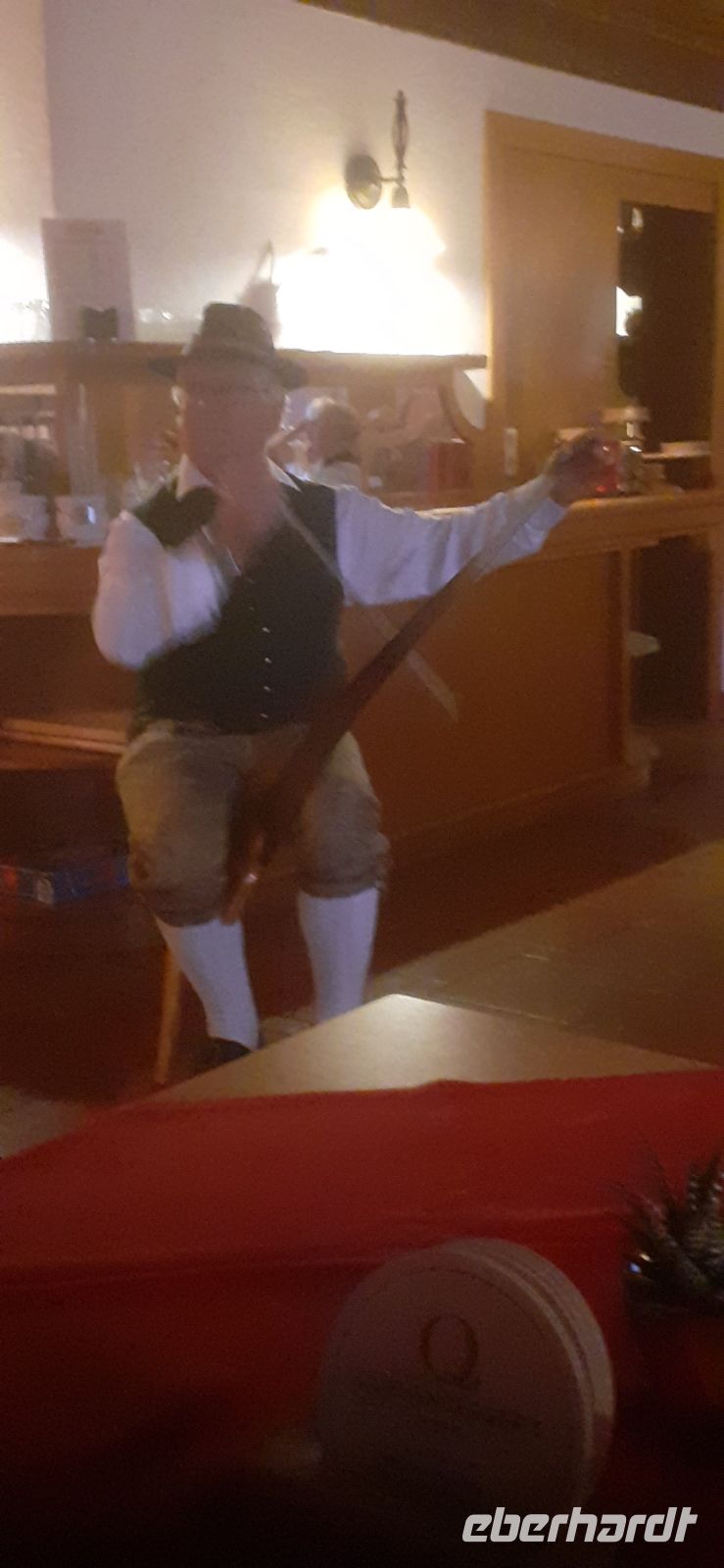 Mit Trudi unternahmen wir einen Rundgang durch den Ort. Auch wenn es ein wenig getröpfelt hat sahen wir ein altes Bauernhaus, die Kirche und die Versteigerungshalle. Auf ging es nach Saalbach Hinterklemm. Wir fuhren bis zum Parkplatz der Talschlussbahn und weiter ging es per Traktor bis zur Lindling Alm. Dort ging es über die "Golden Gate Bridge" der Alpen hinüber zum Baumzipfelweg. Auf dem Weg befinden sich 11 Türme und mehrere Holzbrücken. Wieder zurück an der Alm kehrten wir ein. In einem gemütlichen Stube mit offenen Kamin ließen wir uns die Köstlichkeiten schmecken. Anschließend fuhren wir nach Leogang und besuchten das Gotik Museum. Es gab viele interessante Ausstellungstücke zu betrachten. Am Abend erwartete uns ein Musikabend mit Hubert. Er sorgte für gute Stimmung mit seinem Akkordeon, der singenden Säge und seinem Glockenspiel.