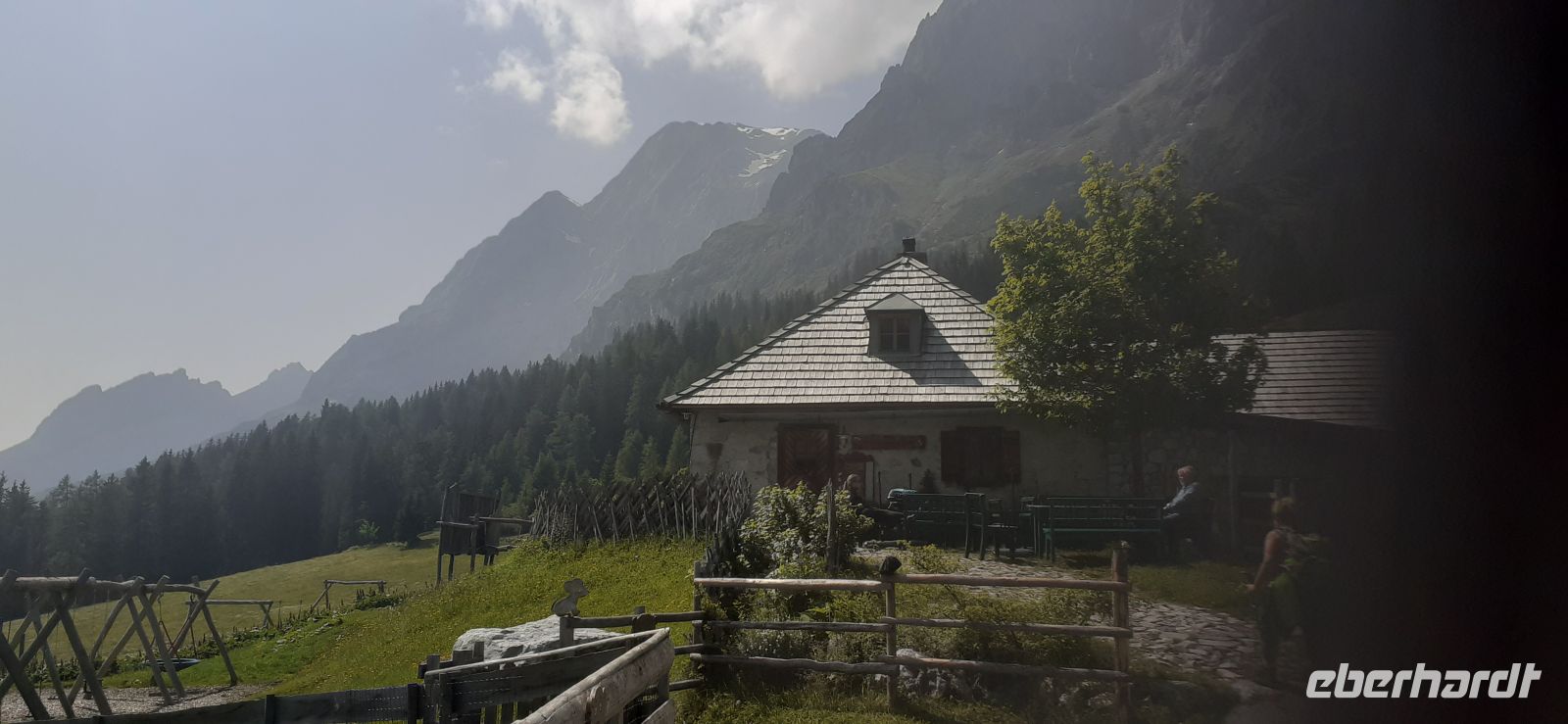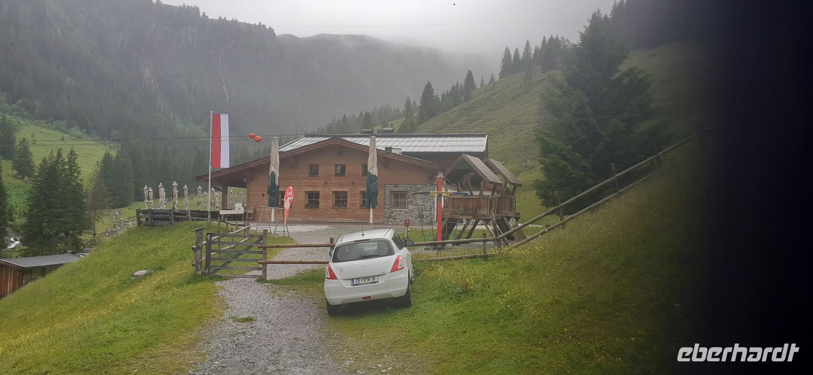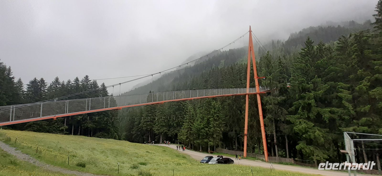 Leider regnete es am Morgen. So beschlossen wir mir mit Trudi eine Rundfahrt Richtung Zell am See und durch Maishofen zu unternehmen. Dabei erhielten wir interessante Informationen über die Region und Maishofen. Langsam hörte es auf zu Regnen. Wir fuhren nach Saalbach Hinterklemm zum Parkplatz der Talschlussbahn. Von dort ging es per Traktor weiter bis zur Lindling Alm. Dort kehrten wir ein. In einer gemütlichen Stube ließen wir uns die Köstlichkeiten schmecken. Über die "Golden Gate Bridge" der Alpen liefen wir hinüber zum Baumzipfelweg. Die 200 Meter lange Brücke überspannt den Talschluss. Nun ging es auf den 1 km langen Baumzipfelweg, dem höchstgelegenen Wipfelwanderweg Europas. Anschließend wanderten einige Gäste wieder zum Parkplatz zurück.