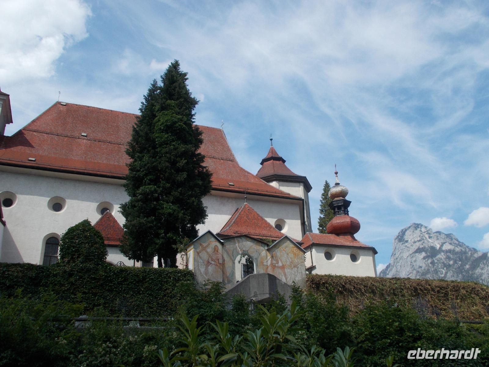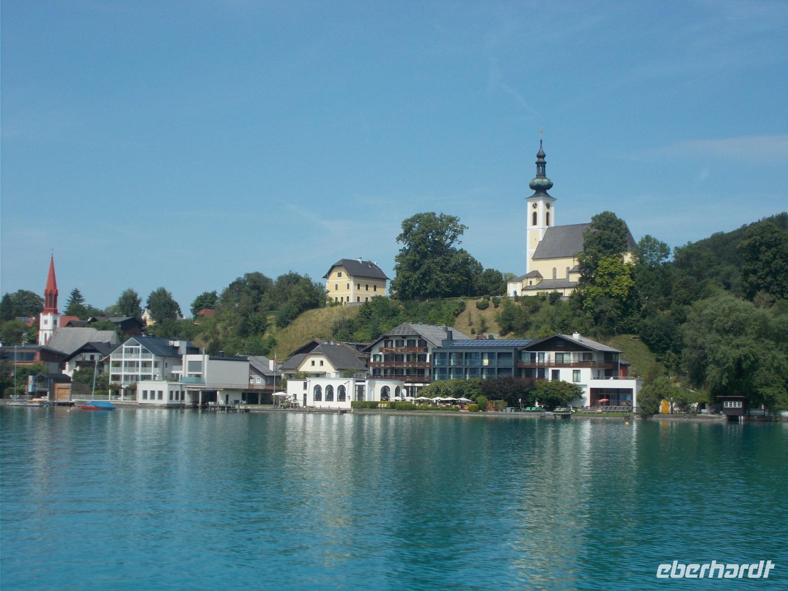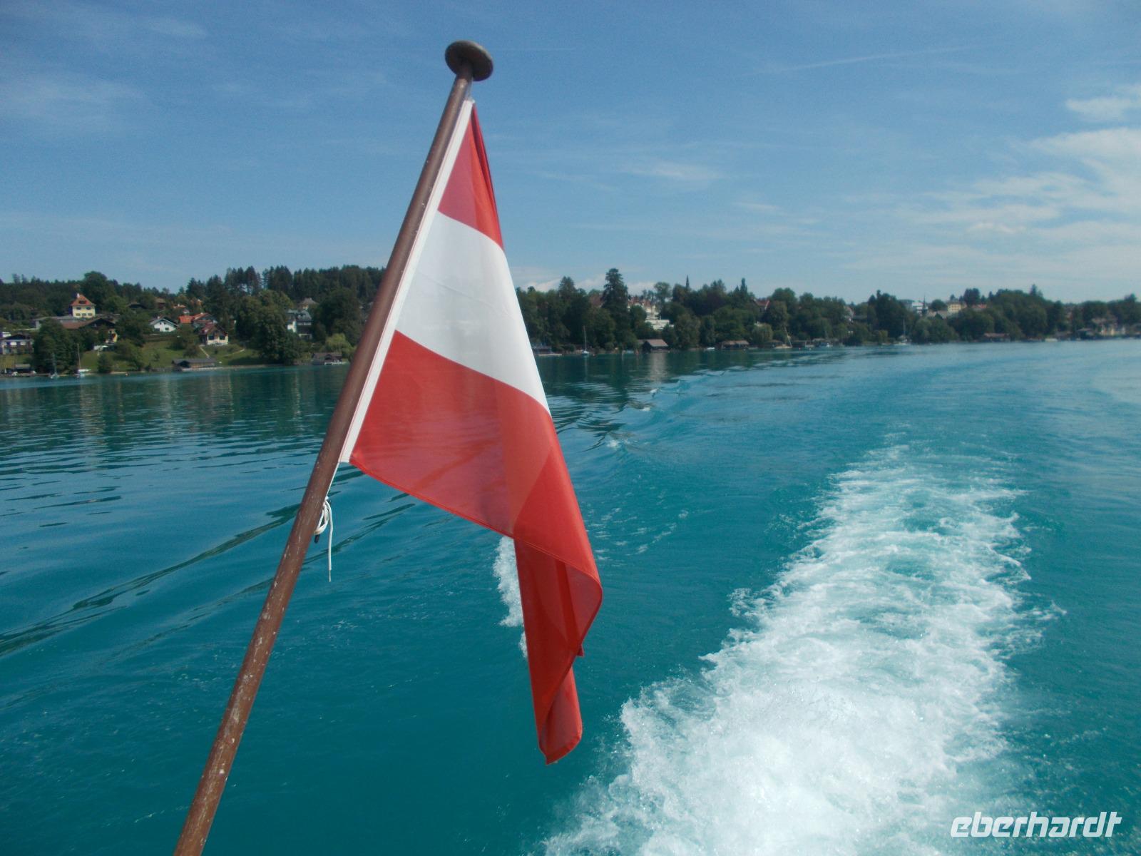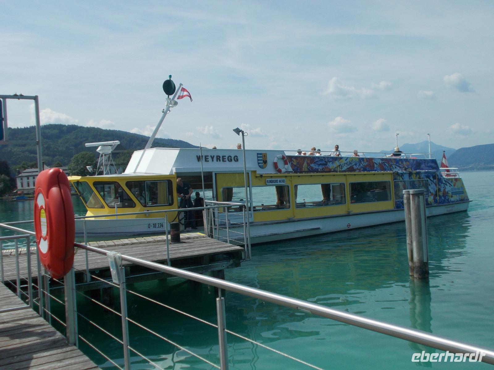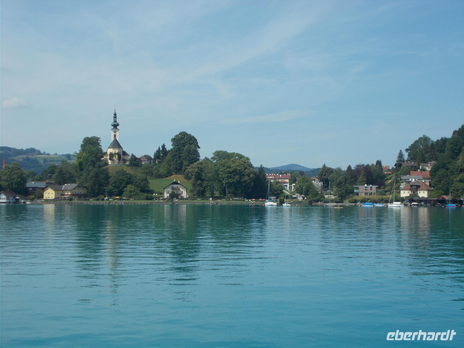 09.16 Uhr - der Chef des Hauses, Roman,legte großen Wert auf die genaue Abfahrtszeit und wir hielten uns daran-waren pünktlich !Zuerst fuhren wir über den Pass Geschütt in das weite Gosautal. Von dort ging es am Hallstätter See entlang, ins Weißenbachtal und am Mondsee vorbei.Nun lag der größte See, des Salzkammergutes und der österreichischen Alpen,im Sonnenschein vor uns.Mit der MS Weyregg,vom Künstler Attersee designt,fuhren wir die Nordtour,ab Seewalchen, übern See.Einmal rund um den Attersee mit dem Bus ,mit dem Boot drüber und von oben,beim Picknick ,noch einmal einen Blick drauf- auf das Karibik ,klare ,blaue Wasser .Unsere Reise führte uns weiter zum Traunsee .Der Hauptort Gmunden zeugt noch heute von der Blüte des Salzhandels.Pünktlich zur vollen Stunde erklang das Keramik-Glockenspiel vom Blumen geschmückten Rathaus.Nach einem Bummel entlang der Seepromenade fuhren wir weiter nach Traunkirchen.Dort besichtigten wir eine ganz besondere Rarität .In der Pfarrkirche befindet sich nämlich die ein zigste Fischerkanzel Österreichs. Das schöne Wetter wollten wir ausnutzen und so machten wir noch einen Abstecher zum Gosausee. Der Gletscher spiegelte sich leider nicht so wie gewünscht im See.Das Wasser kräuselte sich zu sehr.Zurück zum Hotel ging es wieder über den Pass Geschütt. Am Abend wurden wir, auf der Terrasse sitzend ,mit lecker Gegrillten verwöhnt.