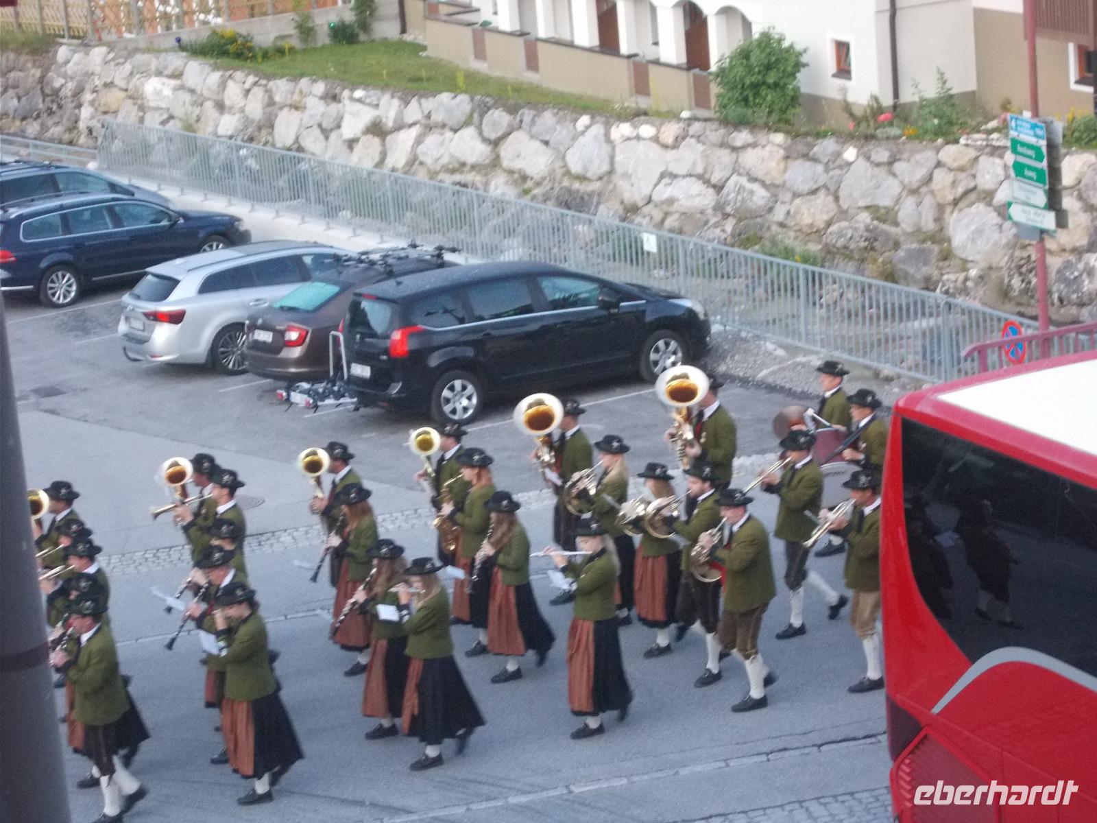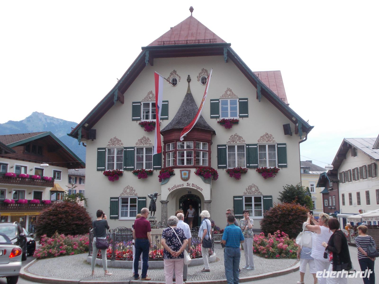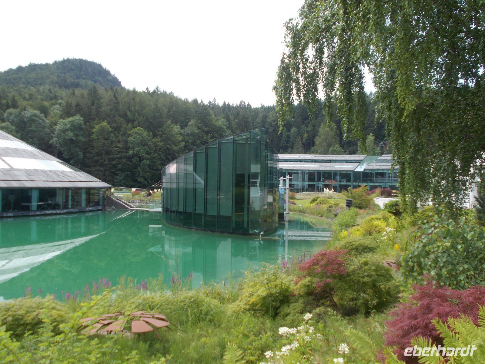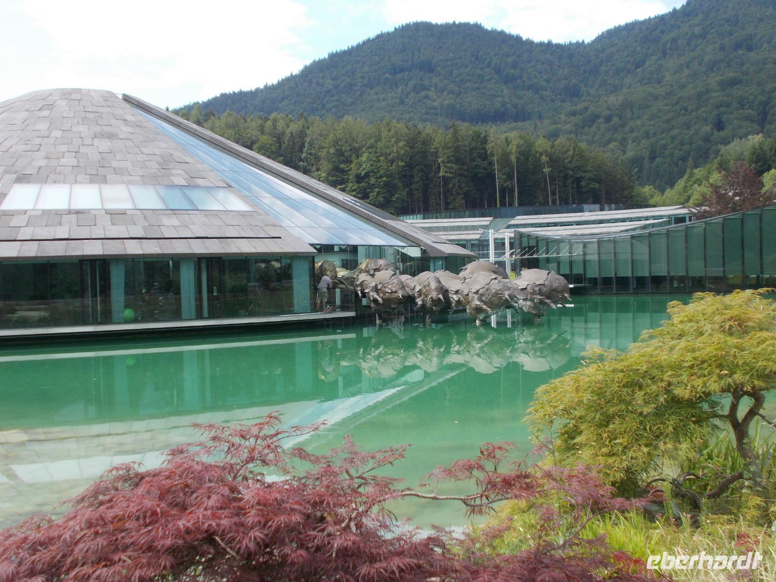 Im Salzkammergut,ja da Kammer gut.....eine Rundfahrt starten.So fuhren wir an Golling und Hallein vorbei,um an den Fuschlsee ,dem Quartier der Schönen und Reichen,zu gelangen.An der fantastisch gelegenen Red Bull Zentrale zückten wir die Fotoapparate und mussten diese im Bild festhalten.Nach weiteren Fahrtminuten hatten wir einen prächtigen Blick zum Wolfgangsee. In St. Gilgen ,dem Hauptort des salzburgischen Salzkammergutes,spazierten wir bis zum Ufer des Sees,vorbei am Geburtshaus von Mozarts Mutter.Anschließend genehmigten wir uns ein Würstel-Picknick in freier Natur.Weitere führte uns der Weg in den mondänen Kurort nach Bad Ischl.Hier wandelten wir auf Kaisers Spuren .Ein Besuch der Kaiserlichen Sommerresidenz war ein Muss.Hier hörten wir die Geschichten ,von Freud und Leid,wovon das Kaiserhaus auch nicht verschont wurde.Ganz Bad Ischl ist ein Tummelplatz der Kurgäste und Touristen mit vielen kleinen Einkehrmöglichkeiten.Für uns musste es aber das Traditionscafe Zauner,mit seinen vielen köstlichen Mehlspeisen, sein.Zurück zum Bus begaben wir uns auf Heimatkurs,entlang des Hallstätter Sees,zu unserem Hotel.In unserem Ferienort Russbach wird am Abend zum Sommerkonzert gebeten.Nach dem Abendessen,in der Weinstube,zog es uns in den Wasserpark um uns an den Klängen des Orchesters zu erfreuen.