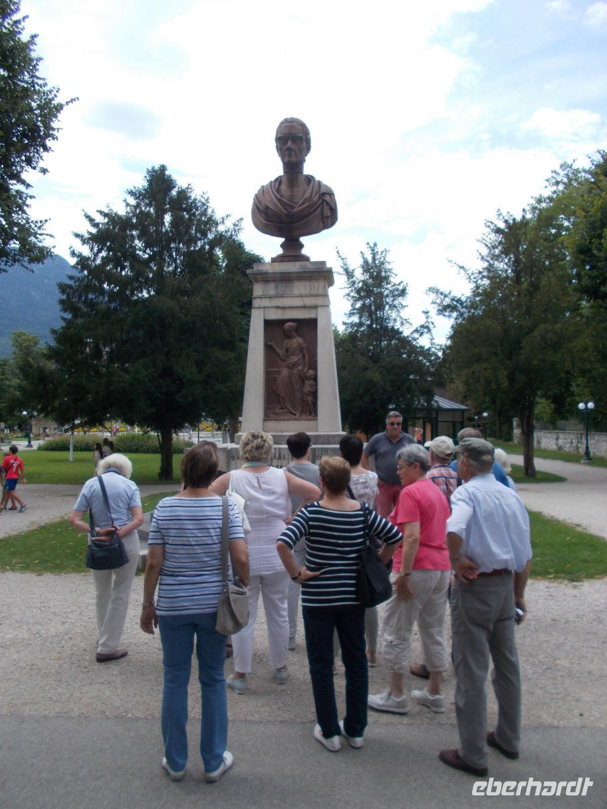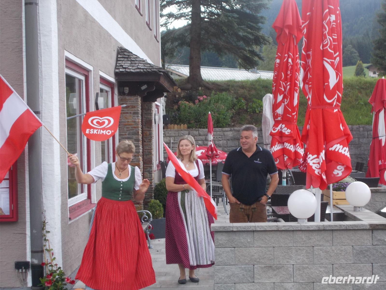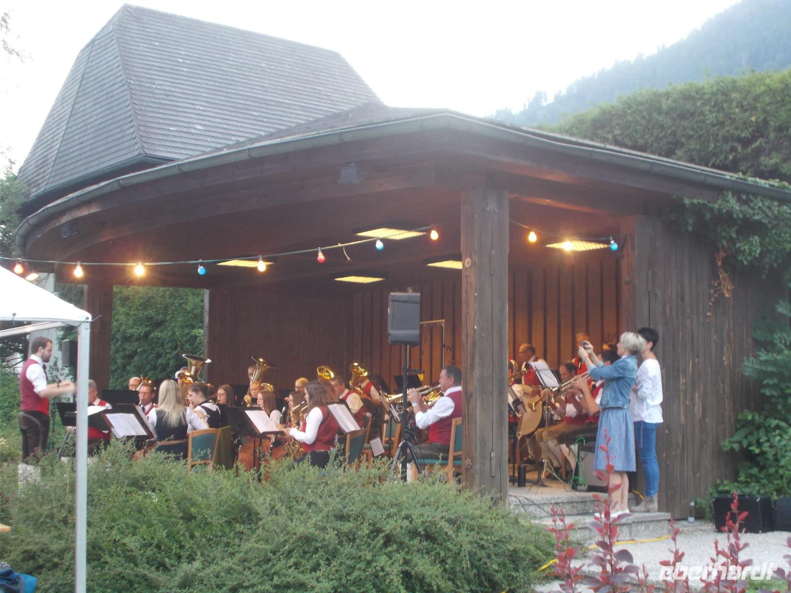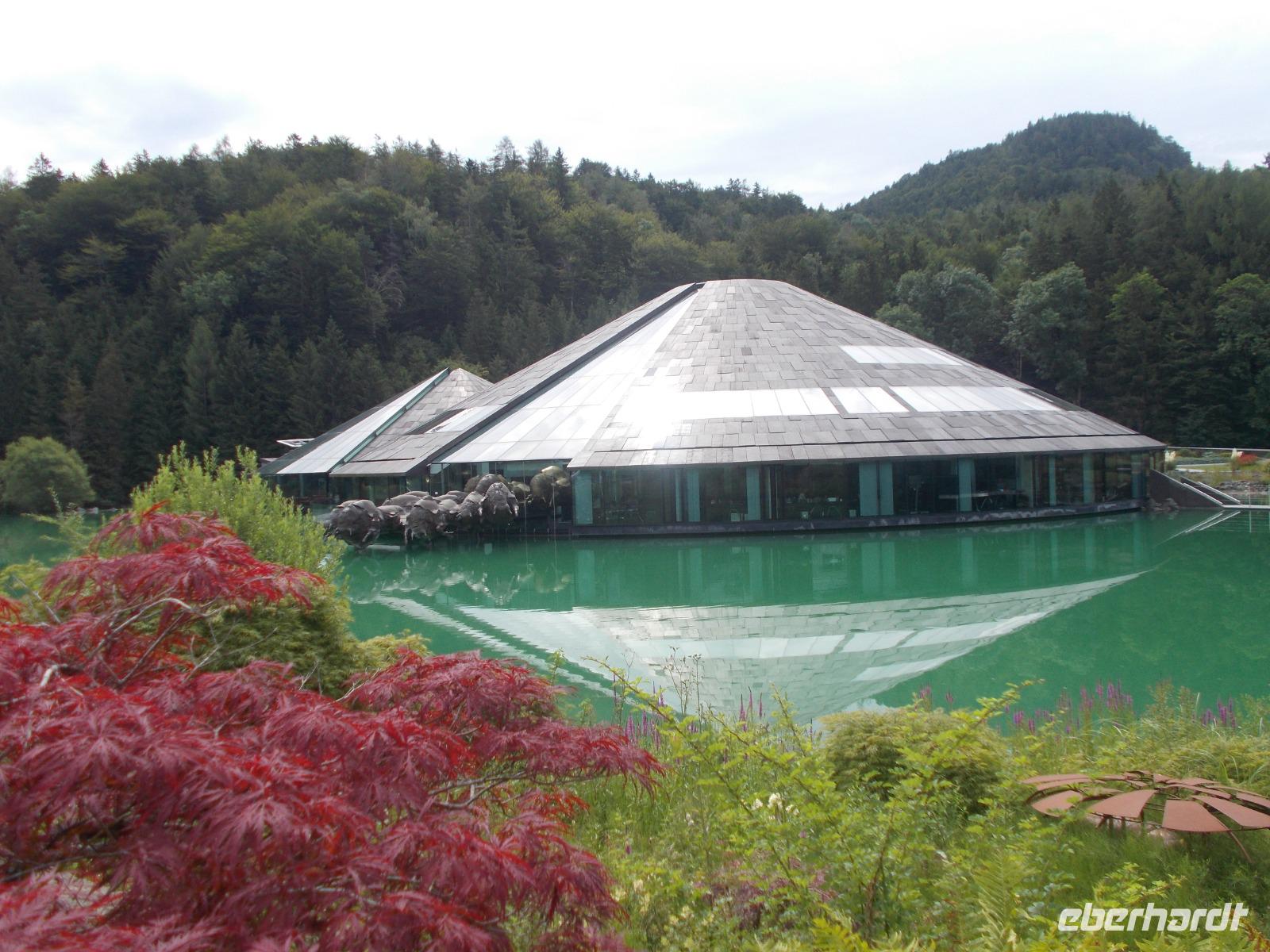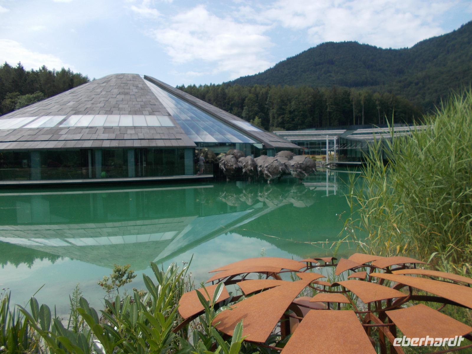 Im Salzkammergut,ja da Kammer gut.....eine Rundfahrt starten.So fuhren wir an Golling und Hallein vorbei,um an den Fuschlsee ,dem Quartier der Schönen und Reichen,zu gelangen.An der fantastisch gelegenen Red Bull Zentrale zückten wir die Fotoapparate und mussten diese im Bild festhalten.Nach weiteren Fahrtminuten hatten wir einen prächtigen Blick zum Wolfgangsee. In St. Gilgen ,dem Hauptort des salzburgischen Salzkammergutes,spazierten wir bis zum Ufer des Sees,vorbei am Geburtshaus von Mozarts Mutter.Anschließend genehmigten wir uns ein Würstel-Picknick in freier Natur.Weitere führte uns der Weg in den mondänen Kurort nach Bad Ischl.Hier wandelten wir auf Kaisers Spuren .Ein Besuch der Kaiserlichen Sommerresidenz war ein Muss.Hier hörten wir die Geschichten ,von Freud und Leid,wovon das Kaiserhaus auch nicht verschont wurde.Ganz Bad Ischl ist ein Tummelplatz der Kurgäste und Touristen mit vielen kleinen Einkehrmöglichkeiten.Für uns musste es aber das Traditionscafe Zauner,mit seinen vielen köstlichen Mehlspeisen, sein.Zurück zum Bus begaben wir uns auf Heimatkurs,entlang des Hallstätter Sees,zu unserem Hotel.In unserem Ferienort Russbach wird am Abend zum Sommerkonzert gebeten.Nach dem Abendessen,in der Weinstube,zog es uns in den Wasserpark um uns an den Klängen des Orchesters zu erfreuen.
