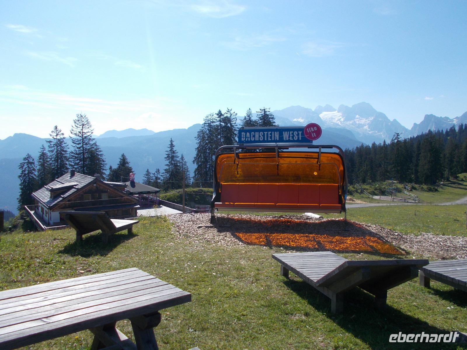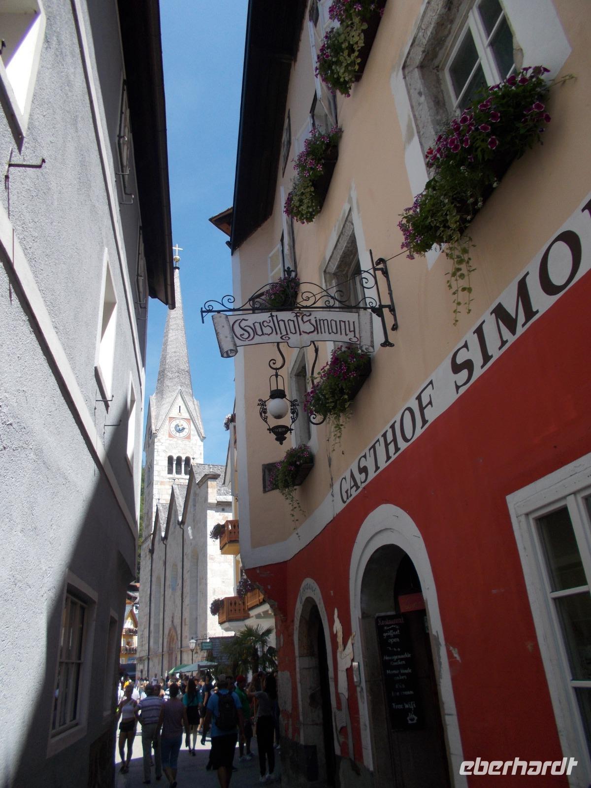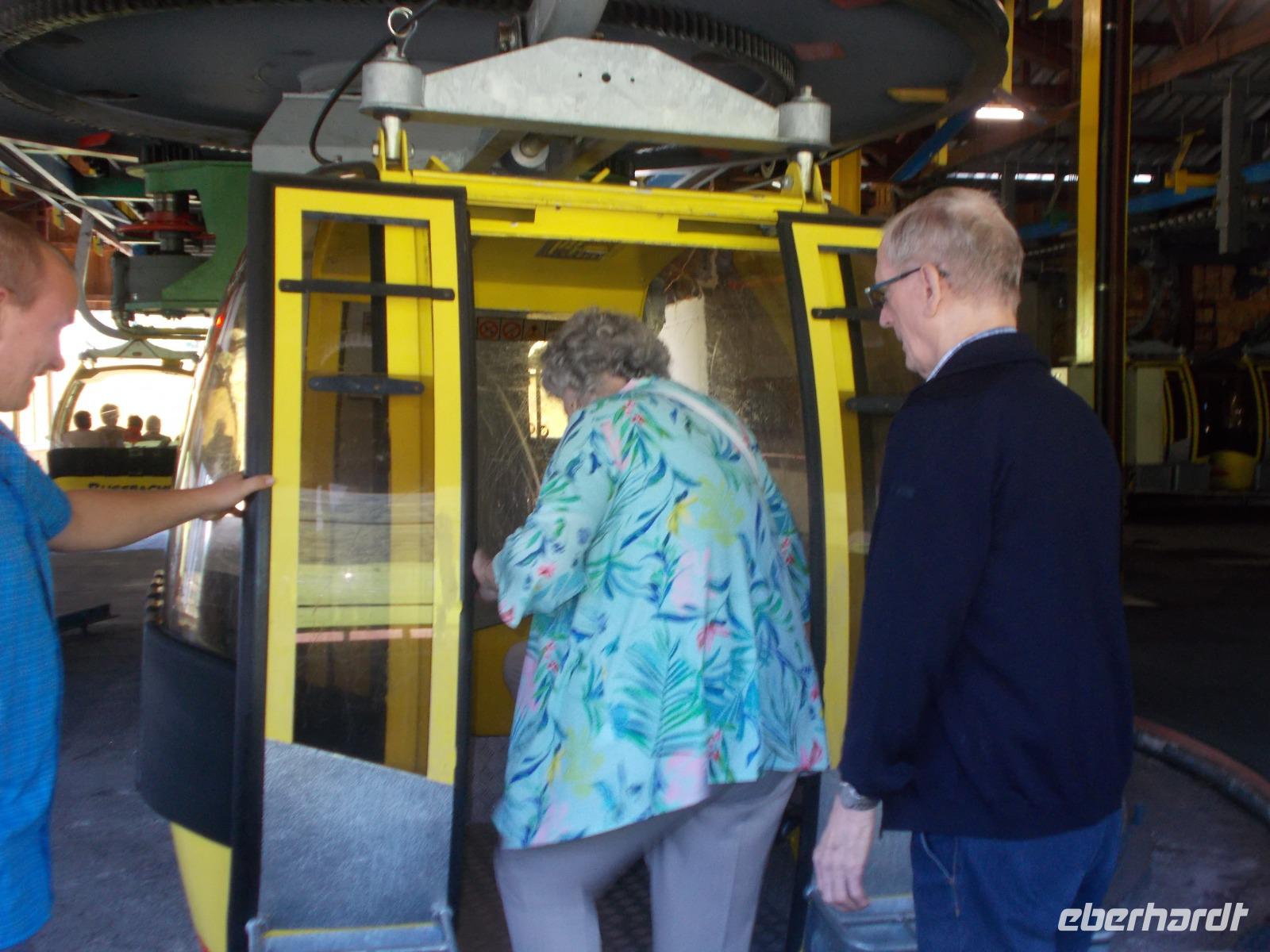 Kennen Sie noch den Slogan :"Sonne lacht - Blende 8".Leider unser letzter Ferientag,aber Roman lud uns zur Hornbahn Bergfahrt ein.Er und Roy hatten ihr Lieblingsspielzeug ,eine Drohne,mitgebracht und ließen diese fleißig fliegen.Oben am Hornberg (1450m)angelangt,bot sich uns ein wunderbarer Blick in die umliegende Bergwelt.Nach einer kleinen Wanderung und Verschnaufpause ging es wieder Berg ab.Am letzten Tag ,unsere Reise, stand noch Hallstatt auf unserm Plan.Wir waren sehr gespannt.Der „Buschfunk"meldete uns :100 asiatische Busse an einem Tag!Ja,wir fielen als Touristen direkt auf.Kein Wunder,dieser tolle Ort mit seiner langen Vergangenheit,fand in China viel Interesse .Kurzer Hand wurde Hallstatt......in der Provinz...mit See und allem was dazu gehört nachgebaut.Alexander Humbold war schon der Meinung dass es „der schönsteSeeort der Welt „wäre und so kommen die Asiaten alle auf „Besuch".Wir fuhren noch einmal hinaus zum Gosausee und genossen die Ruhe und die einmalige Landschaft zu Füßen des Dachstein Massivs.Im Hotel angekommen wurden wir, von der Wirtsfamilie, mit Kaffee und Sissi Torte,nach dem Rezept des Opas,verwöhnt.Es schmeckte wieder KÖSTLICH.Nach dem Abendessen überraschte uns Roman mit einem Film,wozu Roy viel Material mit beigesteuert hatte.So konnten wir diese wunderschöne Woche,im Salzburger Land, noch einmal auf der Leinwand genießen.