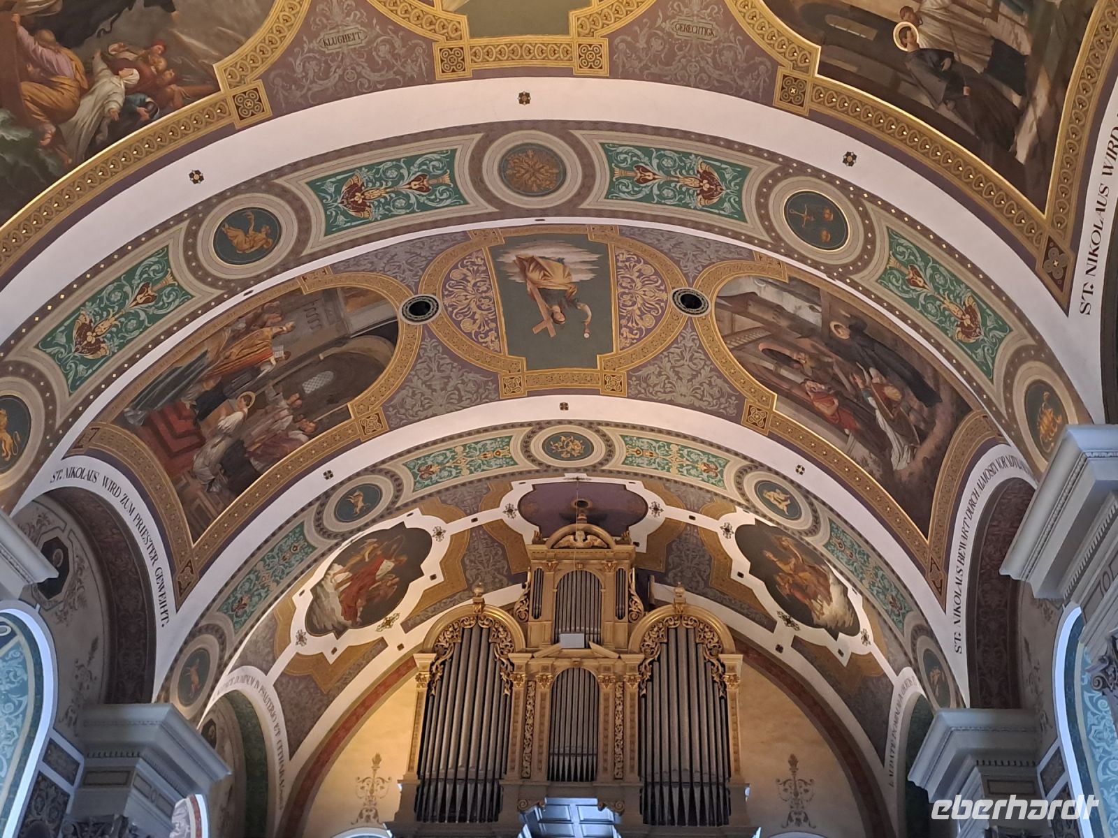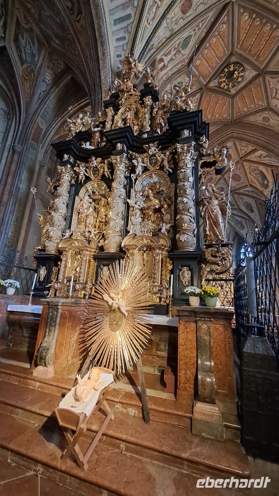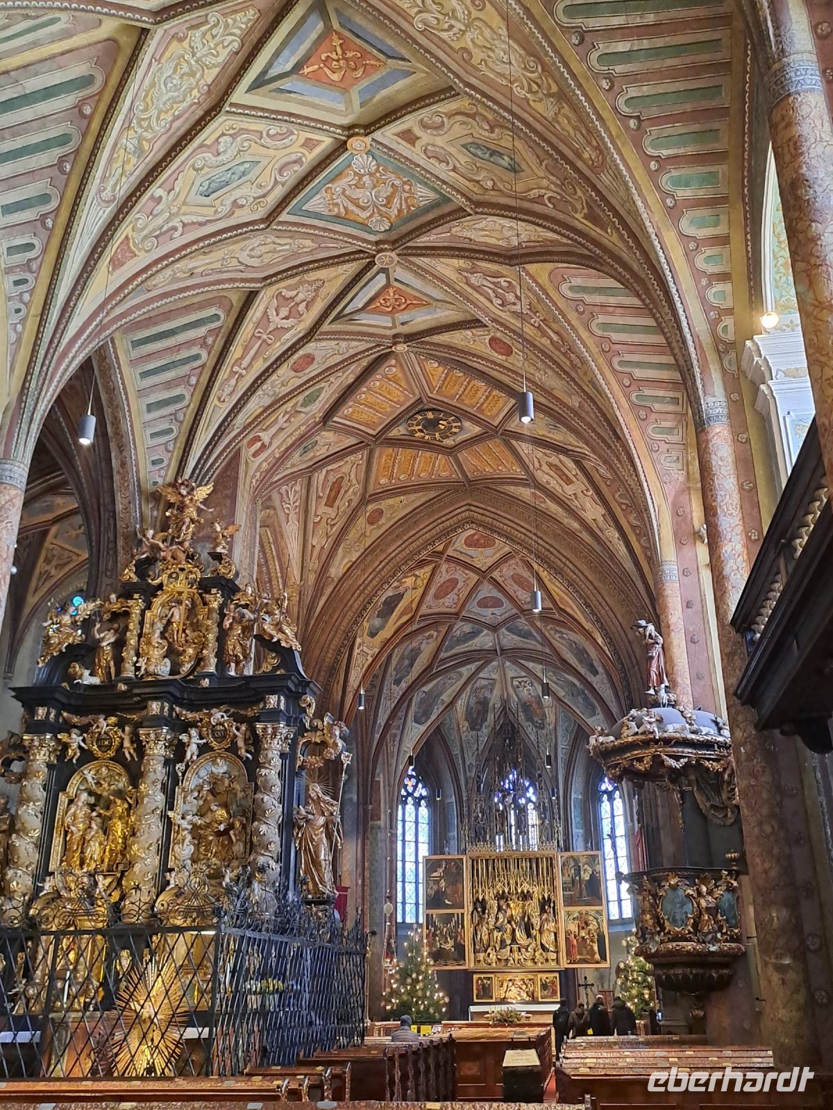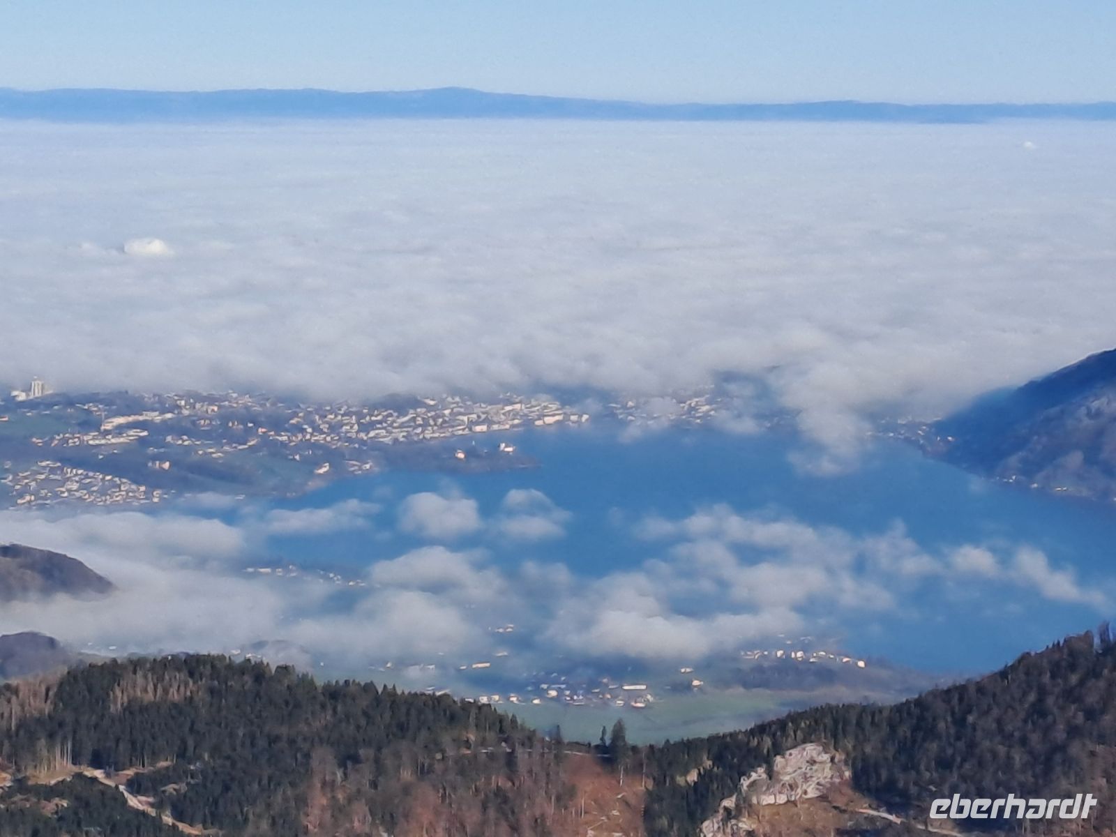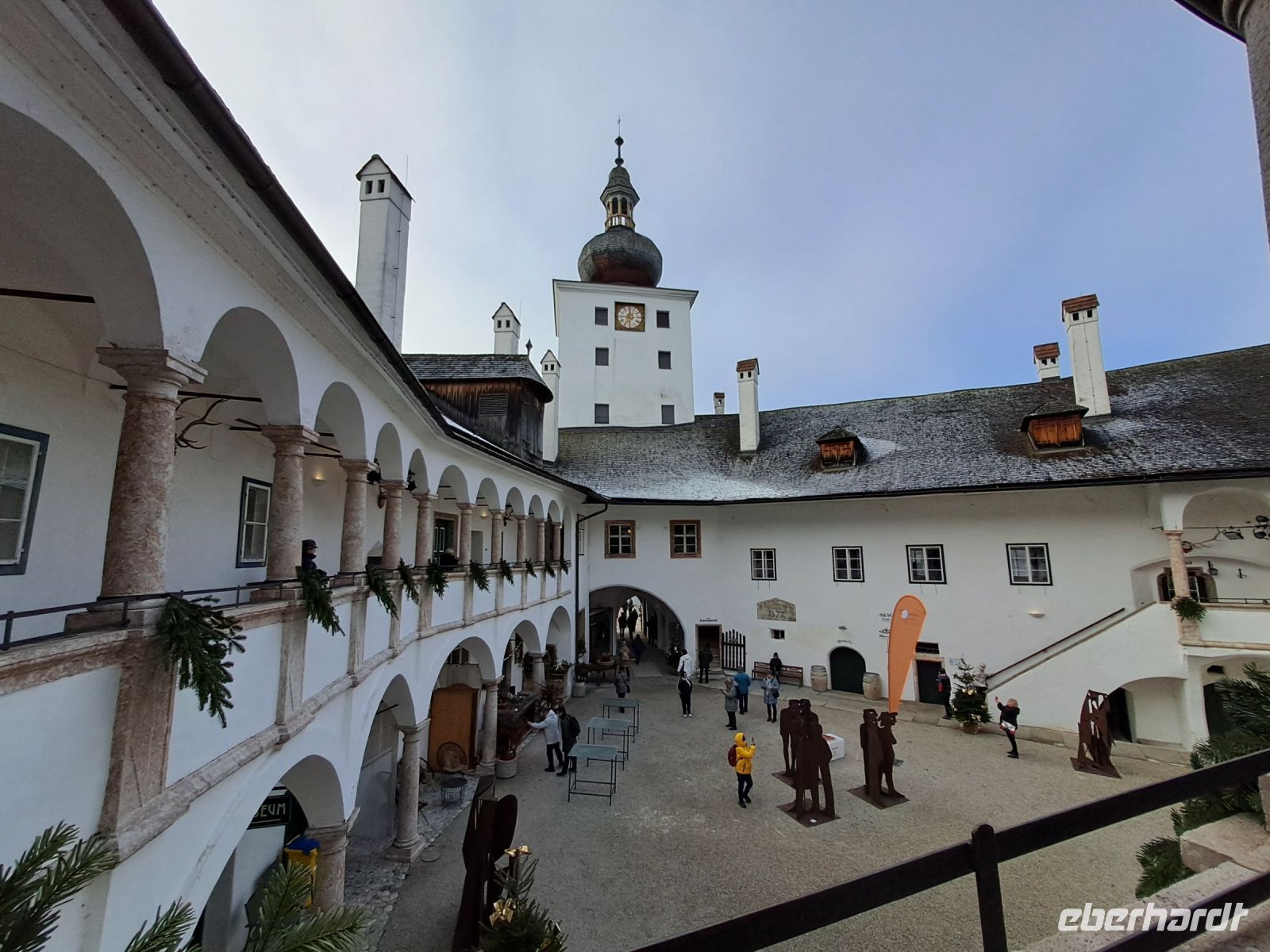 Nach einer ruhigen Nacht und einem guten Frühstück starteten wir um 09:00 Uhr vom Hotel. Der örtliche Reiseleiter Herr Fellmer, begleitete uns zur Traunsee-Rundfahrt mit dem Bus und auf dem Stadtrundgang durch Traunkirchen, Schloß Orth und Gmunden. Per Bus fuhren wir am See entlang, durch Altmünster bis nach Traunkirchen. Dort besuchten wir die Klosterkirche mit ihrem hochkarätigen kleinen Friedhof und einem Blick auf den Traunsee. Nach der Besichtigung fuhren wir über Altmünster mit vielen Informationen über den See und angrenzende Orte zum bekannten Schloss Orth, den Drehort der damaligen gleichnamigen Fernsehserie. Wir konnten auch die Fragen klären, warum das mal mit h und mal ohne h geschrieben wird ?? Das Schloss selbst ist über eine 130 m lange Holzbrücke zu erreichen und sehr sehenswert, der Fußweg vom Busparkplatz über die Holzbrücke zum Schloss nimmt nur wenige gemütliche Minuten in Anspruch. Die Terrasse am See sowie der Trausaal waren leider geschlossen - welch Wortspiel: sich am Traunsee trauen lassen ! Über die Empore konnten wir den Innenhof gut fotografieren und es waren auch noch nicht zu viele Gäste hier. Dennoch hatten wir gute Sicht und einen schönen Ausblick auf den See und den Uferbereich von Gmunden. Mit dem Bus fuhren wir in den oberen Bereich von Gmunden, an der Pfarrkirche stiegen wir aus dem Bus und konnten überwiegend bergab durch das hübsche Örtchen laufen. Herr Fellmer zeigte uns neben Stadtpfarrkirche, Salzträgerdenkmal und Rathaus u. a. einen wunderschönen Arkaden-Innenhof, das Haas Haus, welchen man als normaler Tourist wohl nie betreten hätte. Es war dann schon 12.30 Uhr zum Mittag, als wir uns über Altmünster auf den Weg zum Bergasthof Urzn machten – natürlich mit dem Bus und über eine beeindruckende Serpentinenstraße. Auf dem Gipfel in knapp 900 m Höhe konnte jeder zu Mittag essen, einen kleinen Spaziergang machen und die grandiose Aussicht über die Bergwelt und den Traunsee genießen. Ein Wattemee(h)r lag über dem See. Gegen 13:30 Uhr ging es weiter nach St. Wolfgang zum Silvestermarkt. Das bekannte Örtchen am Wolfgangsee bot uns ein kleines Hüttenangebot mit wunderschönem Ambiente, kulinarischen Schmankerln, heißem Glühwein oder Punsch. Da die Sonne schien, hatten wir auch einen tollen Blick auf das Weiße Rössl und über den Wolfgangsee und die umliegenden Berge. Der Besuch der Kirche mit den Altären von Thomas Schwanthaler und Micheal Pachen durfte nicht fehlen. Die Stunde war viel zu schnell um, als es dann weiter nach St. Gilgen ging. Vom Busparkplatz an der Talstation der Zwölferhornseilbahn aus sind es in St.Gilgen dann auch nur 150 Meter zum Adventmarkt. Außerdem schmeckte uns der Preiselbeerglühwein am Stand sehr gut – nicht so süß und mal was anderes! Insgesamt war der Tag sehr sehenswert und informativ, mancher Programmpunkt war leider zu kurz an Zeit ! Im Bus gab es von St.Gilgen noch etwas Musik vom Wolfgangssee. Bei unserem im Hotel spielte dann ein Bläserquartett - nur für uns - den Brauch des „Wegblasens von allem Schlechten im letzten Jahr“. Das hat uns sehr gut gefallen!