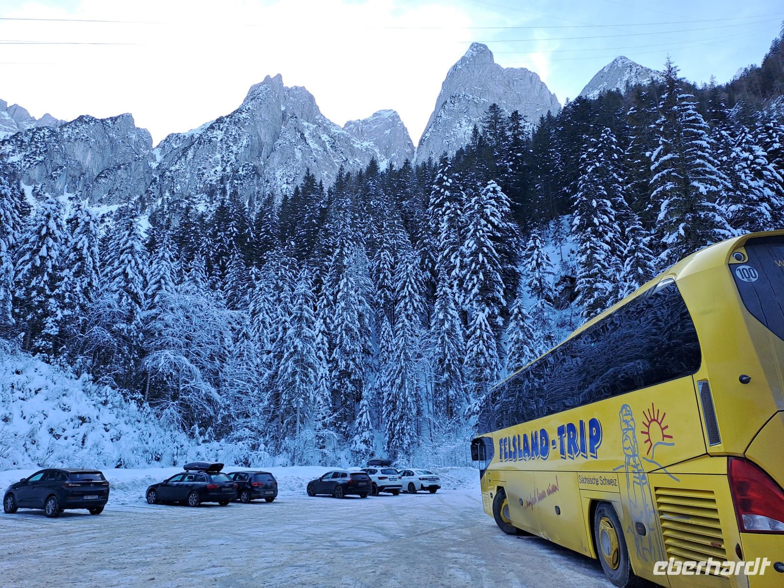 An diesem Morgen konnten wir nicht länger schlafen. Bereits 9,00 Uhr starteten wir unsere Fahrt nach Hallstatt am gleichnamigen See. Wir hatten dank Eberhardt - Travel eine gebuchte Einreise zum Ein-und Ausstieg am Parkplatz. Bei kühlen Temperaturen konnte jeder einen Spaziergang durch den Ort unternehmen. Einige Reisegäste nutzten auch die Auffahrt mit der Standseilbahn (22 € p.P.) auf den Rudolfsturm. Ein grandioser Ausblick auf das an norwegische Fjorde erinnernde Panorama des Hallstätter Sees. Der Skywalk bot die Ideale Aussicht und entsprechende Fotoaufnahmen. Zur Mittagszeit war Hallstatt in der Sonne aber auch von vielen Asiatischen Reisegruppen überfüllt. 12 Uhr war die Weiterfahrt nach Gosau. Bei herlichsten Wetter und Panorama fuhren wir durch das Tal und in die Bergnische zum Gosausee. Für das Mittag sorgte an diesen Tag Busfahrer und Reiseleiterin mit Würstchen Auswahl und Glühwein. Als wir gegen Mittag am Vorderen Gosausee ankamen, schien weiter die Sonne und wir konnten einen kleinen Spaziergang starten. Wenn man den Weg um den Vorderen Gosausee nach rechts beginnt, hat man den berühmten Dachstein immer sehr gut im Blick. Auch hier waren winterfeste Schuhe von Vorteil, schließlich befanden wir uns auf etwa 900m Höhe. Die Wiederspiegelung des Dachsteines war teilweise im Vorderen Gosausee zu sehen. Es gab sehr wenig Wasser und eine leichte Eisdecke auf den See, aber dafür besondere Schneekristalle. Nachdem die schönsten Fotos im „Kasten“ waren, ging es weiter nach Bad Ischl. Der Bus brachte uns bis zum Parkplatz am Aufgang zur Kaiservilla. Wir konnten diese und den Kaiserpark besichtigen und einen Spaziergang durch Bad Ischl an der Espanade entlang der Traun genießen oder das legendäre Cafe Zauner ( überfüllt) besuchen. Um 15:45 Uhr trafen wir uns dann vor dem ebenfalls im Zentrum von Bad Ischl gelegenen Kongress- und Theaterhaus, wo um 16:30 ein grandioses Neujahrskonzert mit dem Orchester - Sinfonietta da Camera Salzburg und Solistin Katharina Gudmundsson (Sopran), Dirigent Peter Wesenauer startete. Die einzelnen Stücke aus der klassischen Musikwelt erinnerten an die Sommerfrische und wurden mit Leichtigkeit und Humor moderiert. Der erste Teil wurde anläßlich Johann Strauß Sohn zum 200. Geburtstagsjahr 2025 begonnen. Nach der Pause erwartete uns dann noch ein gemischtes musikalisches Programm von Franz Lehar, Carl Michael Ziehrer, Emmerich Kalmann und reichlich Zugaben. Leider war das Programm damit bis 19.45 Uhr und der Rückweg zum Bus zum Parkplatz . Erst gegen 20 Uhr konnten wir diesen Neujahrstag in Bad Ischl verlassen. Der Reisebus benötigte noch 45 min bis zum Hotel am Traunsee, somit war das Abendessen erst 21 Uhr an diesen Tag möglich. Einige Gäste waren darüber verärgert, zur Länge des Konzertes ( fast 3 Std.) aber vor allen betreffend der Kleiderordnung. Es gab aber keine Vorgaben zu dieser Veranstaltung auf besondere Kleiderordnung. Es waren auch noch weiter 5 Busgruppen im Saal. Es war ein großartiger Ausflug mit Hallstatt und Gosau aber durch das Konzert etwas betrübt - aber ein einmaliges Erlebnis. Auf der Heimfahrt freuten wir uns auf unser spätes Abendmenü im Hotel.