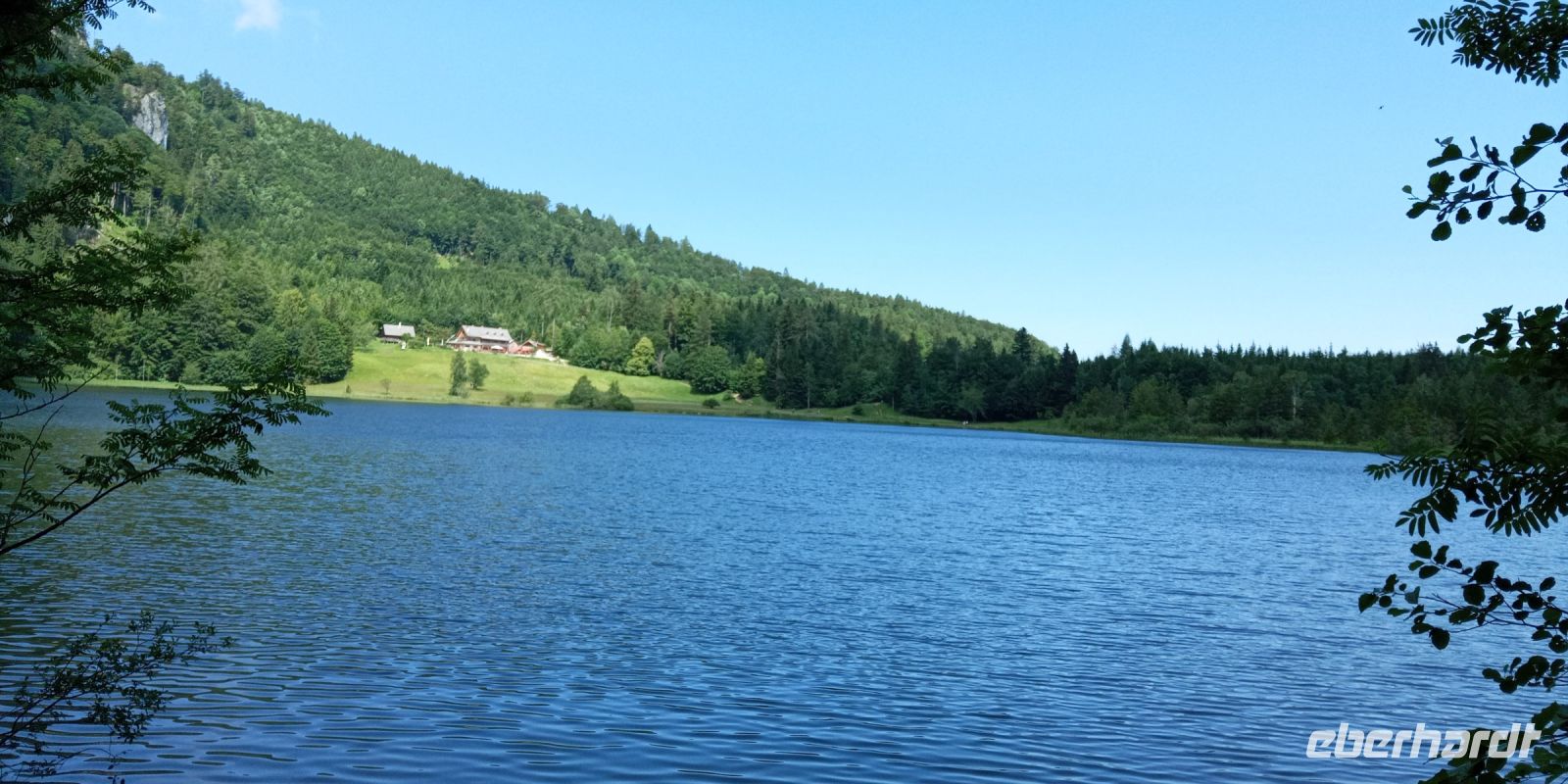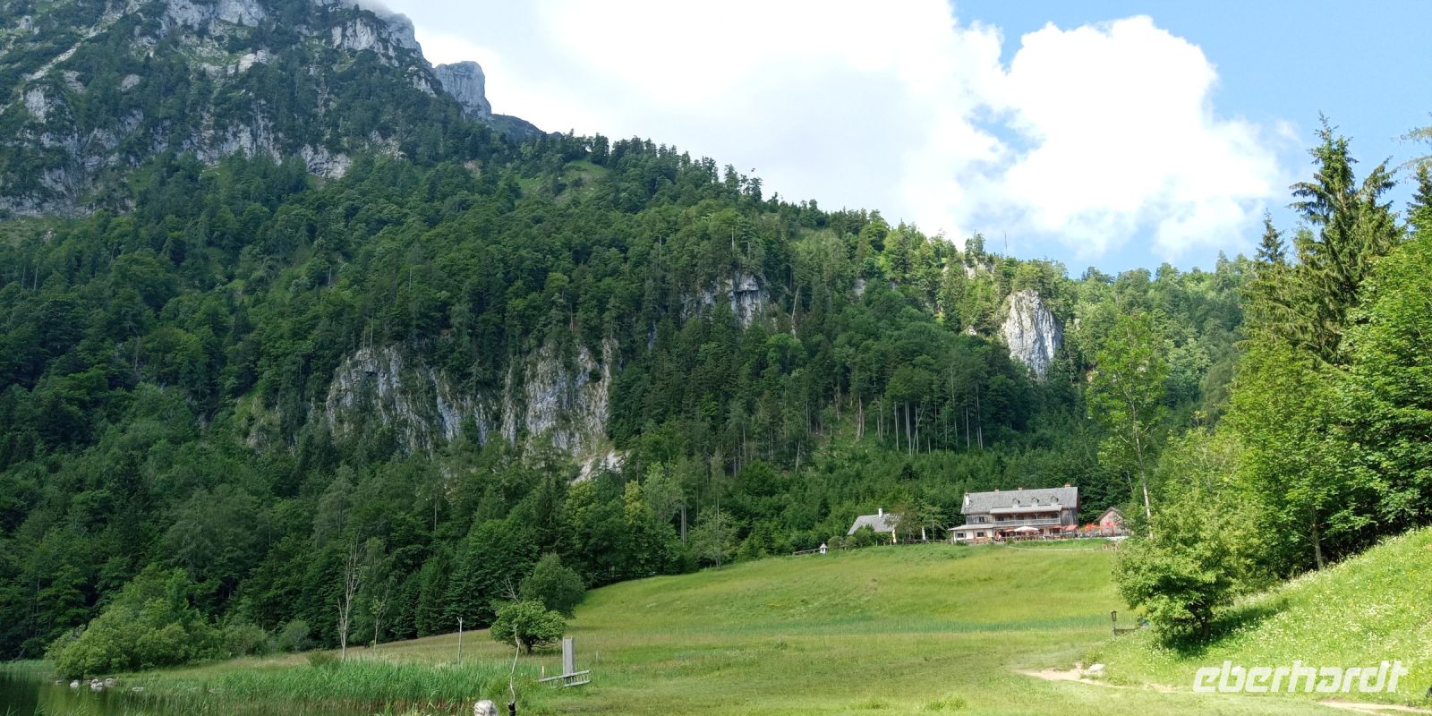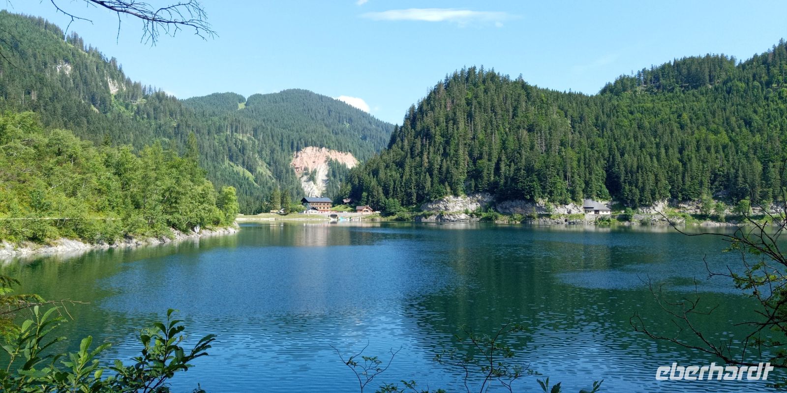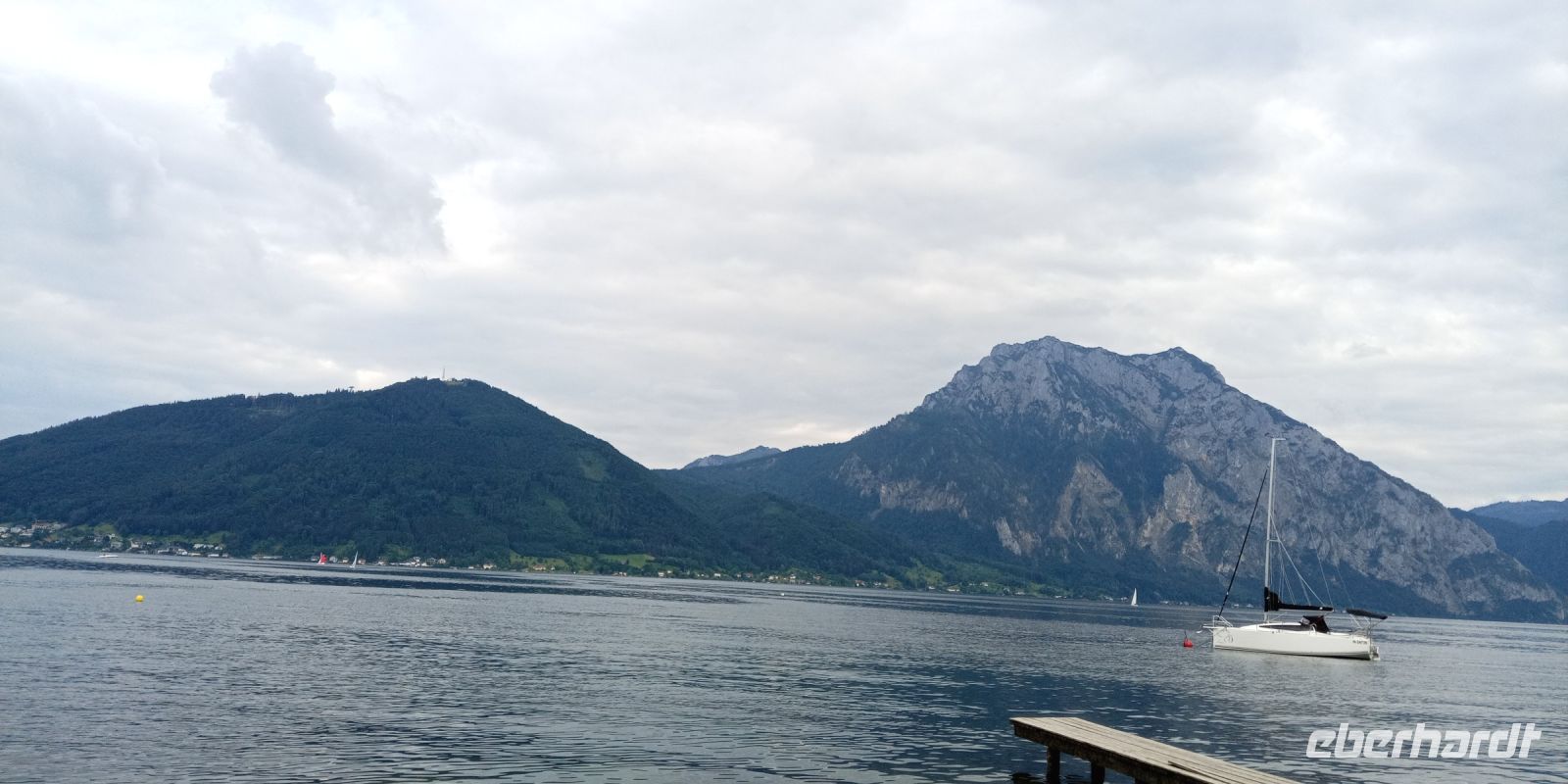 Da für den heutigen Morgen laut Wetterbericht Regen angekündigt war, starteten wir unseren heutigen Ausflug eine halbe Stunde später. Somit konnte jeder auch mal etwas länger Schlafen. Gegen 9:30 Uhr fuhren wir heute ins Langbathtal zum vorderen Langbathsee. Der vordere und hintere Langbathsee, stellen mit ihrer Flora und Fauna ein relativ intaktes Ökosystem dar und das Gebiet steht seit 1965 unter Naturschutz. Der vordere Langbathsee ist auch zum Eislaufen oder Eisstockschießen geeignet, da er im Winter oft vollständig zufriert. Wir absolvierten unsere heutige Wanderung um die beiden Langbathseen und starteten am Ostufer des vorderen Langbathsees. Hier konnten wir auch gleich einen tollen Ausblick über den See genießen. Wir sahen auf dem gegenüber liegenden Ufer das Jagdschloss-Langbathsee, welches Kaiser Franz Josef 1870 erbauen ließ. Dieses Gebäude steht heute unter Denkmalschutz. Bei angenehmen Temperaturen erreichten wir ganz gemütlich den hinteren Langbathsee. Von hier gab es einen grandiosen Ausblick auf den Brunnkogel (1708 m) und das felsige Nordmassiv des Höllengebirge. Nachdem wir dieses beeindruckende Landschaftsbild ein wenig auf uns wirken ließen, setzten wir unsere Wanderung fort. Zur Mittagszeit erreichten wir auch schon wieder das Ostufer. Hier konnte jeder individuell eine Rast im Gasthof Stüberl einlegen, oder eine kleine Abkühlung am Badestrand aufsuchen. Anschließend fuhren wir weiter nach Gmunden, wo uns noch am Nachmittag eine Schifffahrt auf dem Traunsee erwartete. Bevor unser Schiff ablegte, konnte jeder noch einen kleinen Bummel durch Gmunden laufen. Wunderschön ist der Rathausplatz direkt an der Schiffsanlegestelle, wo das mintgrün-weiße, orientalisch anmutende Rathaus steht. Direkt daneben kann man durch den Kurpark und der Traunsee-Promenade flanieren. Während unser Schifffahrt auf dem Traunsee, gab es dann doch Mal einen kleinen Gewitterguss. Dies störte uns allerdings nicht und wir konnten die vielen schönen Highlights am Traunsee einfach auf uns wirken lassen. Wie z.B. der Blick auf Traunkirchen, dem Grünberg oder den immer wieder anmutenden Traunstein. So endete beim geselligen Abendessen im Hotel, wieder ein ereignisreicher Tag.