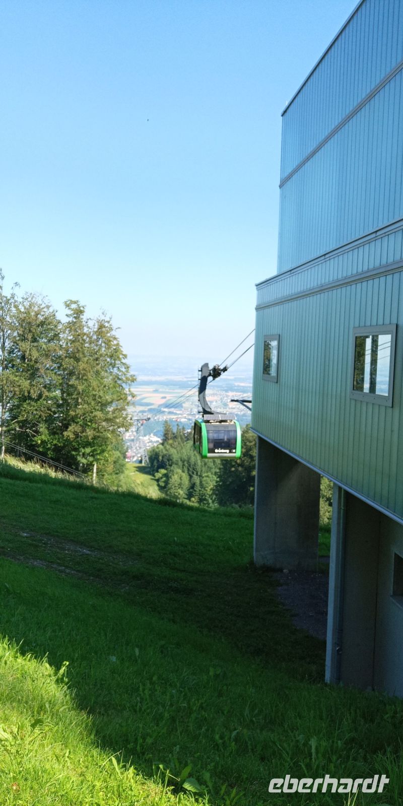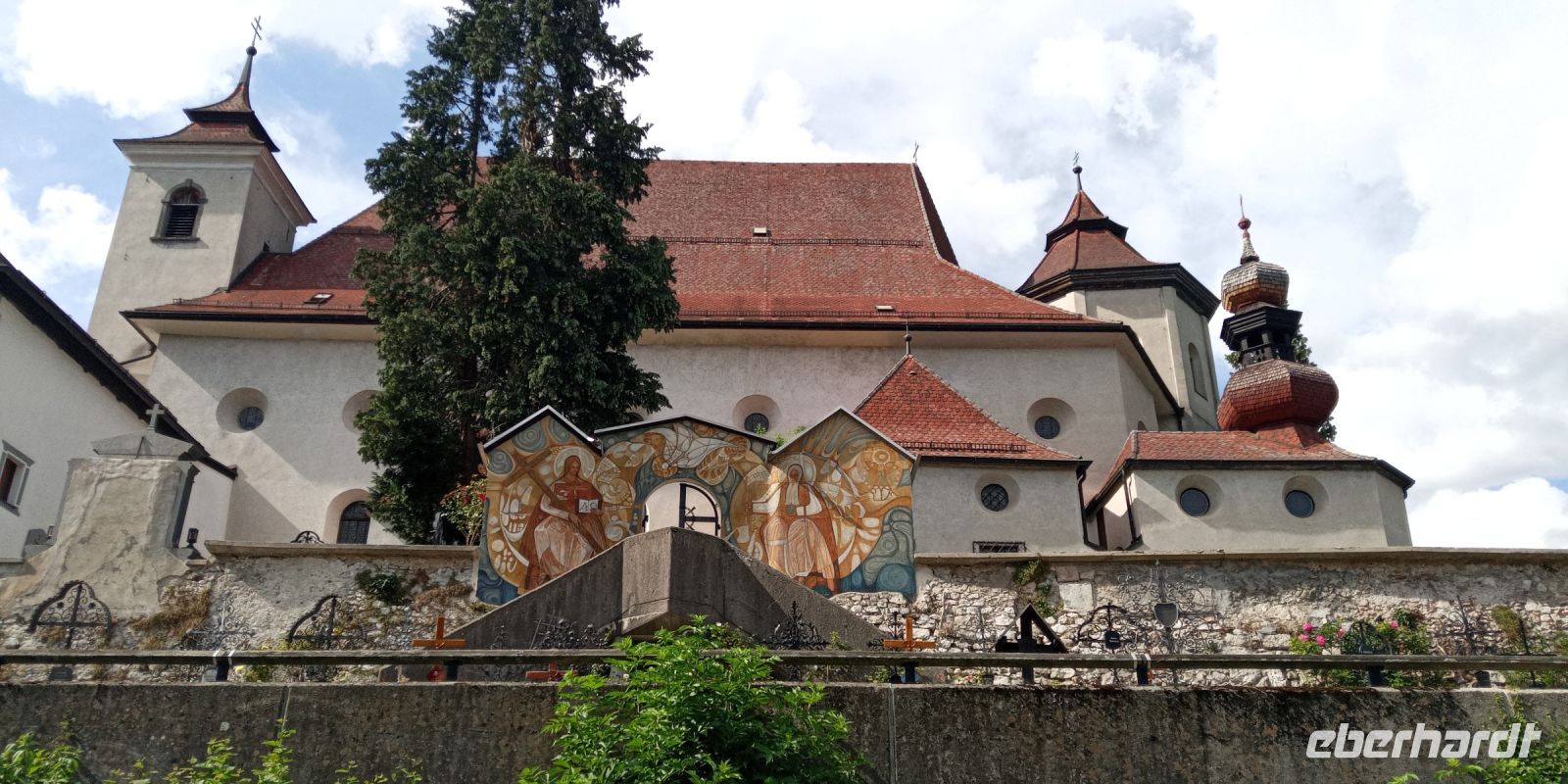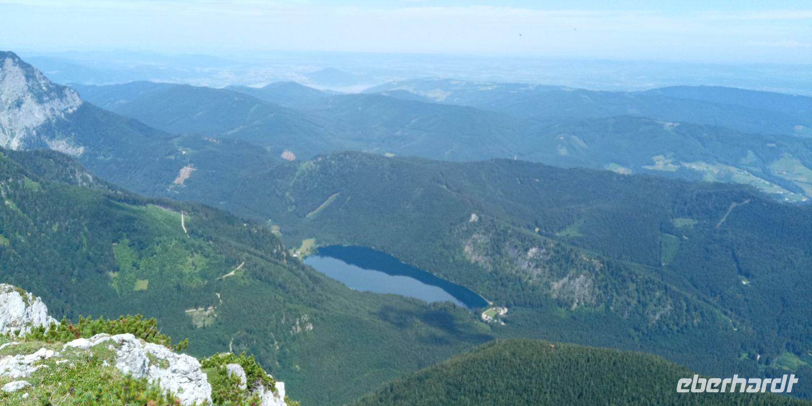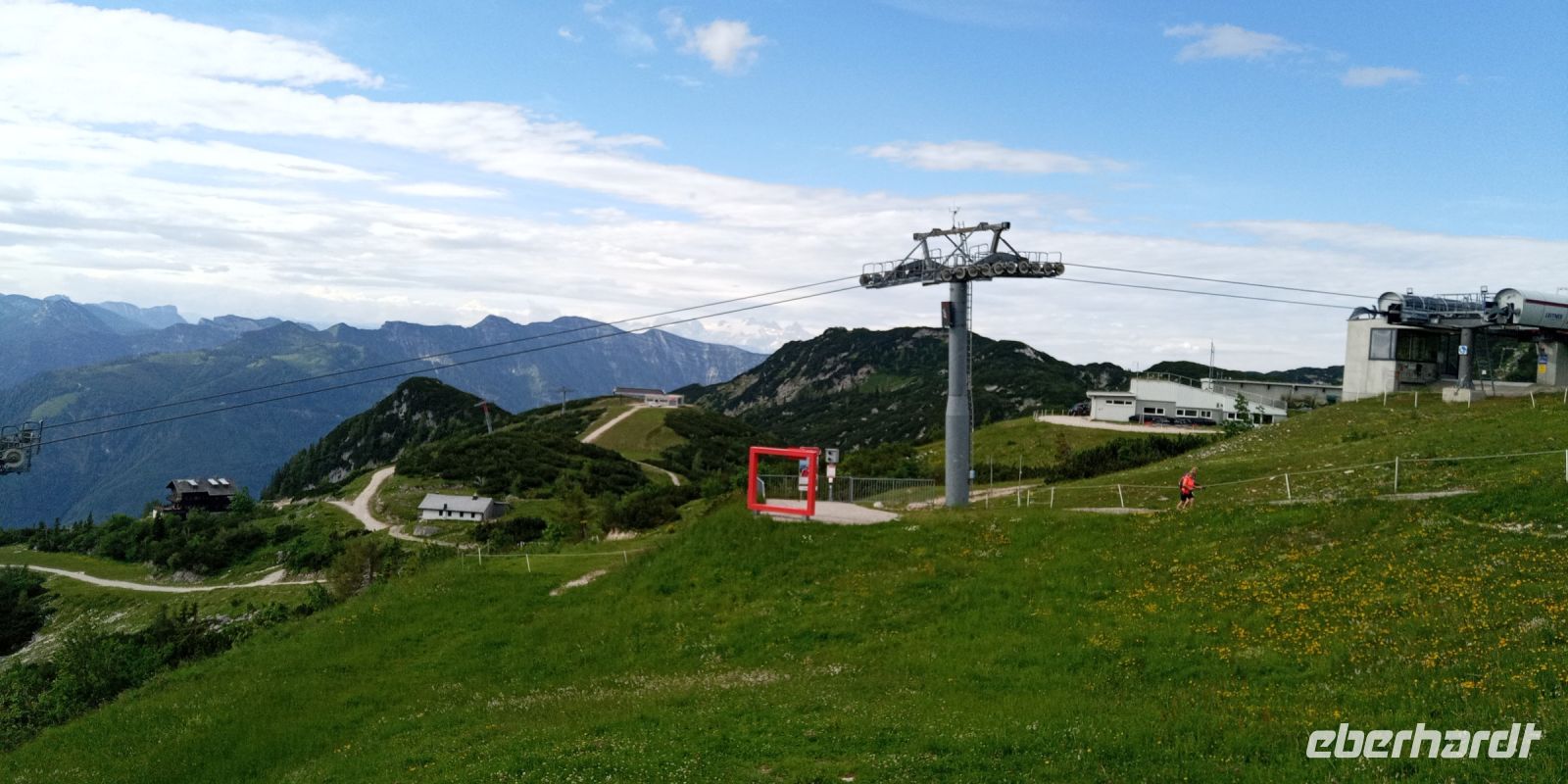 An unserem dritten Wandertag, erwartete uns am Morgen unsere heutige Bergführerin Barbara. So ging es heute auf den Weg zum Feuerkogel. Unser Busfahrer Andreas brachte uns zur Talstation der Feuerkogel-Bahn. Hier teilten wir heute unsere Wandergruppe. Barbara absolvierte mit 4 Gästen die anspruchsvolle Variante, nämlich den direkten Aufstieg zum Feuerkogel (1592 m). Die restliche Gruppe absolvierte mit mir die entspannte Variante. Wir fuhren mit der Feuerkogel-Bahn zur Bergstation hinauf, wo wir schon einen tollen Ausblick auf das Dachsteinmassiv und den Traunsee werfen konnten. Vom Feuerkogel aus starteten wir unsere Wanderung zum Europakreuz auf dem Alberfeldkogel (1707 m). Am Europakreuz konnten wir einen tollen Ausblick auf den vorderen Langbathsee genießen, welcher ja noch auf unserem Programm steht. Auch ein toller Blick bis zum Attersee bot sich dort oben. Das Europakreuz hat eine Besonderheit. Dieses Kreuz ist aus einzelnen Würfeln zusammen gebaut und jeder Würfel symbolisiert einen EU-Mitgliedsstaat. Gemütlich setzten wir unsere Wanderung fort, zurück Richtung Feuerkogel. So genossen wir einen weiteren tollen Ausblick auf den Traunsee am Pledigupf (1622 m). Anschließend legten wir eine Rast im Gasthof Edelweiss ein. Auch wenn ringsherum dunkle Wolken heranzogen, blieben wir aber auf dem Bergplateau trocken. So konnten wir die herrliche Landschaft noch ein wenig auf uns wirken lassen. Als am Nachmittag schließlich auch die andere Gruppe ihr Ziel erreicht hatte, fuhren wir alle zusammen wieder mit der Seilbahn hinunter ins Tal. Auf unserer Rückfahrt Richtung Altmünster, legten wir noch einen Stopp in dem kleinen Örtchen Traunkirchen ein. Barbara machte mit uns noch einen kleinen Spaziergang entlang der Seepromenade. Hier konnten wir die Füße ins Wasser halten, zur Abkühlung des heutigen Wandertages. Da es im Tal doch sehr warm war, gab es sogar ein paar mutige Badegäste. Individuell konnte jeder auch die idyllische Johannesbergkapelle besichtigen. Zurück am Hotel, ließen wir diesen schönen Tag wieder mit einem leckeren 3-Gänge Menü ausklingen.