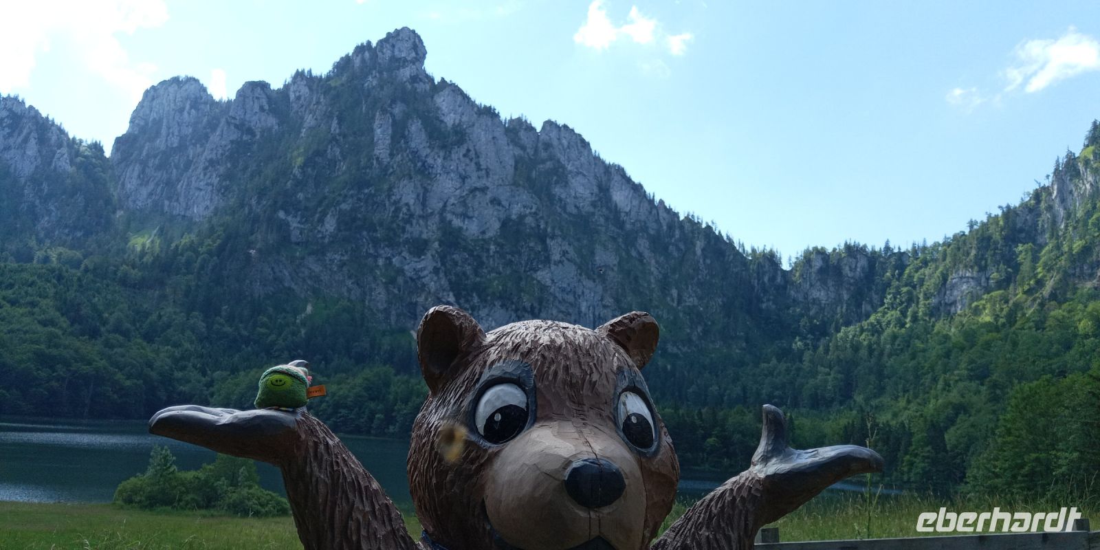 Heute morgen begrüßten wir am Hotel unseren Bergführer Günter, der uns in den kommenden 2 Tagen das schöne Salzkammergut zeigt. Für unseren ersten Wandertag fuhren wir über Gmunden zur Talstation der Grünbergseilbahn. Diese brachte uns auf den 1004 Meter hohen Grünberg. Bereits bei der Auffahrt konnten wir bei bestem Wetter die malerischen Ausblicke auf Gmunden, dem Traunsee und die markante Gebirgskulisse des Höllengebirges genießen. Oben an der Bergstation der Grünbergseilbahn starteten wir unsere Wanderung zum Laudachsee. Dabei genossen wir wieder tolle Aussichten auf den Traunstein, dem „Wächter des Salzkammergutes“. Bei strahlend blauen Himmel, sahen wir diesmal auch sehr gut das Gipfelkreuz des Traunstein und die Gmunder Hütte. Hier führen verschiedene alpine Klettersteige, wie z.B. der „Naturfreundesteig“ hinauf. Dies ist allerdings wirklich nur erfahrenen Bergsteigern zu empfehlen. Wir setzten unsere Wanderung zum Laudachsee fort, und kamen noch an einer Sagenstation vorbei. Günther erzählte uns die Sage über den Riesen Erla, der sich in eine Nixe verliebte. Am Laudachsee angekommen, hatten wir auch einen schönen Ausblick auf den 1349 Meter hohen Katzenstein. Bei einer Mittagsrast konnten wir uns in der Ramsaualm stärken, oder ließen einfach Mal die Füße im kühlen Bergsee baumeln. Bei unserem Abstieg zum Gasthof Franzl im Holz, teilte sich die Wandergruppe. Günter übernahm die Gruppe mit dem etwas schwierigeren Abstieg und die Genusswanderer mit dem leichterem Abstieg kamen bei mir mit. Nach dieser schönen Wanderung gönnten wir uns noch eine Erfrischung im Gasthof, ehe uns Andreas abholte und wir am Nachmittag wieder zum Hotel zurückfuhren. Unseren ersten Wandertag mit vielen tollen Eindrücken, ließen wir wieder am Abend mit einem leckeren 3-Gänge Menü ausklingen.