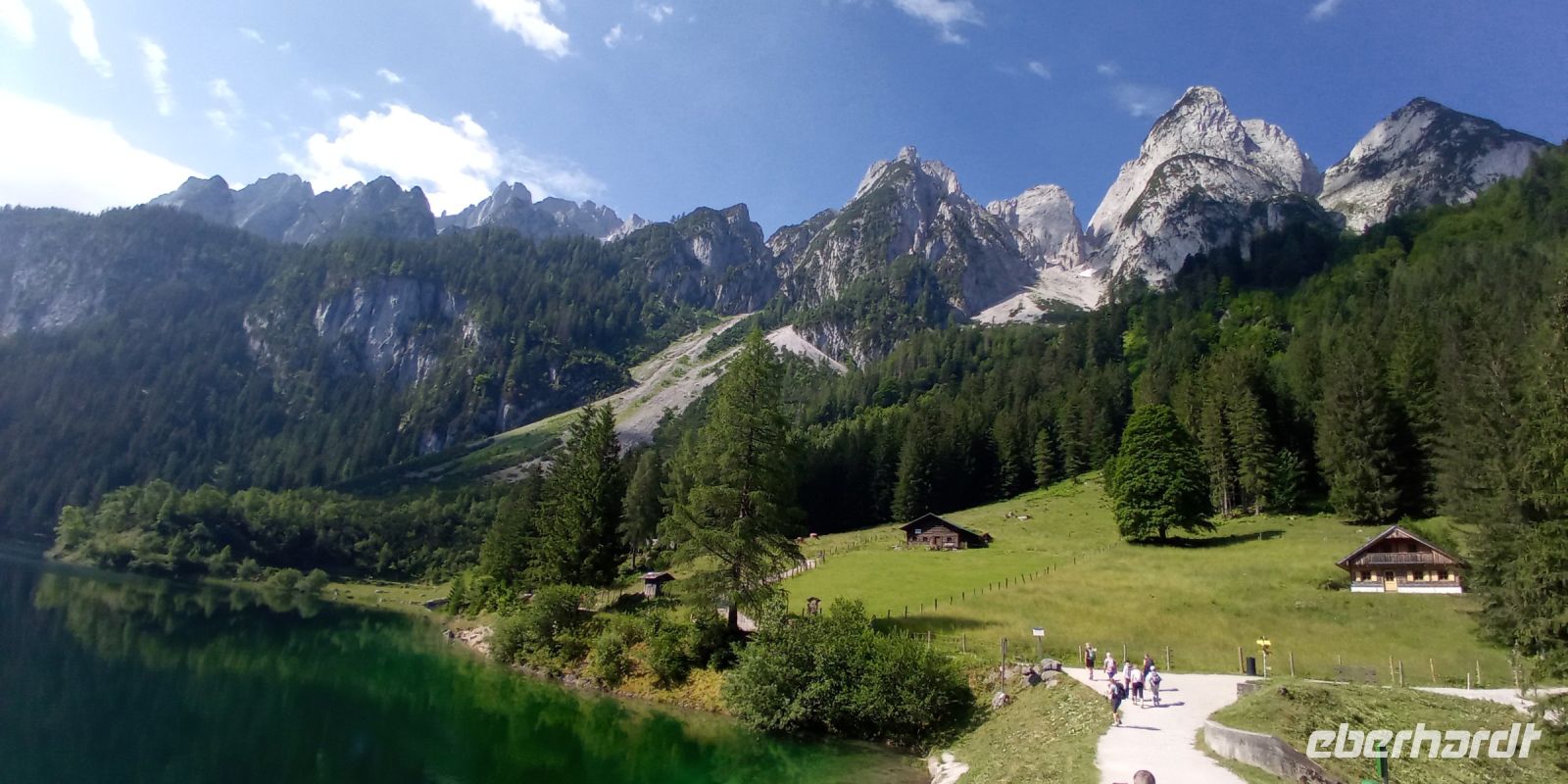 Auch an unserem heutigen Wandertag, erwartete uns am Morgen wieder unser Bergführer Günter am Hotel. Bei strahlenden Sonnenschein fuhren wir ins Gosautal. Unsere Anfahrt führte uns entlang des Traunsee, mit tollen Ausblick auf den Erlakogel (1575m), der auch die „schlafende Griechin“ genannt wird. Weiter ging unsere Fahrt vorbei am berühmten Hallstätter See. Er besitzt eine Fläche von 8,5km² und eine maximale Tiefe von 125 Meter und ist einer der meistbesuchten Seen des Salzkammerguts. Hinein ins Gosautal bis schließlich zum vorderen Gosausee. Am Gasthof Gosausee starteten wir unsere Wanderung entlang des klaren Bergsees, dem vorderen Gosausee. Begleitet wurde unsere heutige Tour immer wieder mit tollen Aussichten auf die Nordseite des Dachsteinmassiv. Sogar der Gipfel des Dachsteins, mit sein 2995m Höhe, kam im Laufe unserer Wanderung zum Vorschein. Nach einem etwas längeren Anstieg erreichten wir den hinteren Gosausee. Auch hier ist die wilde Alpinlandschaft einfach nur surreal schön. Hier legten wir bei der Holzmeister Alm unsere Mittagsrast ein und ließen die Eindrücke des Bergsees auf uns wirken. Gestärkt für den Abstieg, setzten wir unsere Wanderung fort und erreichten am frühen Nachmittag wieder den Gasthof Gosausee am vorderen Gosausee. So fuhren wir am Nachmittag weiter nach Bad Ischl, der Sommerresidenz von Kaiser Franz und Sissi. Im Cafe Zauner hatten wir uns nach der heutigen Wanderung einen leckeren Kuchen verdient. Vom Cafe Zauner aus genossen wir einen schönen Ausblick auf den 599 Meter hohen Siriuskogl. Der Hausberg der Kurstadt ist beliebtes Ausflugsziel, das man auf einem ausgeschilderten Wanderweg in knapp 20 Minuten von der Esplanade aus erreicht. Oben bietet sich die 1885 erbaute Franz-Josephs-Warte, für einen Rundumblick auf Bad Ischl. Wir flanierten noch ein bisschen entlang des Kurparks, ehe wir unsere Rückfahrt ins Hotel antraten. Und so endete wieder ein ereignisreicher Tag mit vielen schönen Eindrücken.