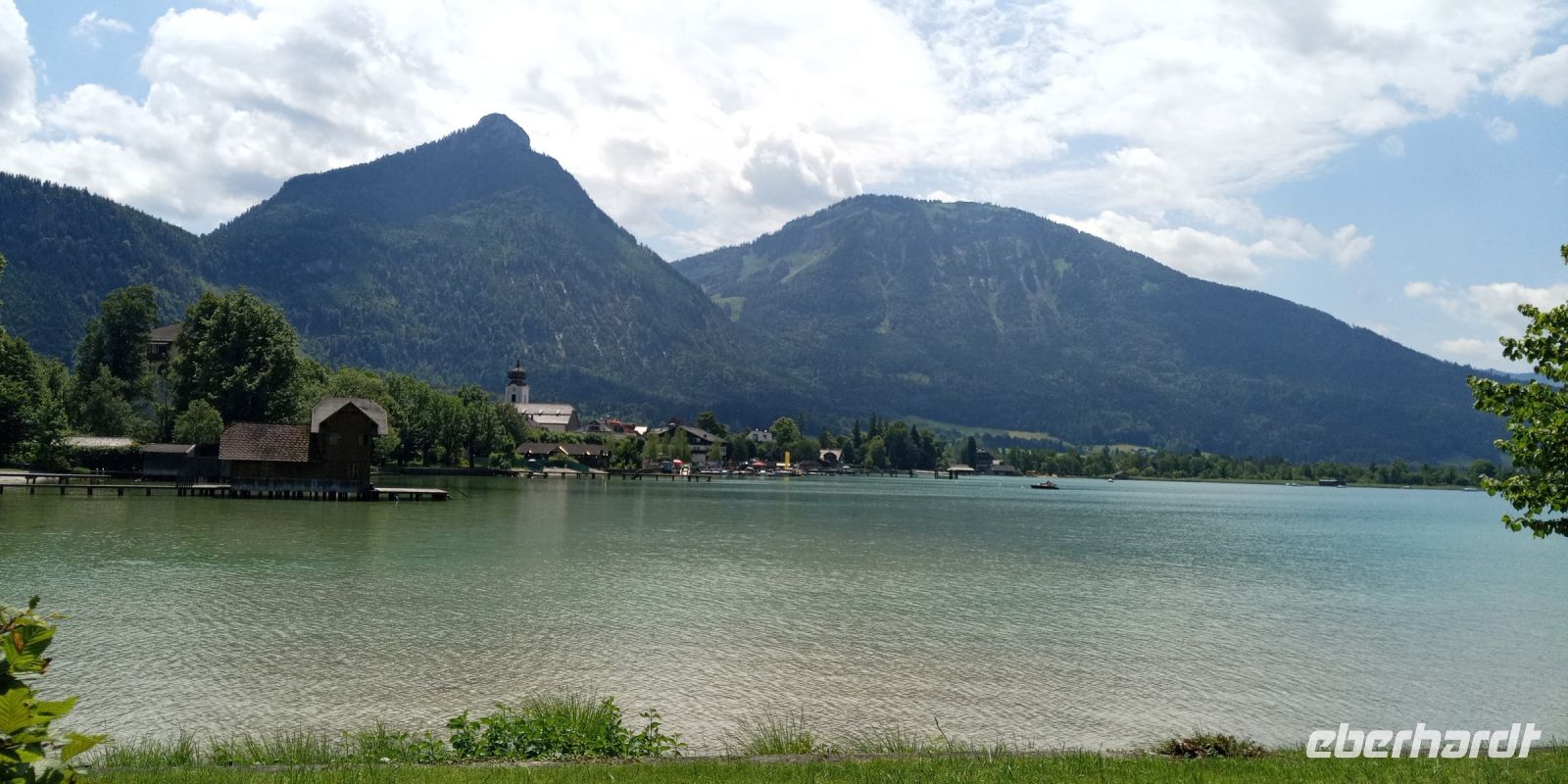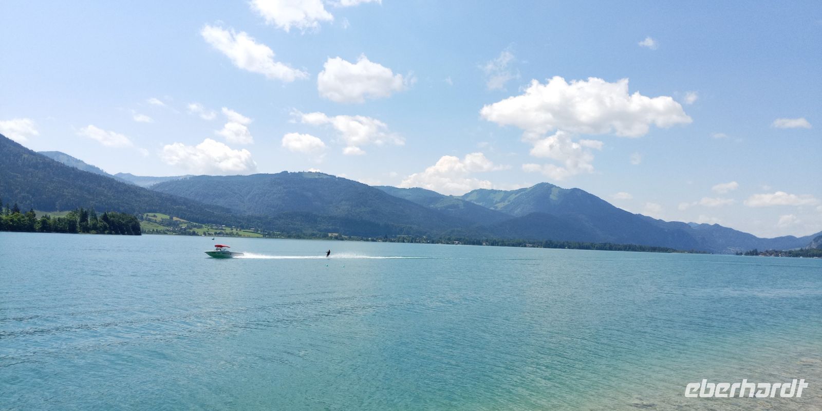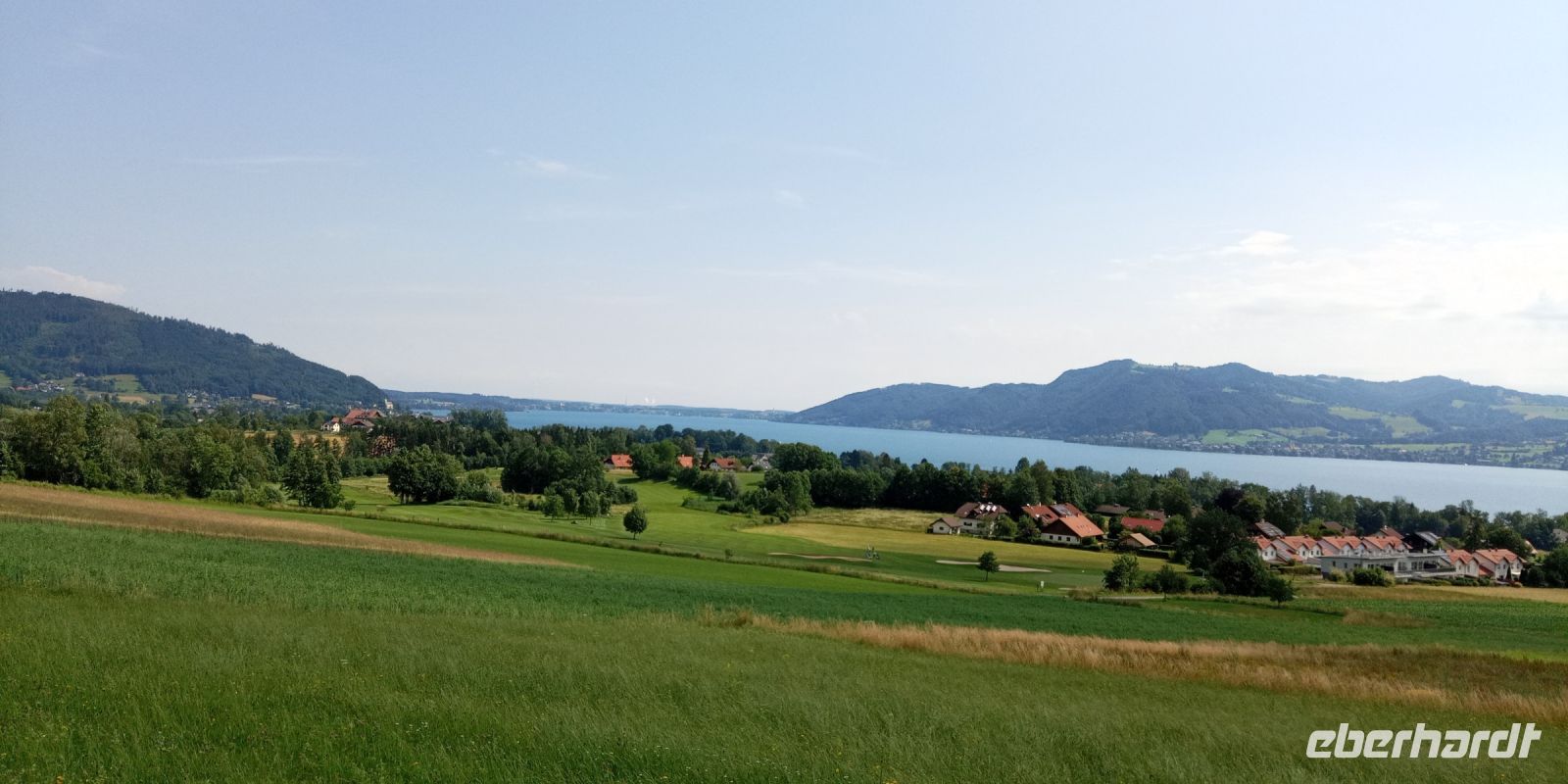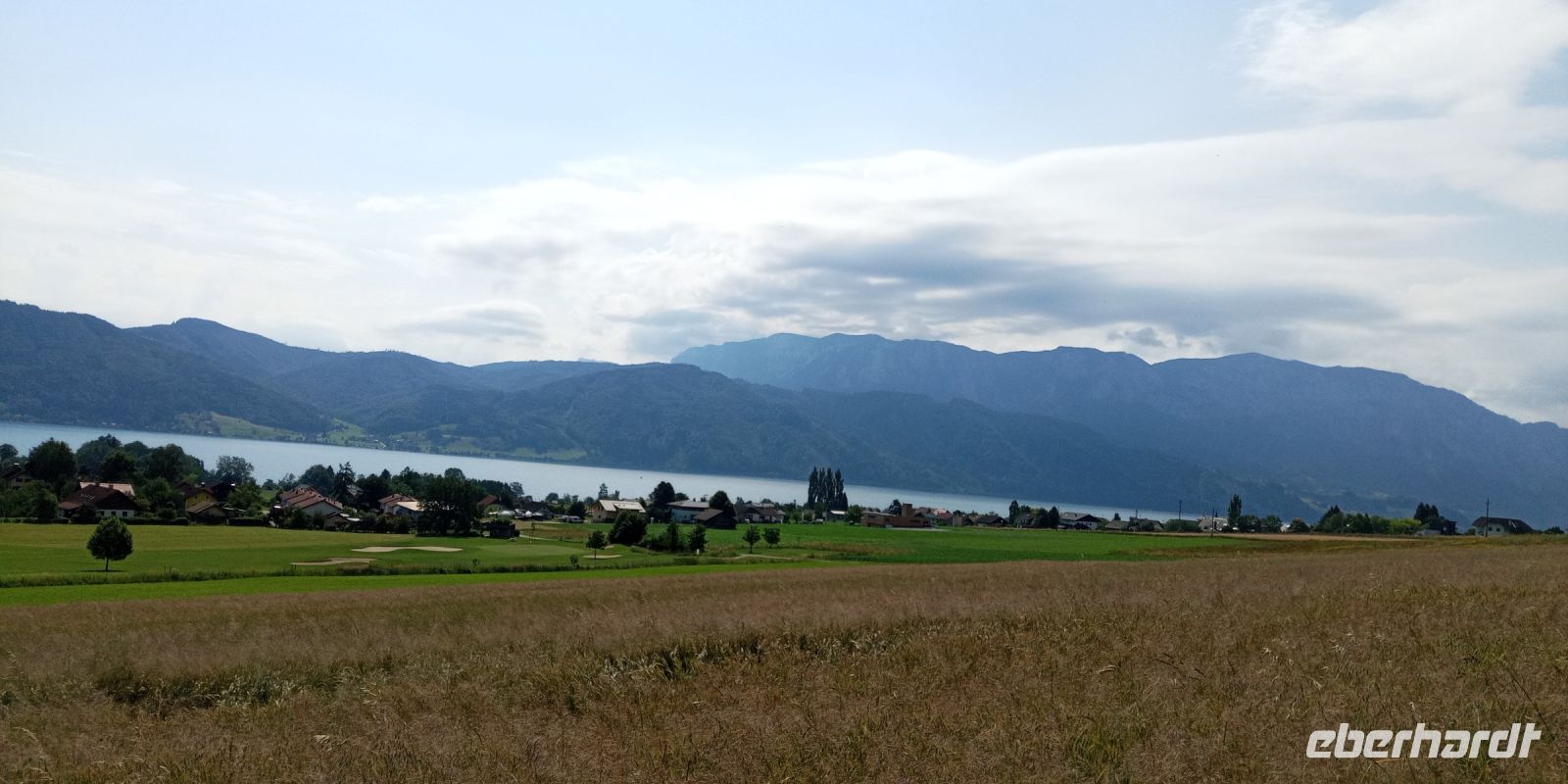 Nachdem es in der Nacht ordentliche Gewitterschauer gab, startete auch der Morgen noch mit Regen. Pünktlich um 9 Uhr erwartete uns wieder unsere Bergführerin Barbara am Hotel. Diesmal fuhren wir zusammen nach Abstdorf an den Attersee. Schon bei der Anfahrt zum Attersee, verzogen sich die letzten Schauer und wir erreichten Abstdorf wieder bei Sonnenschein und warmen Temperaturen. Spontan verkürzten wir hier in Abstdorf unsere geplante Wanderung und liefen eine gemütliche Tour zum Nachbarort Nußdorf. Auf schönen Bergwiesen und Felder, hatten wir dabei tolle Ausblicke auf den Attersee. Der äußerst klare Attersee liegt vor entzückendem Bergpanorama und ist mit einer Wasserfläche von 46km² der größte See Österreichs, der sich zur Gänze im Land befindet. Der türkisfarbene Attersee ist ein Gletscherrandsee mit einer Tiefe von bis zu 169 Meter und hat Trinkwasserqualität. In Nußdorf kamen wir an einer Tischlerei vorbei, wo Tische aus Zirbenholz hergestellt werden. Da der Tischlermeister uns zufällig gesehen hat, bekamen wir eine spannende kurze Führung durch seine Werkstatt. Anschließend sammelte uns Andreas wieder in Nußdorf ein und wir fuhren weiter an den Wolfgangsee nach St. Gilgen. Hier machte Barbara mit uns einen kleinen Spaziergang durch den Ort. Aus dem Ort stammte Mozarts Mutter, auch seine Schwester „Nannerl“ lebte viele Jahre hier. Wir liefen am ehemaligen Haus der Familie, dem Mozarthaus vorbei. Ebenfalls sehenswert waren die Pfarrkirche von St. Gilgen mit dem kleinen Friedhof und das schmucke Rathaus. Nachdem sich jeder ein leckeres Eis gönnte, fuhren entlang des Wolfgangsee an die Westspitze zum Örtchen Strobl. Hier liefen wir entlang des Bürglsteinweges mit tollen Aussichten auf den Wolfgangsee. Anschließend teilte sich unsere Wandergruppe wieder auf. Barbara absolvierte mit 4 Gästen noch eine etwas längere Tour bis St. Wolfgang. Die anderen Gäste liefen mit mir die gemütliche Variante, immer am See entlang nach St. Wolfgang. Hier hatte meine Wandergruppe dann etwas Freizeit, um sich das idyllische Örtchen anzusehen. Der Komponist Ralph Benatzky setzte dem Ort mit seinem 1930 uraufgeführten Singspiel „Im weißen Rössl am Wolfgangsee“ ein Denkmal. Noch berühmter wurde St. Wolfgang 30 Jahre später im Zuge der Verfilmung mit Peter Alexander in der Hauptrolle. Bis heute gibt es das besagte Hotel. Auch so kann sich St. Wolfgang mit seinen historischen Bauten samt schmucken Boutiquen und einladenden Cafes sehen lassen. Als am Nachmittag auch die andere Wandergruppe wieder in St. Wolfgang eintraf, verabschiedeten wir uns von Barbara für die 2 schönen Tage mit ihr. So ging es mit vielen Eindrücken wieder zurück in unser Hotel, wo wir beim Abendessen den ereignisreichen Tag noch Mal Revue passieren lassen konnten.