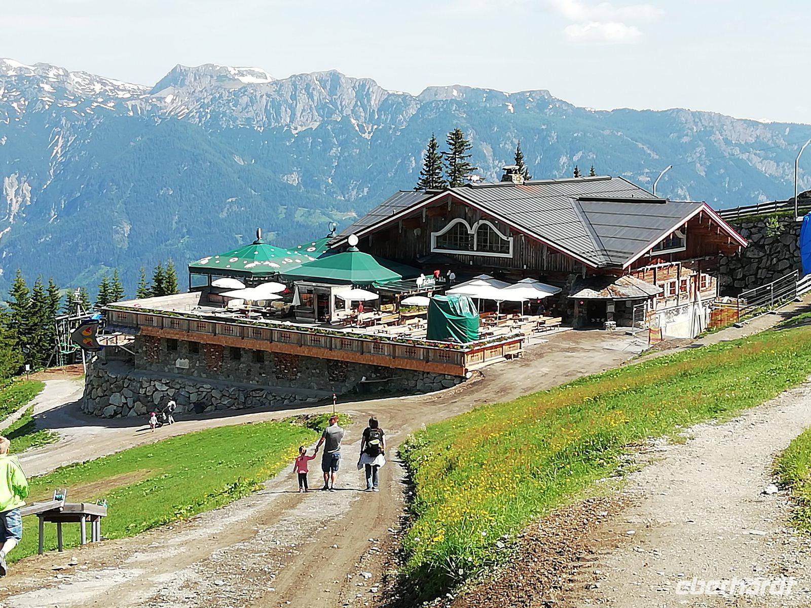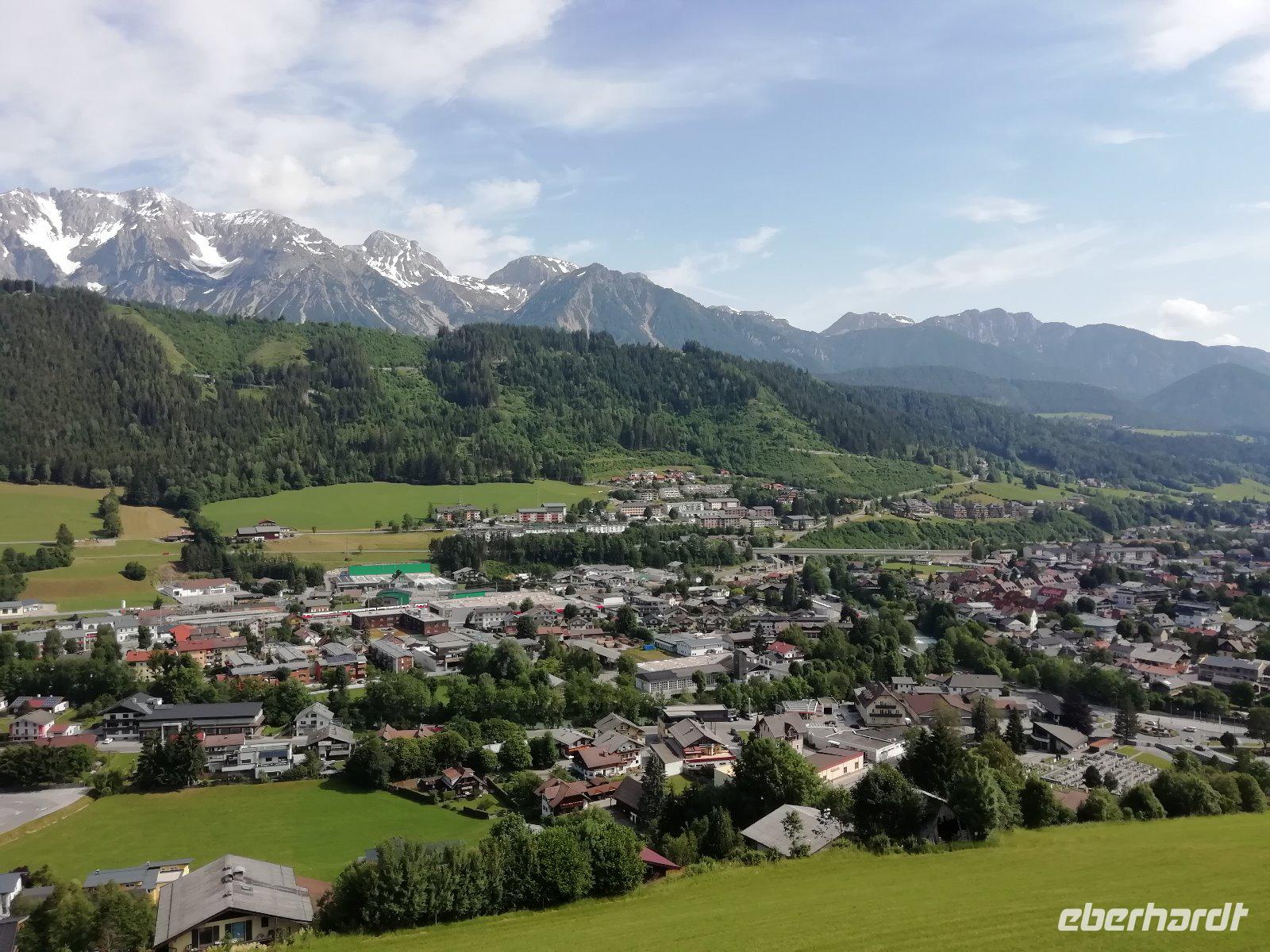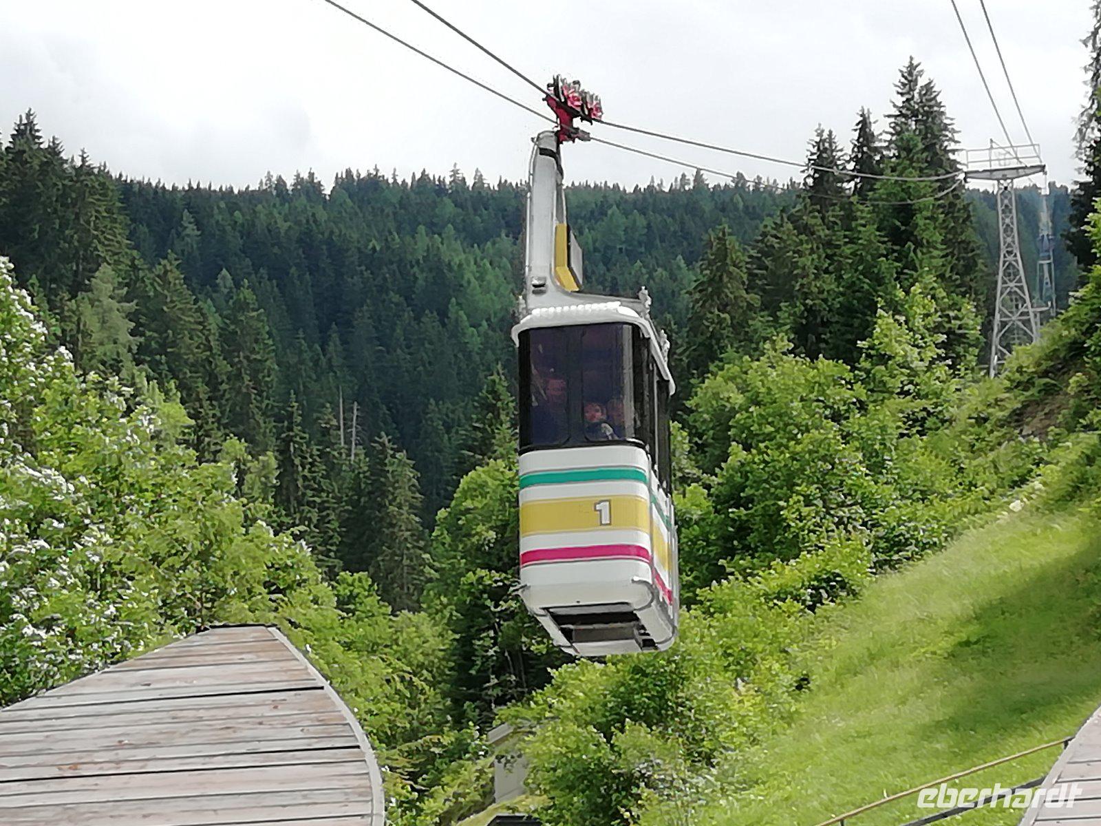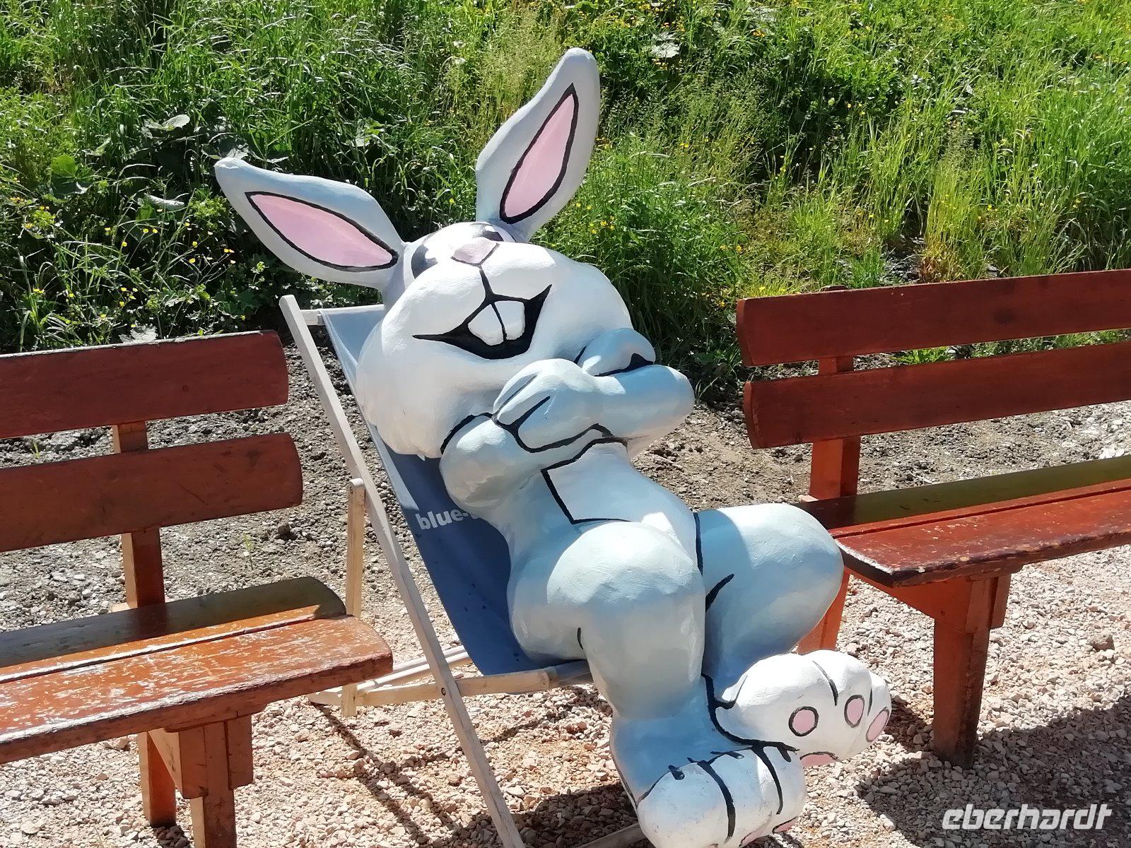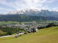 Heute zum Fronleichnam ist in Österreich Feiertag. Wir wollen auf die Planai, den Hausberg von Schladming. Da die Hauptseilbahn dort hinauf in diesem Jahr erneuert wir, fahren wir zu Seilbahn „Planai West". Nach einer tollen Auffahrt mit einem schönen Blick auf Schladming geht es mit einem Shuttle-Bus weiter hinauf zum Planaihof. Wir sehen Häschen in mehreren Varianten, die ins Hopsiland einladen. Einige Gäste laufen zum Gipfel oder umrunden diesen auf dem Panoramaweg. Immer wieder schauen wir hinüber zum Dachsteinmassiv und machen viele Fotos.