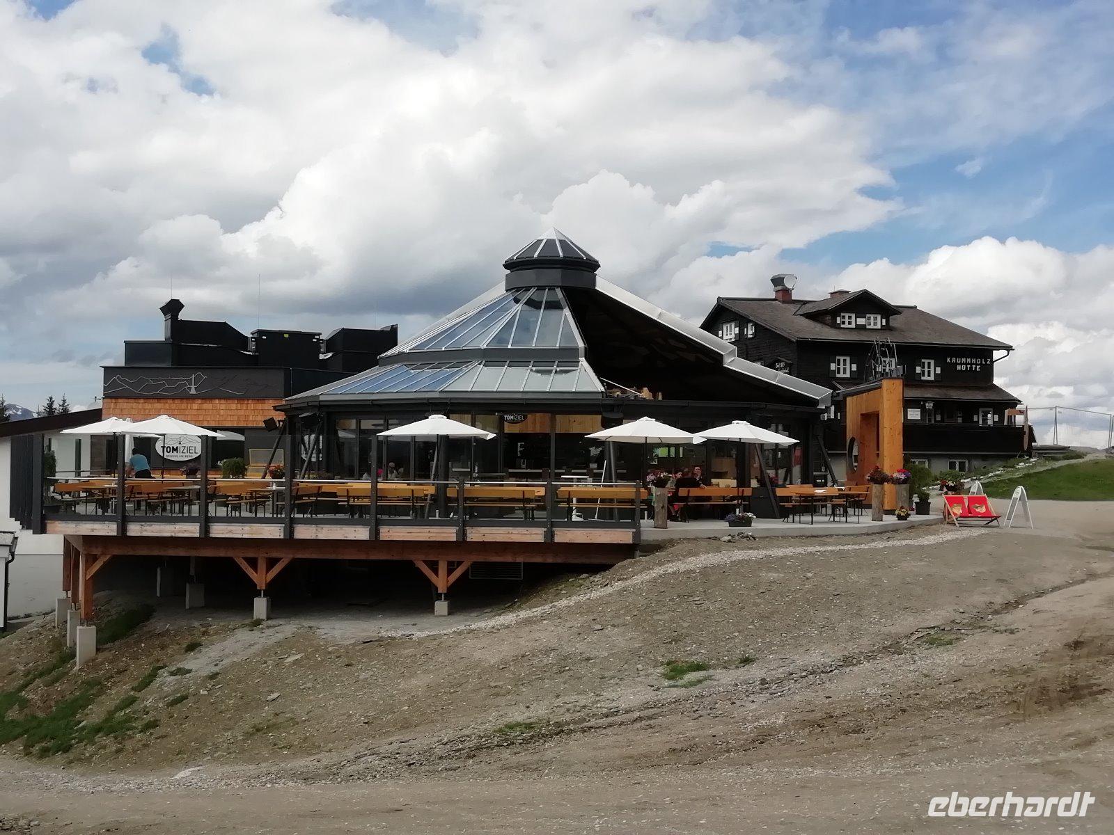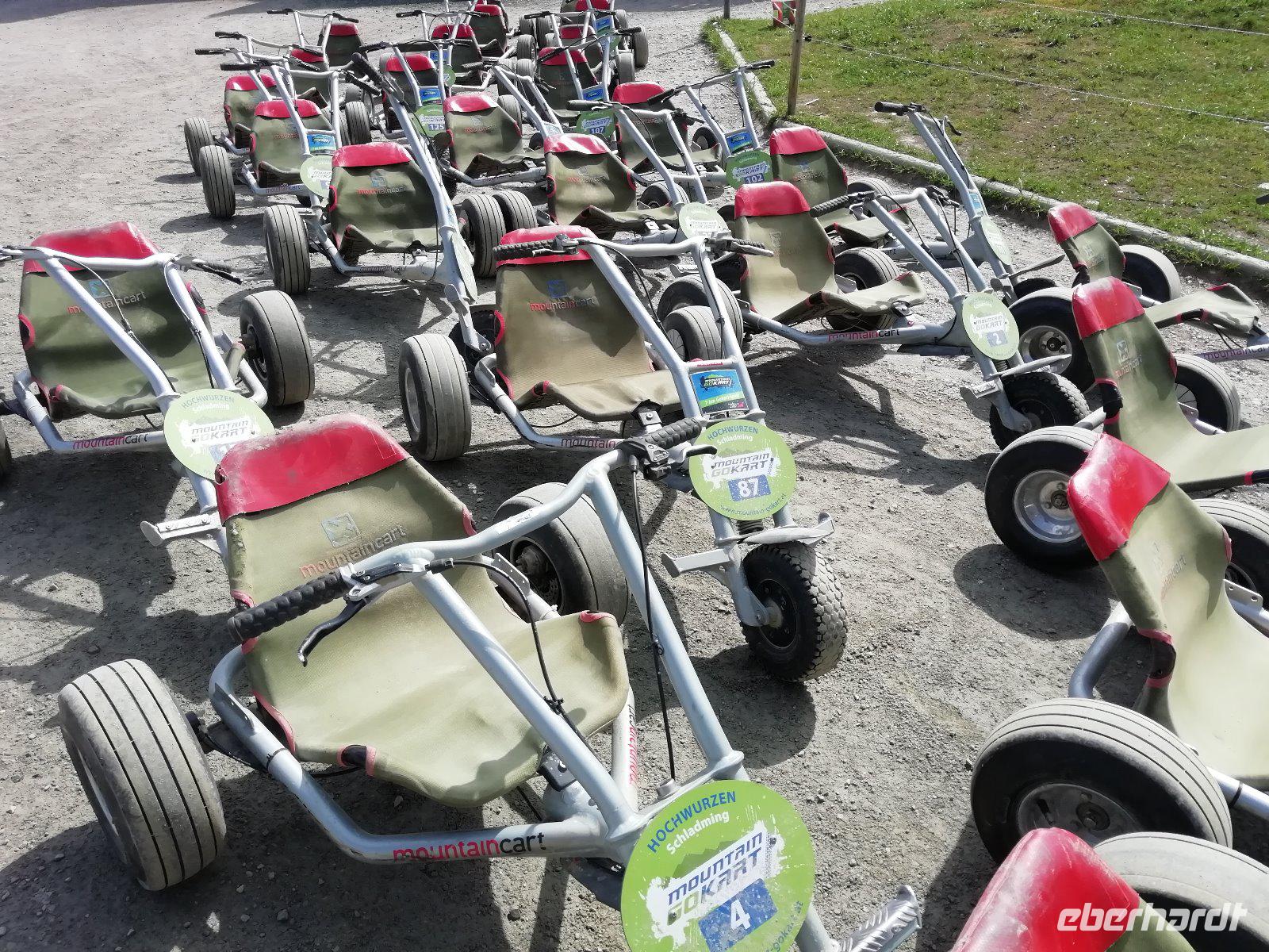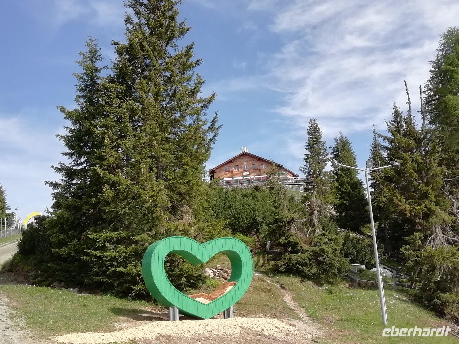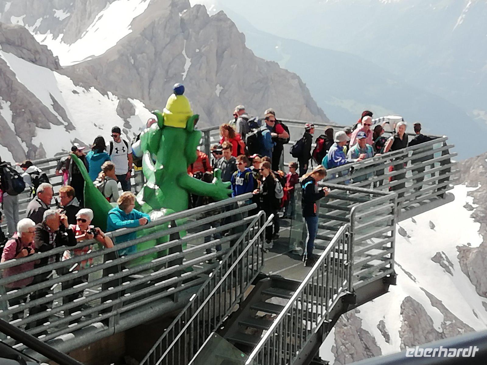 Heute zum Fronleichnam ist in Österreich Feiertag. Wir wollen auf die Planai, den Hausberg von Schladming. Da die Hauptseilbahn dort hinauf in diesem Jahr erneuert wir, fahren wir zu Seilbahn „Planai West". Nach einer tollen Auffahrt mit einem schönen Blick auf Schladming geht es mit einem Shuttle-Bus weiter hinauf zum Planaihof. Wir sehen Häschen in mehreren Varianten, die ins Hopsiland einladen. Einige Gäste laufen zum Gipfel oder umrunden diesen auf dem Panoramaweg. Immer wieder schauen wir hinüber zum Dachsteinmassiv und machen viele Fotos.