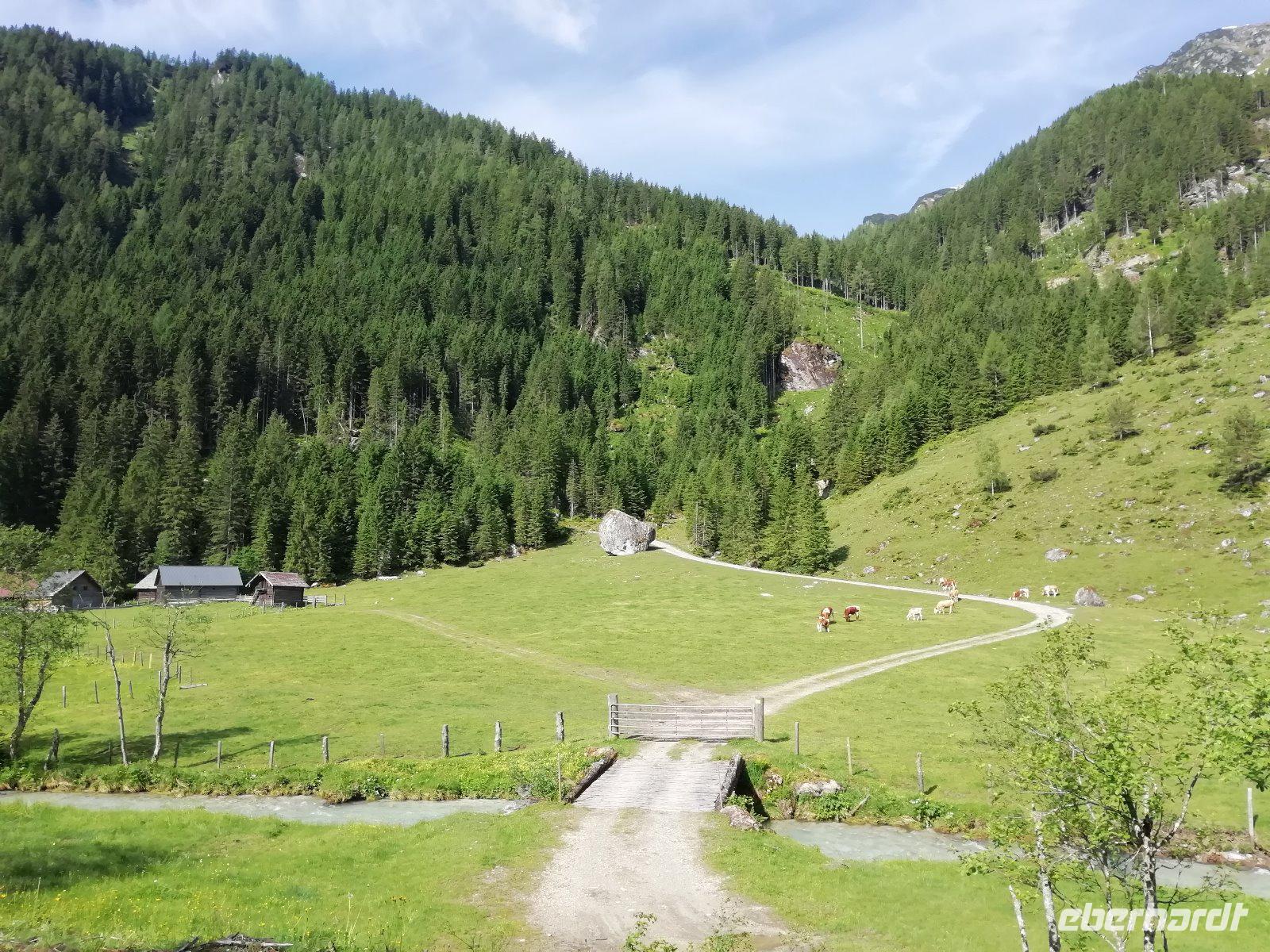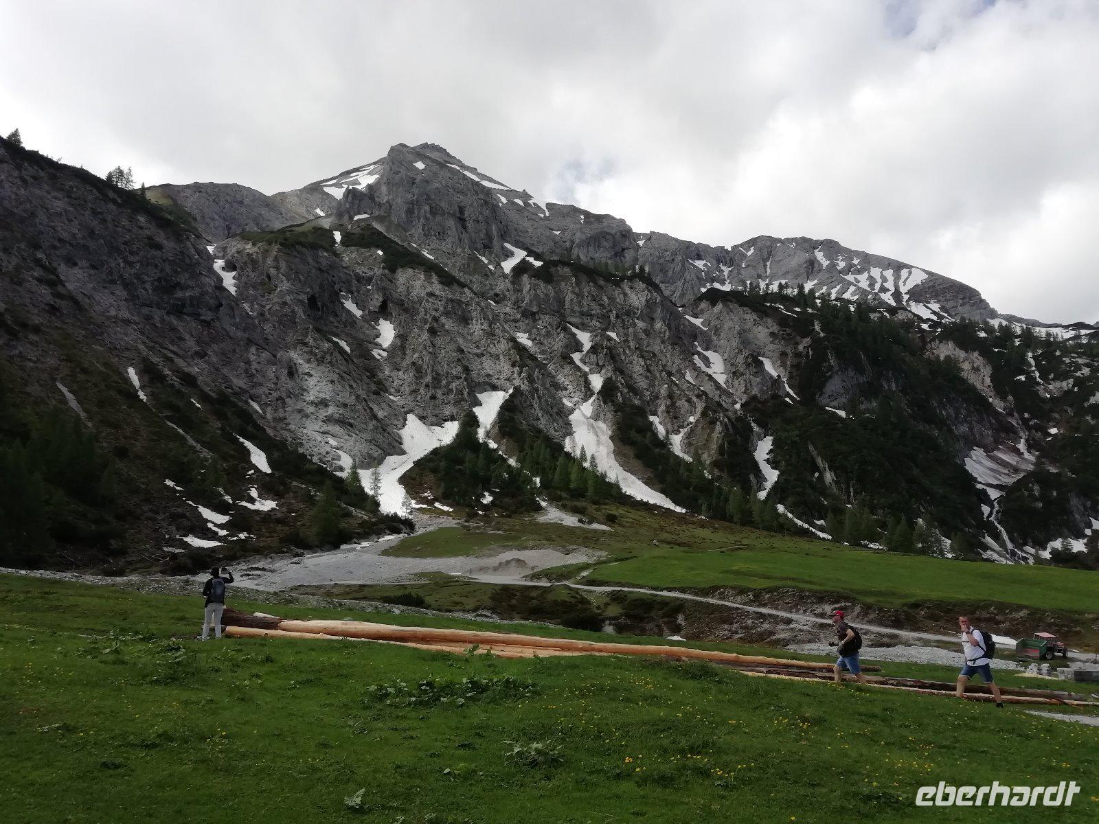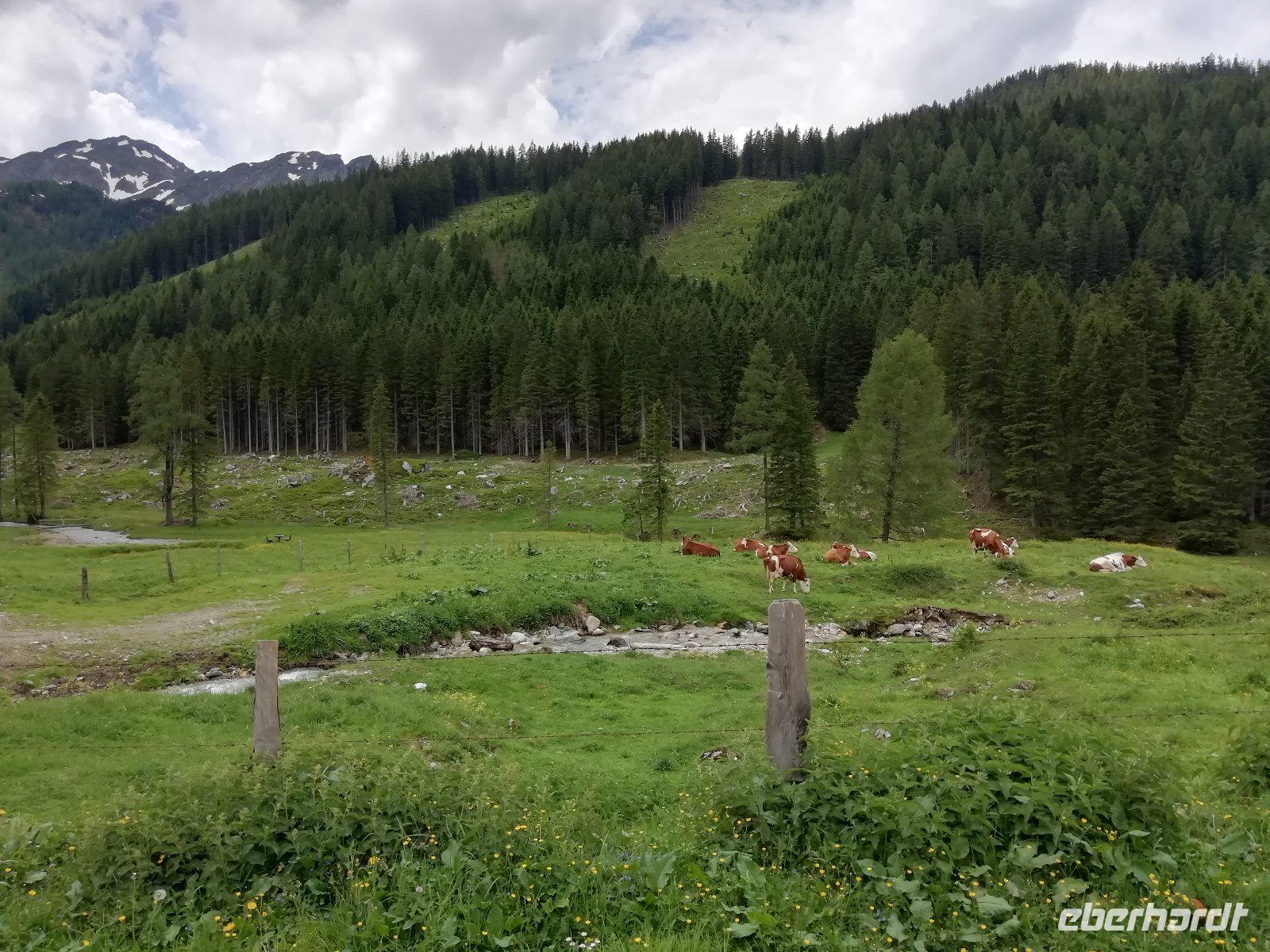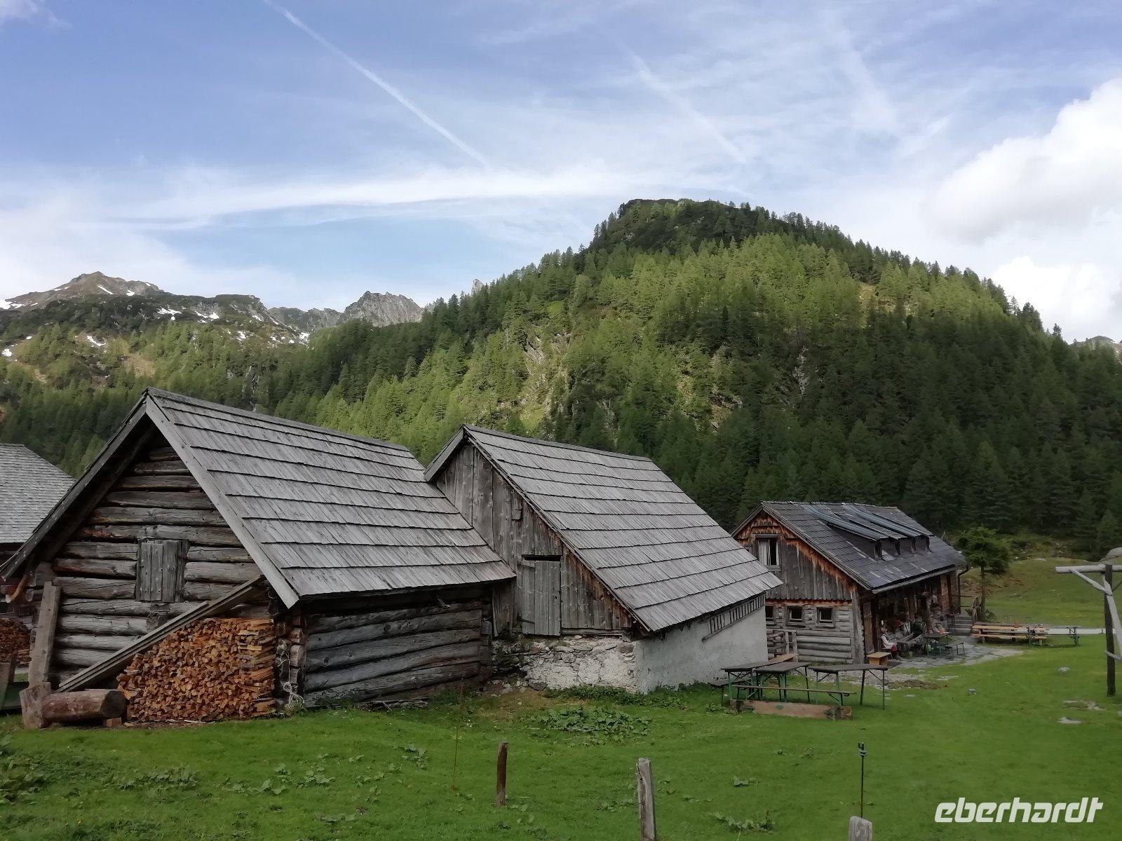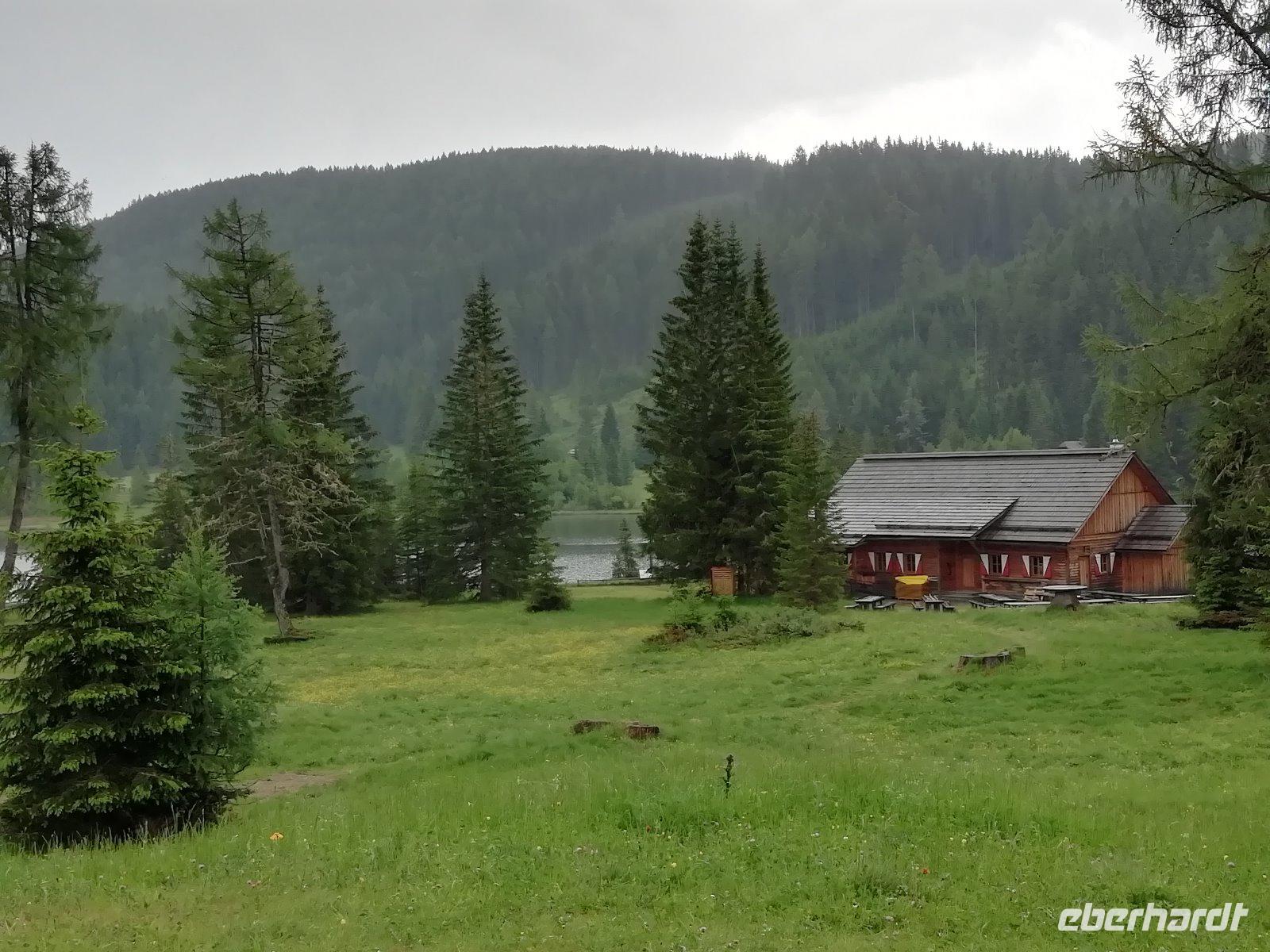Unser nächster Höhepunkt ist die Fahrt durch das Großsölktal und über den Sölkepass. Dieser verbindet in den Niederen Tauern das Ennstal mit dem Murtal. Im August 2017 hatten starke Unwetter hier extreme Schäden verursacht. So waren auf über sieben Kilometern weite Teile der Fahrbahn und mehrere Brücken von den Fluten mitgerissen worden. Erst seit dieser Jahr ist der Pass wieder freigegeben. Wir genießen die Fahrt mit immer wieder schönen Ausblicken. Auf der Passhöhe in 1790 m machen wir einen Fotostopp. Dann geht es hinunter ins Murtal nach Tamsweg. Gerade als ich erzähle, dass man hier früher „Wetterschießen" veranstaltet hat, um die bösen Wetterhexen auf den Wolken zu vertreiben, fängt es an zu regnen. Ob die Hexen mich gehört haben? Wir fahren trotzdem weiter zum Prebersee. Da die Wetterhexen immer noch grollen, kehren wir in die Ludlalm ein. Dann haben die Hexen doch Erbarmen mit uns und wir können kurz zum See laufen.