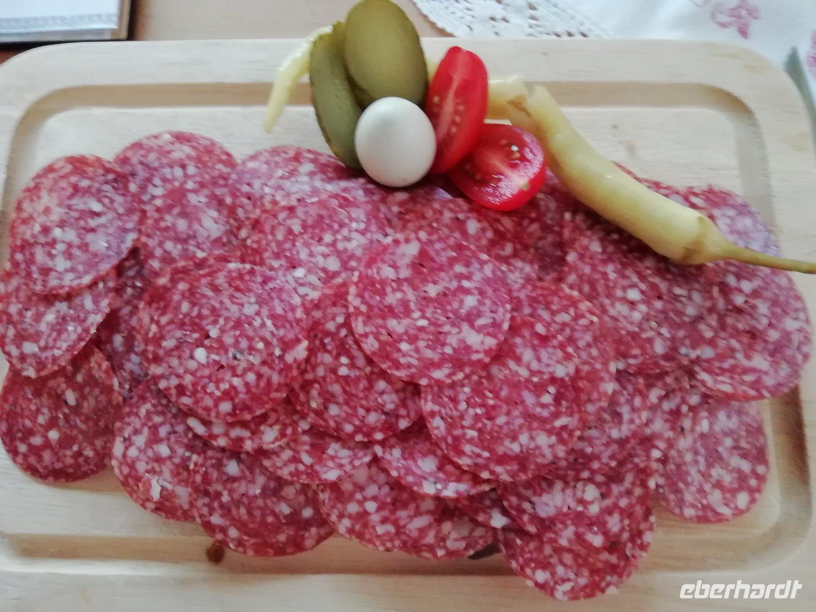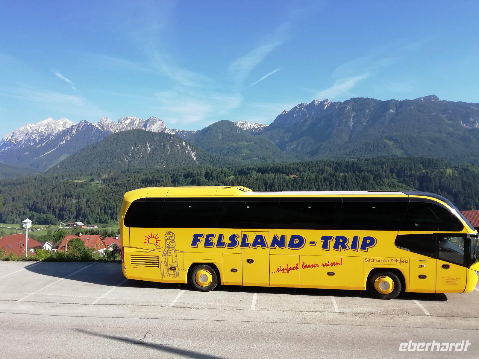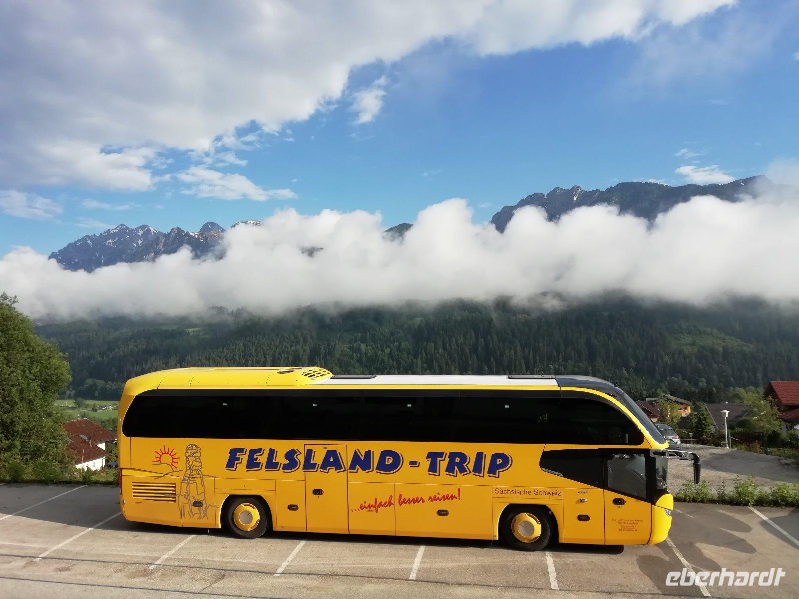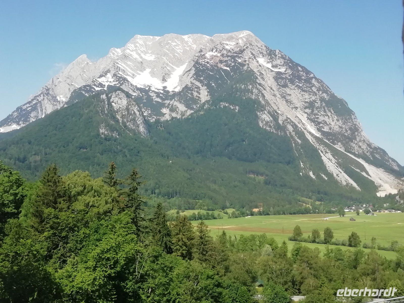 Das „grüne Herz Österreichs" - so wird die Steiermark oft bezeichnet - ist heute das Ziel von 33 Eberhardt-Reisegästen. In Dresden startet die Fahrt mit Chauffeur Gerald, in Münchberg ist die Gruppe komplett. Heute zum Sonntag ist nicht viel Verkehr auf der Autobahn und so kommen wir gut voran. Im Gegensatz zu den vergangenen Tagen mit fast tropischen Temperaturen ist es heute auch sehr angenehm. Dann allerdings gibt es recht kräftige Niederschläge und kurz vor München geht es dann auch nur sehr stockend weiter. Am frühen Nachmittag passieren wir die Grenze zu Österreich, fahren durchs Salzburger Land und erreichen den Ort Haus in der Steiermark noch vor 17 Uhr. Hier begrüßt uns Wirt Peter Gürtl herzlich. Schnell sind die Zimmer im Panoramahotel bezogen und die Koffer werden uns von fleißigen Helfern gebracht. Zum Abendessen treffen wir uns alle im Wintergarten wieder. Wir können uns am Salatbuffet bedienen, dann sind wir neugierig auf die Topinambur-Suppe. Lecker! Beim Hauptgang haben wir die Wahl zwischen Rinderhüftsteak, Lachsforellenfilet und Vollkornnudeln - alles schmeckt vorzüglich. Nach einem süßen Dessert schließt Steirischer Käse den Magen. Einige unternehmen dann einen kleinen Spaziergang, die meisten schauen aber nur noch einmal auf das gegenüberliegende Dachsteinmassiv und freuen sich aufs Bett.