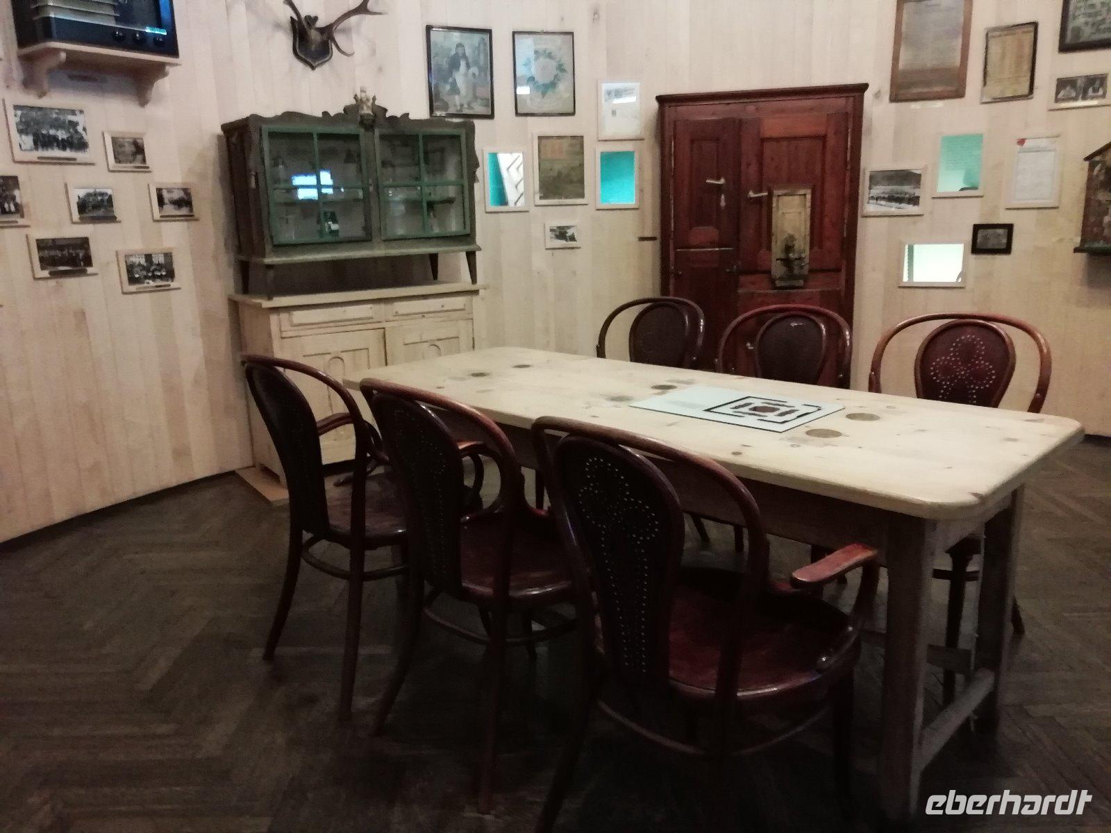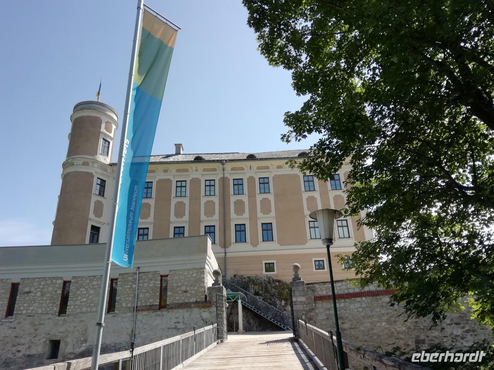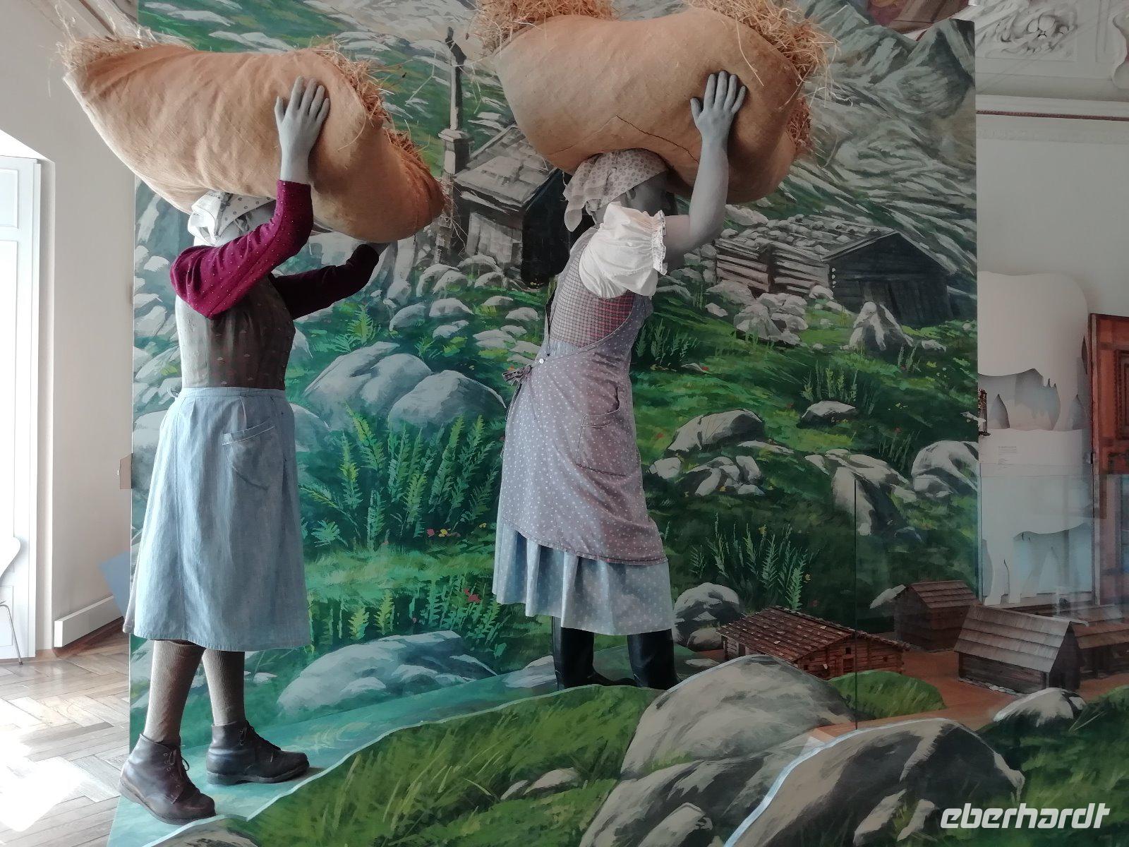 Heute wollen wir eintauchen in die Vergangenheit des Ennstales. Dazu fahren wir zum Schloss Trautenfels. Es liegt auf einem Felsvorsprung am Fuße des Grimmings. Herzlich werden wir von einer Mitarbeiterin des Museums begrüßt. Sie geht mit uns in den Gewölberaum, wo in den letzten Jahren Fresken aus dem 16. Jahrhundert freigelegt wurden, und gibt uns einen Überblick über das, was uns im umfangreichen und sehr liebevoll gestalteten Heimatmuseum erwartet. Bei unserem Rundgang erfahren wir u.a. Interessantes zum Thema Holz und Wald, lernen die Tiere der Region kennen, können sehen, wie man früher hier lebte und welche Bräuche heute noch gepflegt werden. Wir schauen uns auch die reich verzierten Prunkräume und den prächtigen Marmorsaal an. Spaß haben wir dann bei einer Runde Tischkegeln. In der dritten Etage treffen wir auf die „Gipfelstürmer". Bei dieser Sonderausstellung geht es um die Expedition der ersten Österreicher auf den Mount Everest vor 41 Jahren. Wer genug Puste hat, erklimmt noch den Aussichtsturm und genießt den schönen Blick über das Ennstal von dort oben.