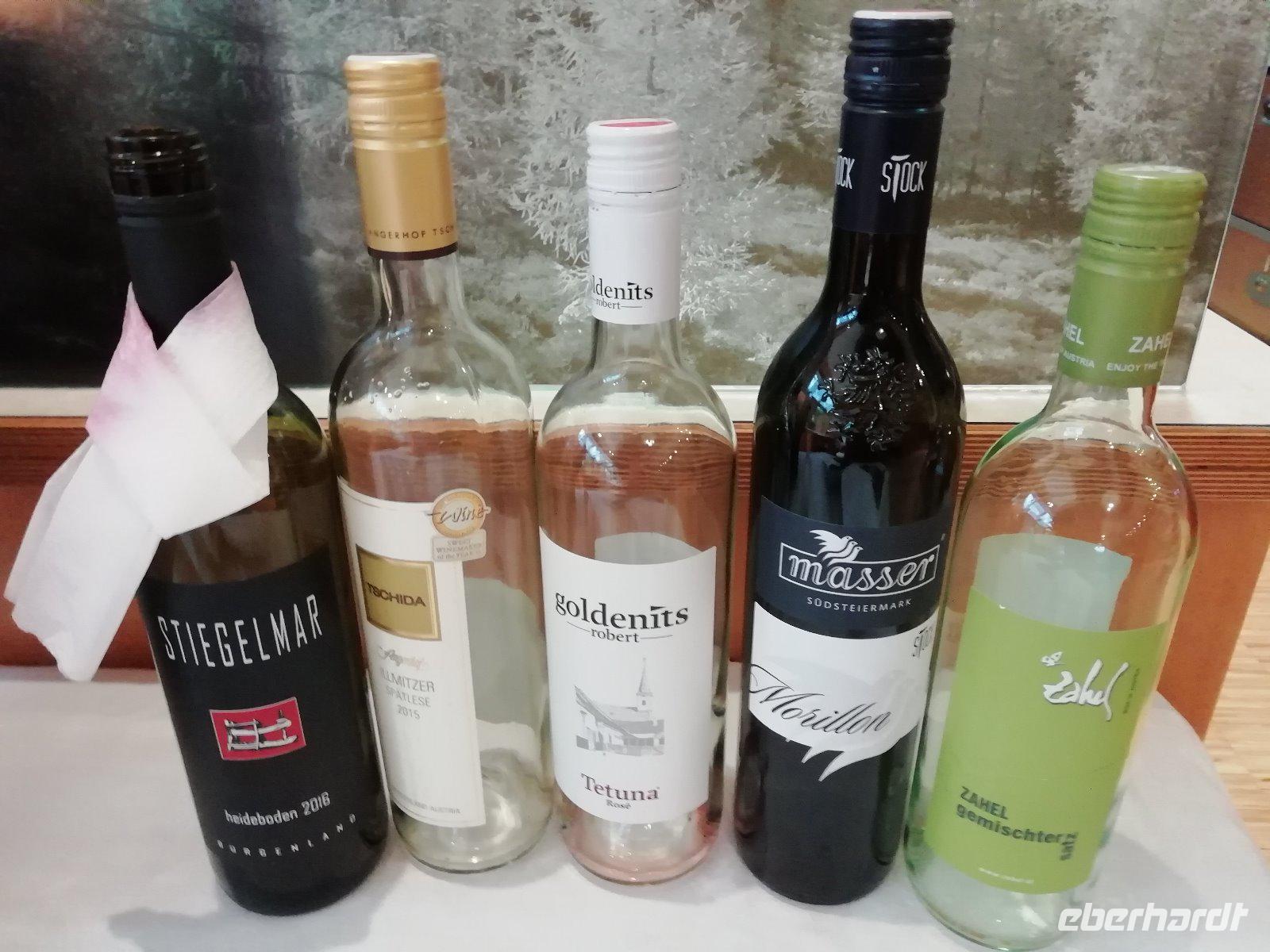 Im Hotel lädt uns Sommelier Bernadette zur Weinverkostung ein. Gleich zu Beginn erfahren wir, wie man mit Wein richtig umgeht: Schauen, Schwenken, Riechen, Trinken. Bernadette kredenzt uns dann fünf Weine aus unterschiedlichen österreichischen Bundesländern. Ob man nun lieber Weißwein, Roséwein oder Rotwein mag - für jeden ist etwas dabei. Außerdem testen wir unseren Geruchssinn. Viele Gäste liegen dabei mit ihren Vermutungen richtig, andere - so wie ich - leider völlig daneben. Nun haben wir Hunger und freuen uns auf das Abendessen, das u.a. Reisfleisch, Barbarie Ente oder Ofenkartoffeln bereithält.