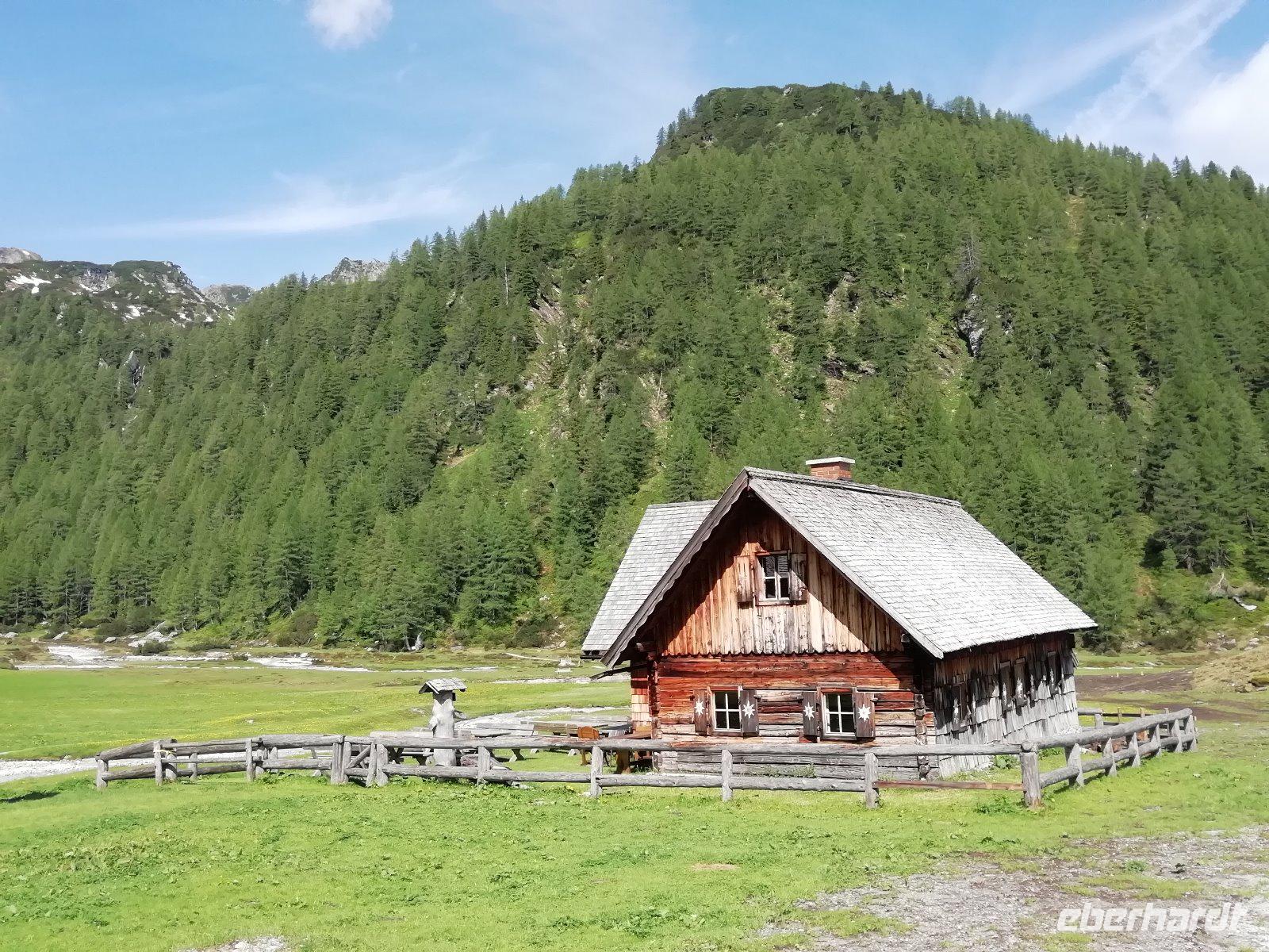Eine besonders schöne Alm erwartet uns heute zum Sommeranfang: die Ursprungalm. Sie befindet sich am Fuß der Steirischen Kalkspitze in den Schladminger Tauern. Bekanntgeworden ist sie vor allem, da einst Szenen für einen Heidifilm dort gedreht worden. Bis gestern Nachmittag war nicht klar, ob wir zur Alm fahren können. Immer noch war man mit der Beseitigung der Schäden beschäftigt, die der Winter auf dem Fahrweg zur Alm hinterlassen hat. Am Abend dann die gute Nachricht: die Strecke ist ab heute frei. Unser Bus ist allerdings zu lang für die Auffahrt, aber wir werden mit einem kleineren Bus an der Mautstelle abgeholt. Es folgt eine spektakuläre Fahrt über teils sehr enge Kehren auf landschaftlich beeindruckender Strecke bis auf eine Höhe von 1604 m. Hier haben wir genügend Zeit, um auf dem Almdorf-Rundwanderweg zu spazieren. Besonders beeindruckend sind die bunten Blumenwiesen. Vor der Almhütte treffen wir uns alle zu einer letzten Almjause wieder. Dann bringt der Bus uns zurück ins Tal.