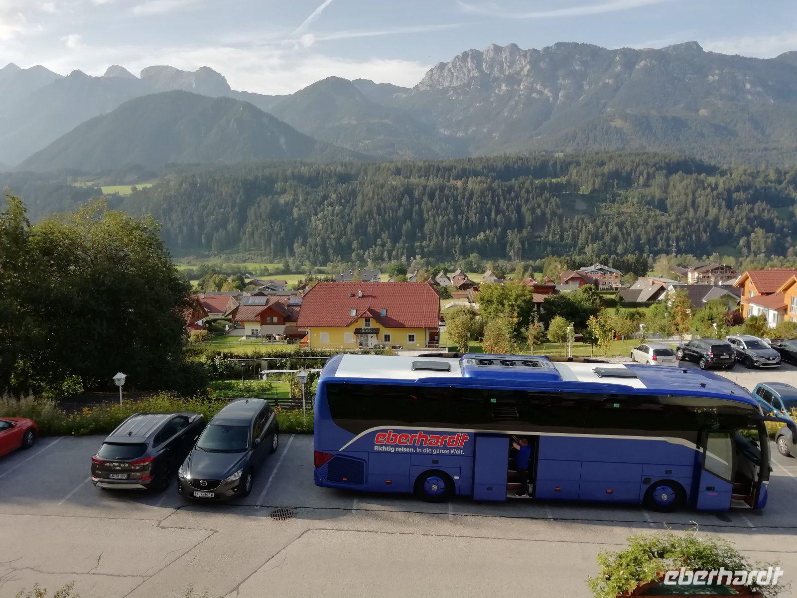 Schon lange haben wir uns darauf gefreut - heute ist es endlich so weit: Wir starten zu unserer Erlebnisreise in die Schladming-Dachstein-Region. Da Sonntag ist, kommen wir auf den Autobahnen gut voran. Von Dresden aus geht es durch das Vogtland nach Bayern. Über Regensburg und Passau erreichen wir die Grenze zu Österreich. Nun folgt eine tunnelreiche Strecke. Dann sind wir bald im Ennstal. Hier liegt auch unser Ziel: Haus bei Schladming. Bei der Ankunft am Panoramahotel Gürtl begrüßt uns Peter herzlich. Schnell sind die Zimmer bezogen und erste Fotos vom Dachsteinmassiv werden gemacht. Dann treffen wir uns zum Abendessen wieder. Heute können wir uns an einem umfangreichen Steirischen Bauernbuffet bedienen. Die Auswahl ist groß, reicht von der Leberknödelsuppe bis zum Grillhenderl, vom Schulterbratl bis zur Fischplatte und von der Kalbsstelze bis Spare Ribs. Ein Schokomousse mit marinierten Feigen bildet den süßen Abschluss des Tages.