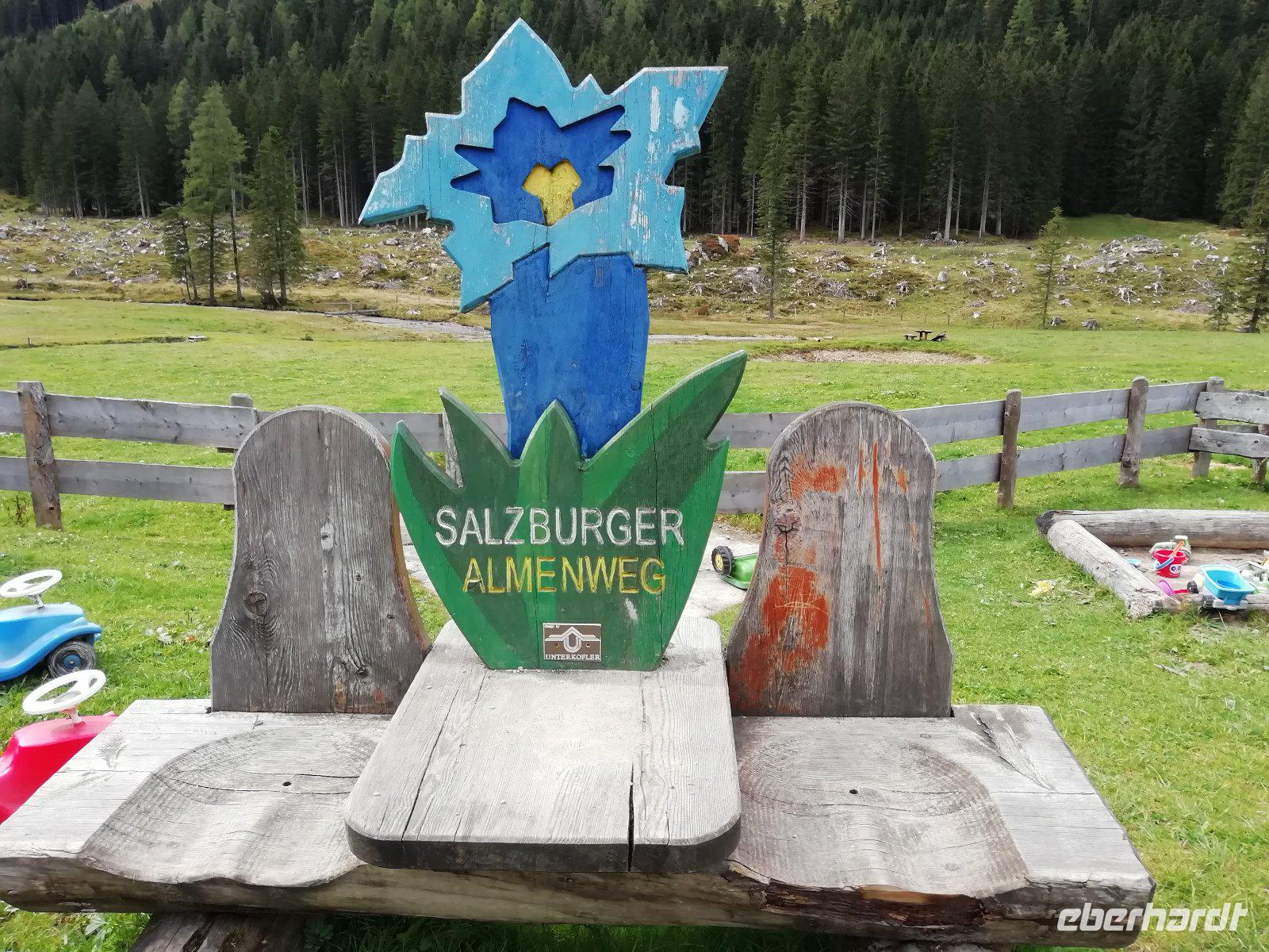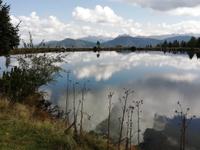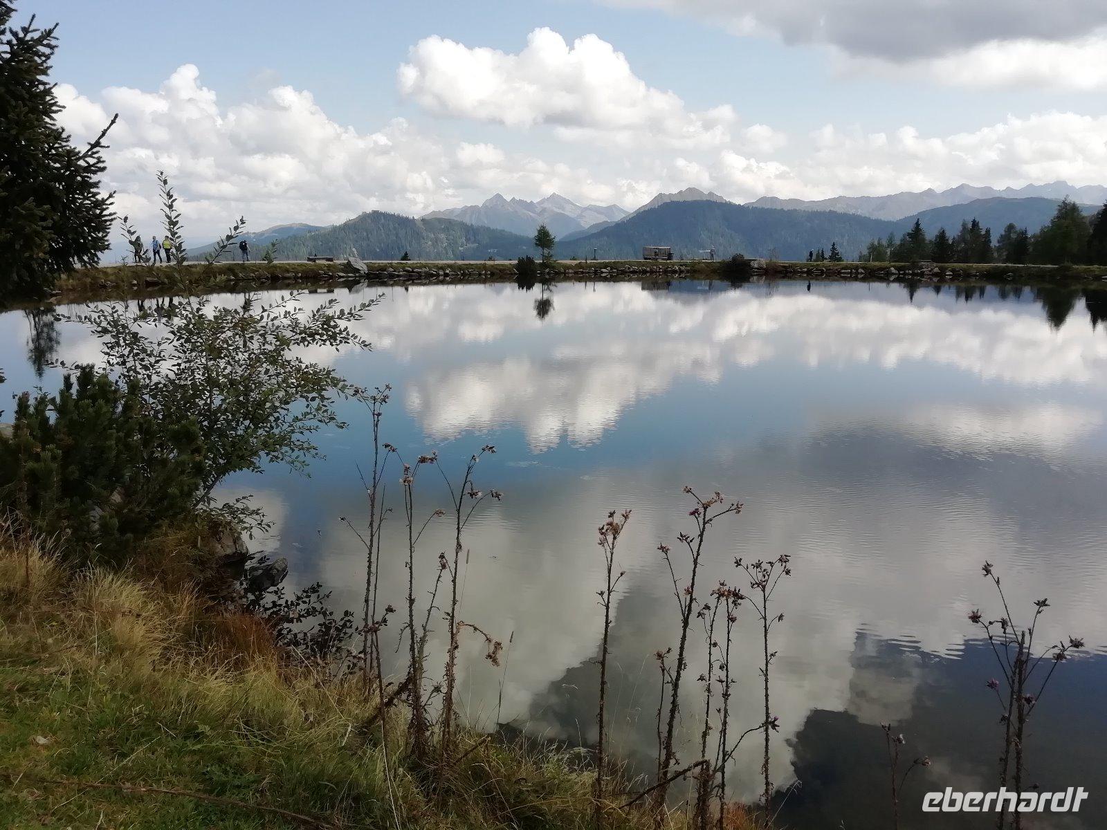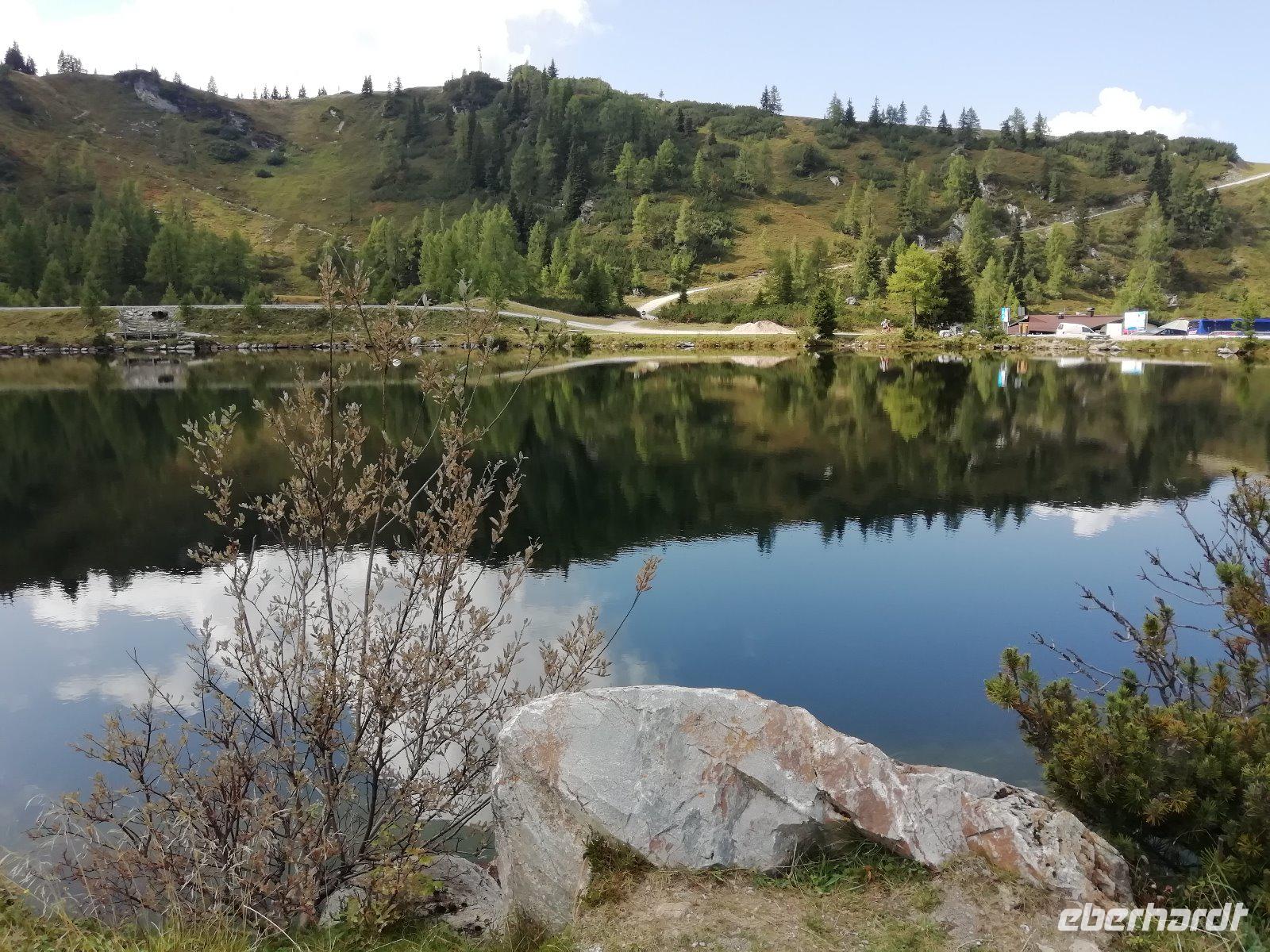 Nun folgt eine Busfahrt über eine enge, serpentinenreiche Straße. Kompliment an unseren Jan. Immer wieder haben wir schöne Panoramablicke zum Dachsteinmassiv, in die umliegende Bergwelt und ins Ennstal. Nach 30 Minuten erreichen wir die Reiteralm. Da es inzwischen Mittag ist, kehren die meisten Gäste in die Grasselhöh-Hütte ein. Danach bleibt noch genügend Zeit für einen Spaziergang um den Reiteralmsee. Dabei bieten sich fantastische Fotomotive. Dann beginnt die Busrückfahrt ins Tal.